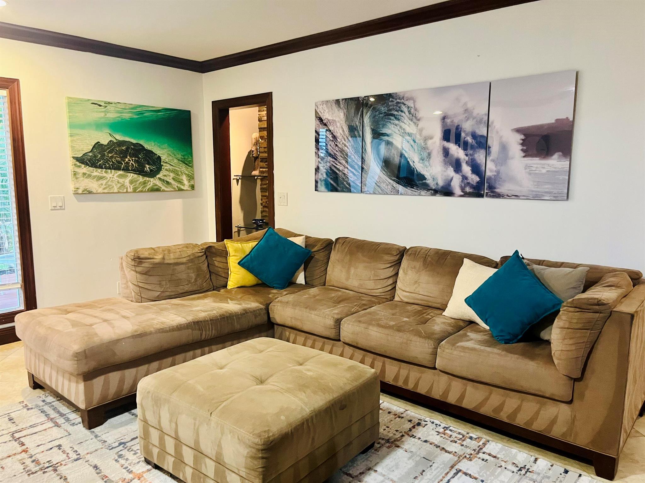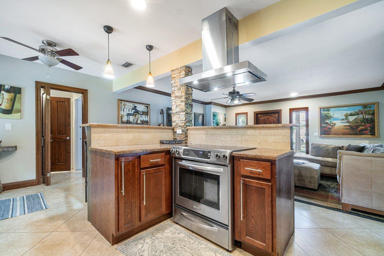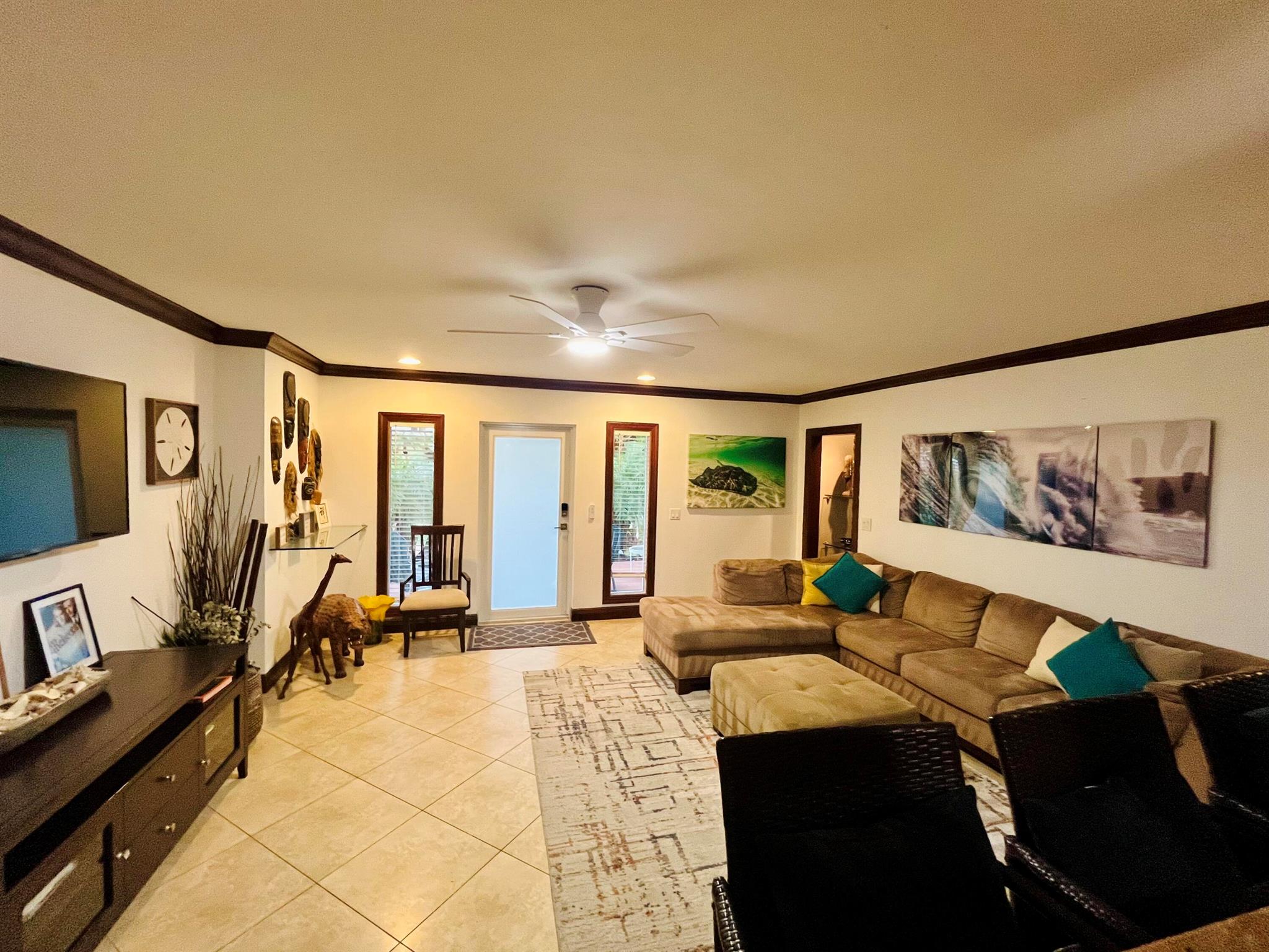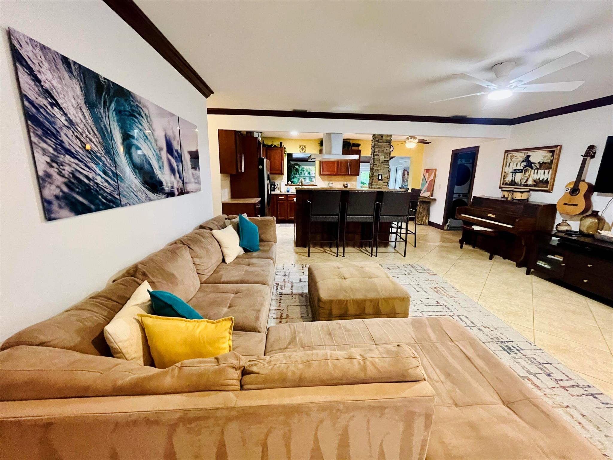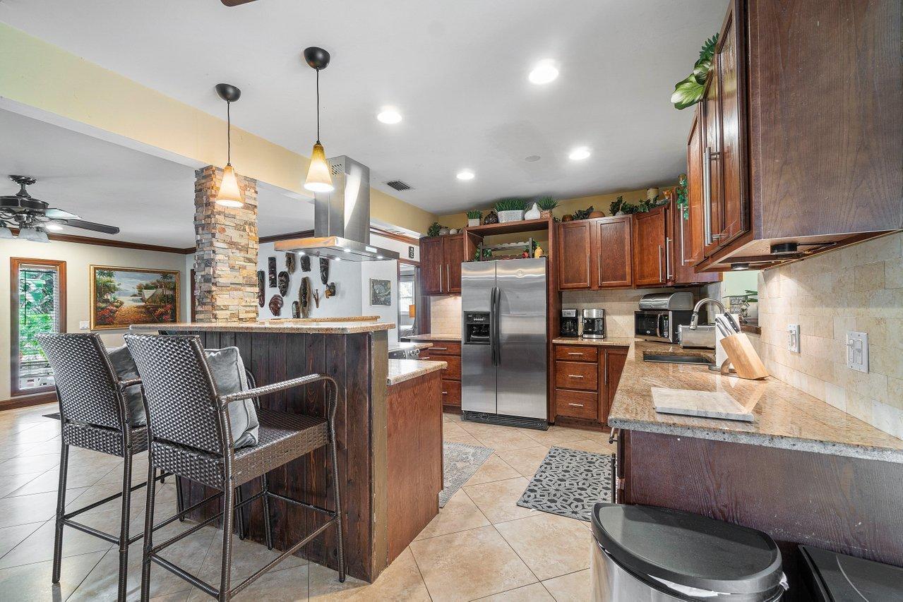 Available Seasonal, Summer, or Annual! New Bathroom install!Just one street from the Intracoastal, this turnkey home offers the perfect mix of tropical style and everyday comfort. An open floor plan creates a welcoming space for entertaining, with a wide, well-appointed kitchen at the center. The master suite exudes a chic island vibe with bamboo wood floors, while the guest room pops with Caribbean blue walls and dark bamboo floors. A third bedroom, bright and airy, doubles as a cozy den with twin beds. The master bath channels the tranquility of a Costa Rican rainforest, while the guest bath reflects timeless Old Florida charm. Step outside to your private backyard oasis--lush tropical landscaping, a spacious deck with resin bar top and grill, and a hot tub for unwinding after a long day