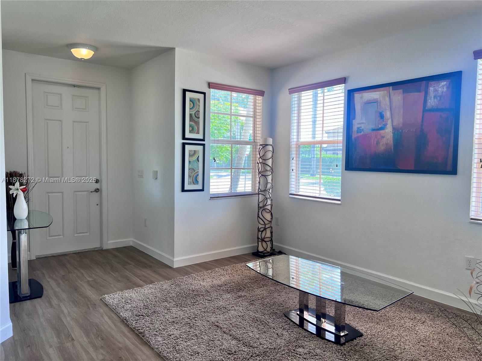 This townhouse is a beautifully furnished 3-bedroom, 2.5-bathroom home in Santorini at Islands at Doral. It boasts a prime location, just a short walk or bike ride to two brand-new public parks and top-rated A+ schools. The home is spacious yet easy to maintain, featuring a well-kept kitchen, formal dining area, and a paved backyard. All bedrooms are generously sized, with the master suite offering an expansive bedroom and bathroom. Additional features include a one-car covered garage plus two outdoor parking spaces. Residents also enjoy access to a stunning clubhouse with a variety of amenities.