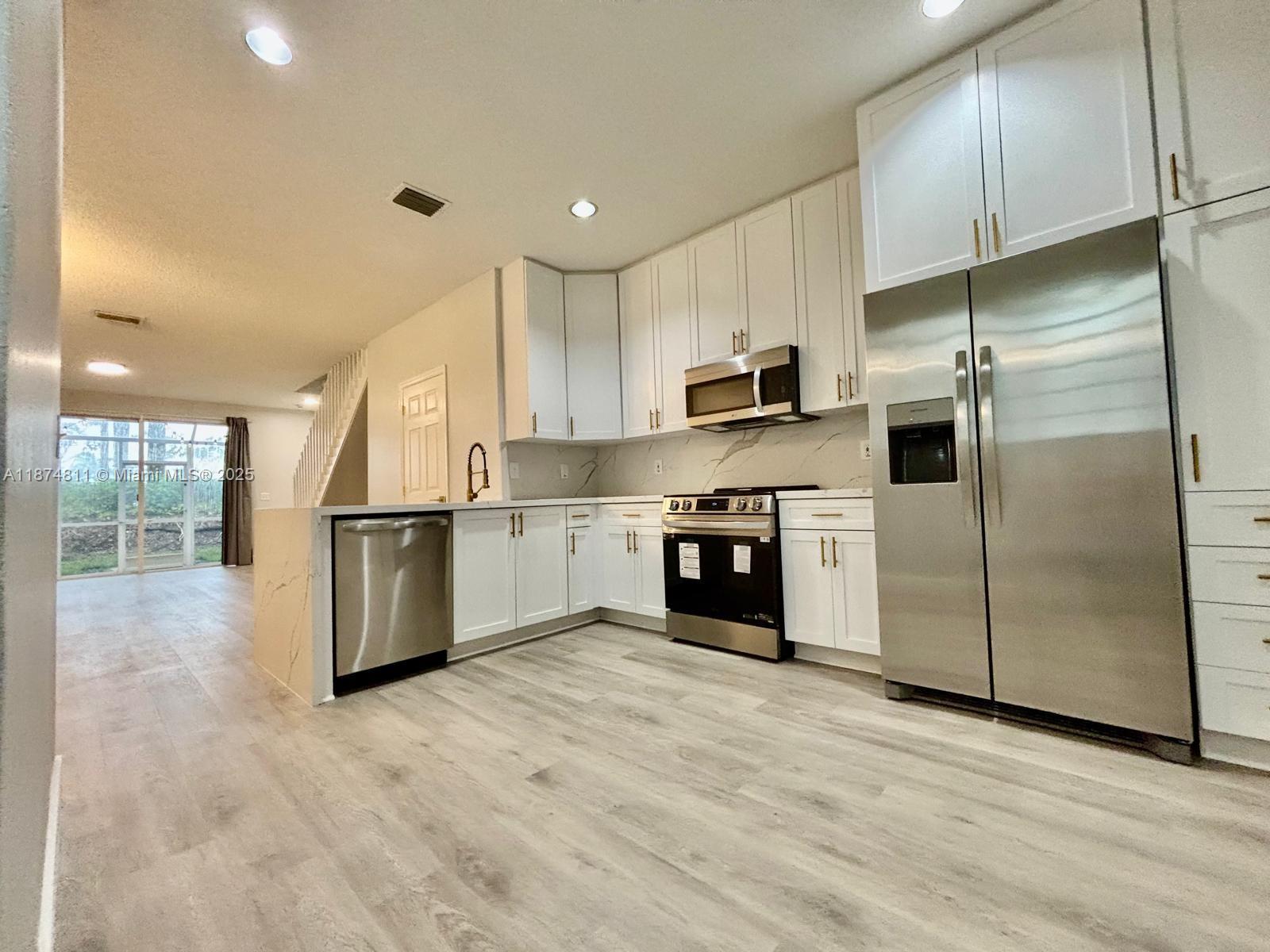 In the exclusive San Simeon condominium, this elegant townhouse combines comfort and modernity in a family-friendly community. It features two spacious bedrooms and 2.5 bathrooms, fully renovated with luxury finishes, a kitchen with Calacatta quartz countertops and new appliances, and a private patio with indirect lake views. It includes two parking spaces (one covered) and visitors' parking. A communal pool, children's playground, and security are available in a city renowned for its excellent schools and quality of life. Easy access to major highways. Move-in ready.
