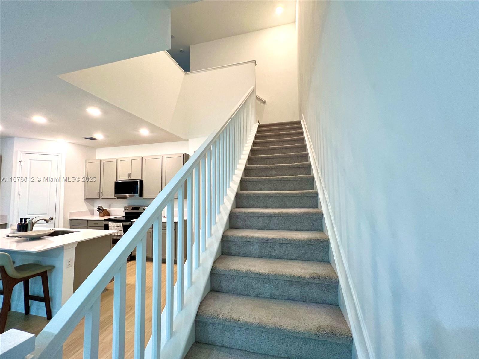 NO HOA approval process!! Quick move-in :) This LARGE LUXURY townhome comes with a wide foyer and open layout. The soaring 24 ft ceiling above the staircase, wood-look plank tile floors, wood cabinetry ,QUARTZ counter tops and STAINLESS STEEL appliances create a beautiful upgraded space. All 3 bedrooms are upstairs with a large laundry room. Lots of storage throughout. Impact windows & Doors & backyard space for your convenience. LAWN CARE included! This a secure community with GATED ENTRY. Other amenities include pool, gym, bbq area etc. Check out the schools! :) 2 min away from the Turnpike. Easy access to shopping & dining!