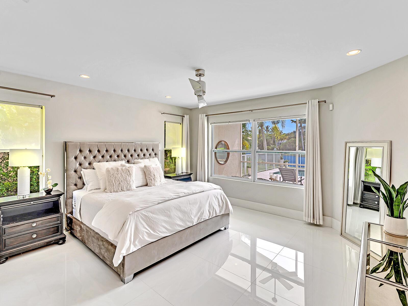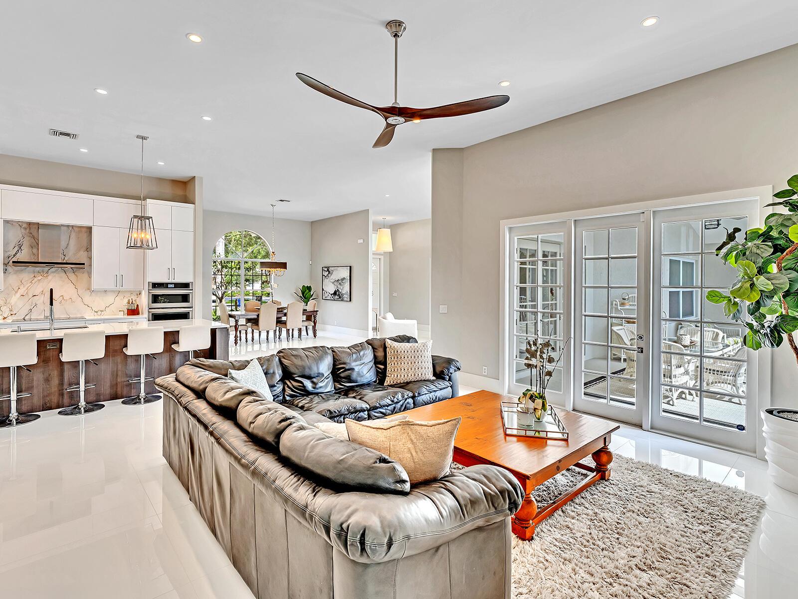 This stunning contemporary 4-bedroom home is located in the highly desirable Andover community. Set among palm trees and live oaks, the 2,754 sq ft residence offers serene lake views, a spacious screened lanai, and an open sports pool. The open-concept design, with soaring ceilings and oversized white glass tile floors, is ideal for entertaining. The custom gourmet kitchen features a 14-foot white quartz island and top-of-the-line stainless steel Jenn-Air appliances, including an induction cooktop and a wine fridge. The master suite boasts a luxurious spa-like ensuite, complete with a large soaking tub and a walk-in shower for ultimate relaxation. Andover is a charming, family-friendly gated community, located just minutes from downtown Delray Beach, residents enjoy convenient access