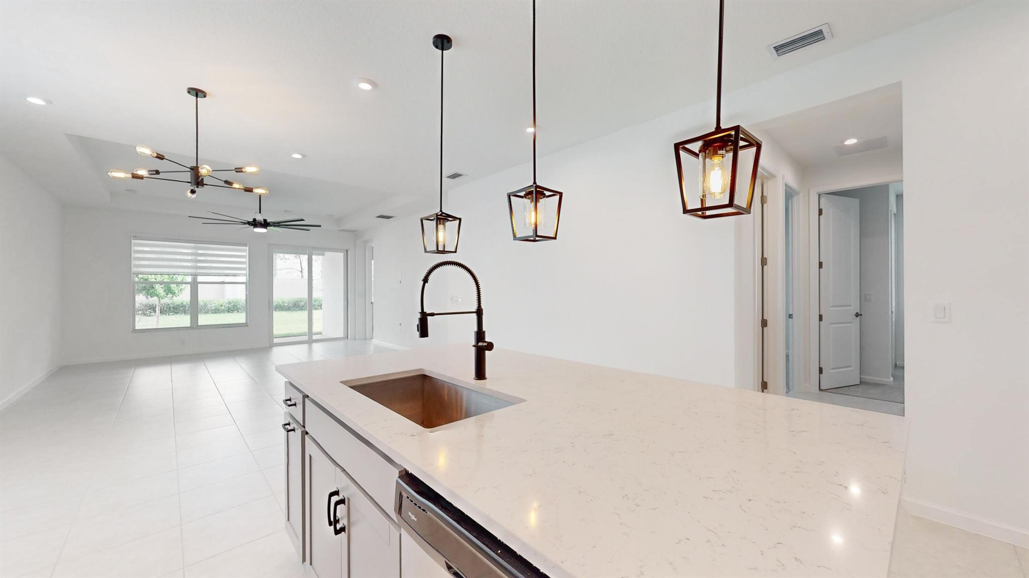 Move-In Ready in Tradition!This 2022-built home offers 4 bedrooms and 3 full bathrooms with a smart split-bedroom floor plan, including a private retreat with a nearby bath--perfect for guests, teens, or a home office.Enjoy modern finishes such as quartz countertops, stainless steel appliances, impact windows, high ceilings, and natural gas for cooking, laundry, and hot water. The home also includes a 2-car garage, welcoming front porch, and a covered lanai for relaxing or entertaining.Your rent includes high-speed internet, cable, lawn care, and pest control--plus full access to the resort-style pool, hot tub, and fitness center.Located in EMERY II at Tradition, just steps from the future Regional Park and minutes from shopping and dining.Schedule your showing today!