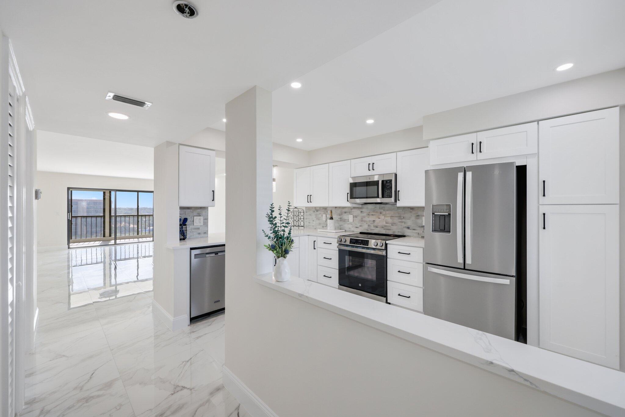 Welcome to your dream 2 bed, 2 bath LARGE FLOOR PLAN condo in a vibrant 55+ lifestyle community! This gem has undergone a full remodel, ensuring a modern living space where you will be the first resident. The open-concept kitchen is a showstopper, featuring stunning quartz countertops and custom cabinetry. Beautifully tiled floors add elegance throughout the home. Custom ceiling lighting brightens up the living area. Enjoy breathtaking 7th floor views of the lake and surrounding homes from your living space or balcony. Both bathrooms have been beautifully transformed with taste and functionality. Double vanity in the primary. The beautiful tile floors extend into the bedrooms as well as custom walk-in closets. No detail has been overlooked, from fresh paint to the smooth ceilings.