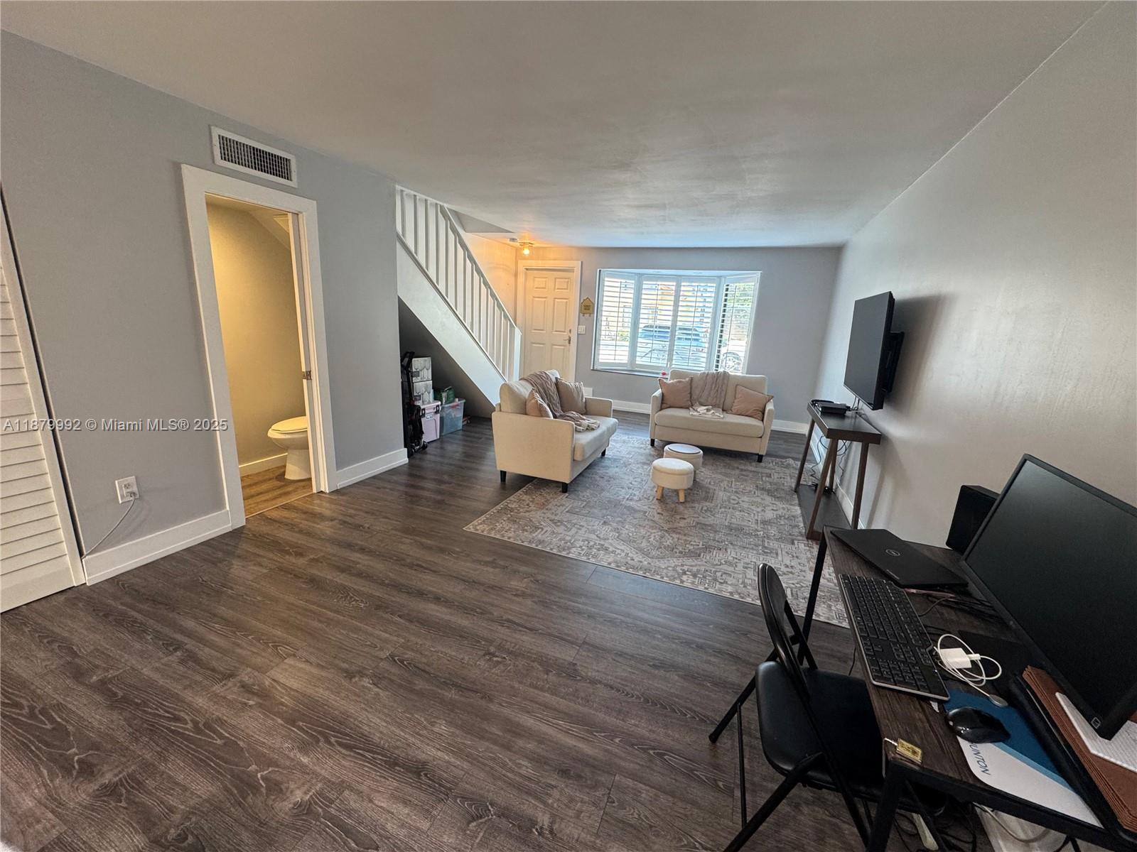 Welcome to this beautifully remodeled 2-bed, 2.5 bath corner-unit in the highly sought-after gated community of Dadeland Cove. This 2-story townhome features a spacious open-concept living and dining area, modern finishes, impact doors and windows, and a private fenced patio perfect for relaxing or entertaining. The updated kitchen boasts sleek cabinetry, stainless steel appliances, and plenty of storage. Both bedrooms are generously sized, with the primary suite offering a built-in closet and an en-suite bath. Additional features include in-unit laundry, upgraded flooring throughout, and assigned parking. Residents of Dadeland Cove enjoy 24-hour security, a community pool, and a prime location just minutes from Dadeland Mall, US-1, the Metrorail, top dining, and excellent schools.