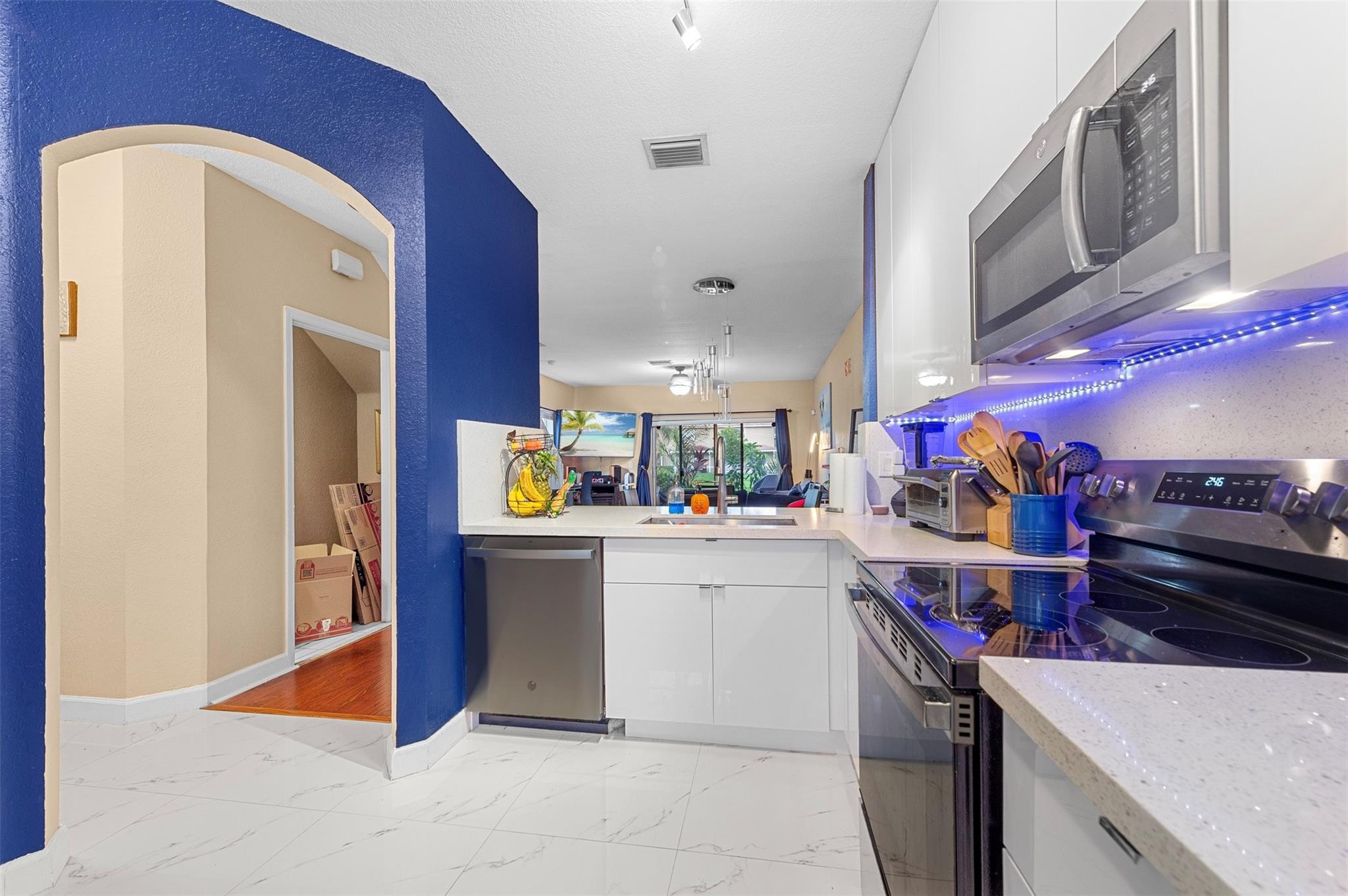 Welcome Home! 2b/2b & 1/2 bath updated townhome corner lot unit on the lake. With a beautifully updated & spacious kitchen that includes NEW appliances, upgraded light fixtures and wood floors throughout the unit and more. A bright combination of dining & living room with the kitchen featuring a breakfast area, pantry, & snack counter! Two large master suites upstairs each providing full bathrooms, spacious upgraded walk-in closets with lake view. Washer & Dryer In Unit! First floor features storage area under the stairs, as well as a utility closet on the patio. The neighborhood is close to the Sawgrass Expwy, Sawgrass Mills Mall, Publix, restaurants and downtown Tamarac. With 2 x assigned parking spots (#3-1) right in front unit. Pets under 30lb ok.