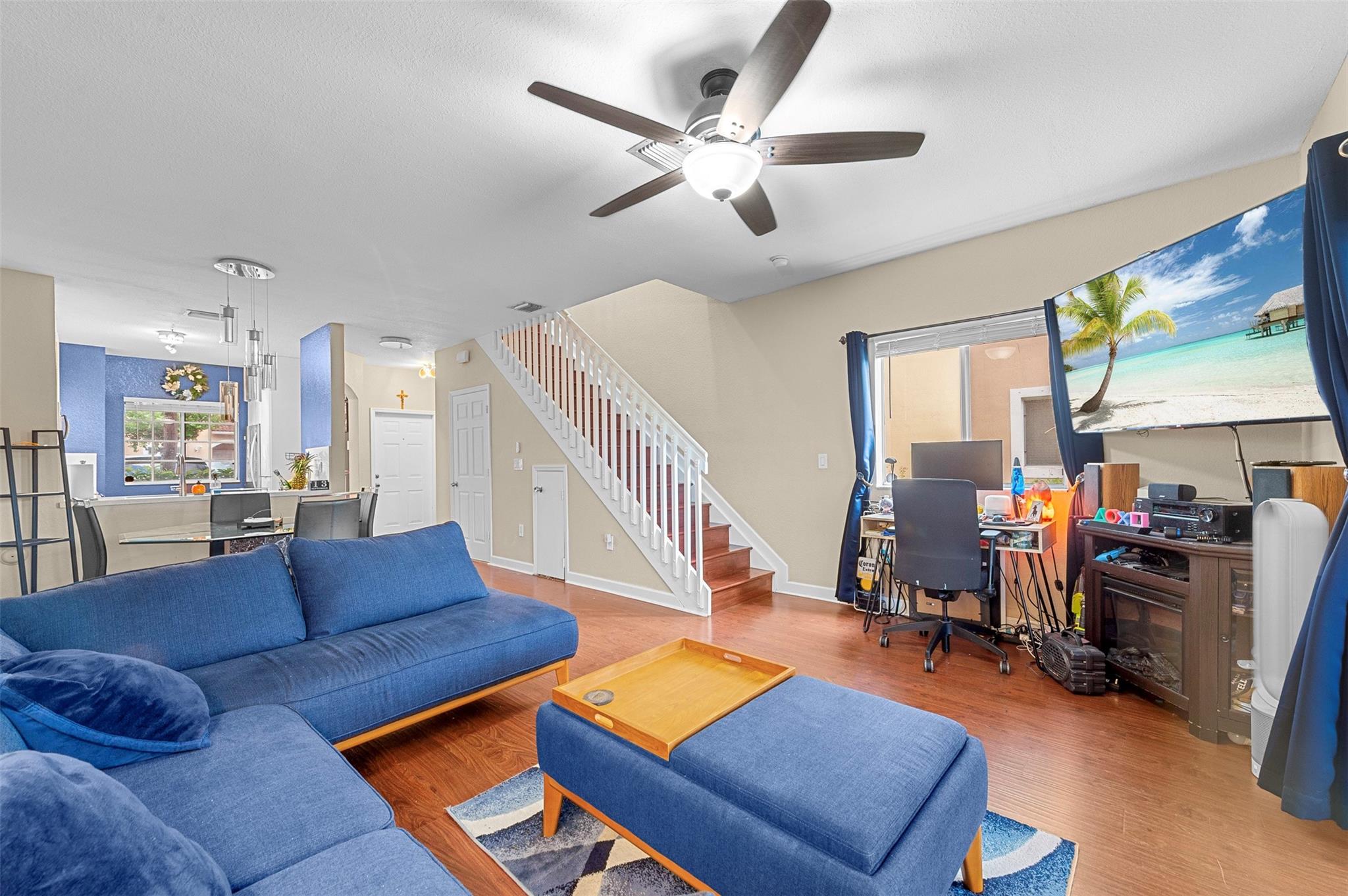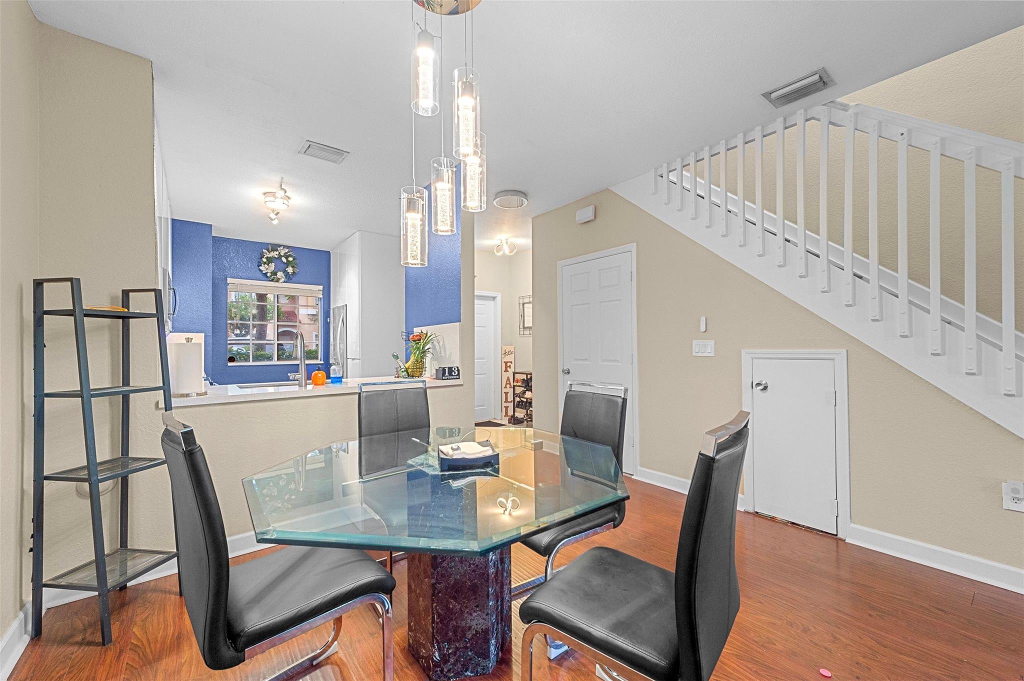 Welcome Home! 2b/2b & 1/2 bath updated townhome corner lot unit on the lake. With a beautifully updated & spacious kitchen that includes NEW appliances, upgraded light fixtures and wood floors throughout the unit and more. A bright combination of dining & living room with the kitchen featuring a breakfast area, pantry, & snack counter! Two large master suites upstairs each providing full bathrooms, spacious upgraded walk-in closets with lake view. Washer & Dryer In Unit! First floor features storage area under the stairs, as well as a utility closet on the patio. Family friendly neighborhood, close to the Sawgrass Expwy, Sawgrass Mills Mall, Publix, restaurants and downtown Tamarac. With 2x assigned parking spots (#3-1) right in front unit. Pets under 30lb ok.