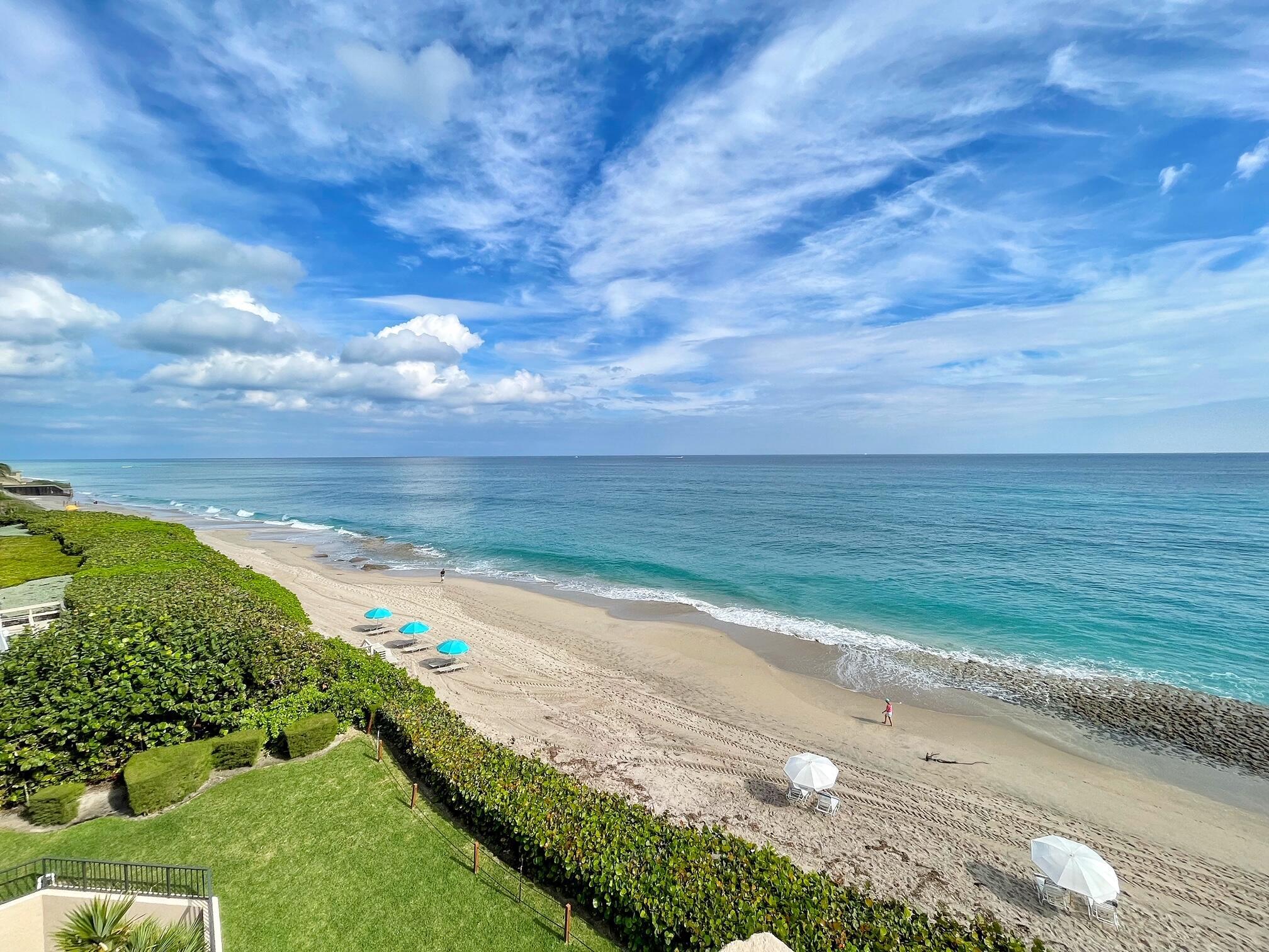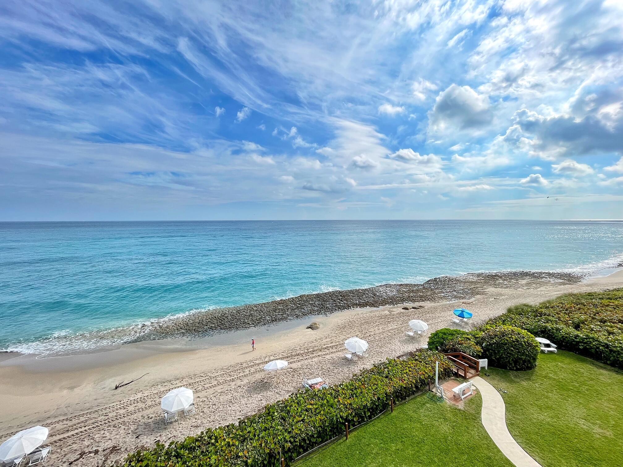 It's all about the views - enjoy the crystal blue ocean from every room in this front corner unit. The 2BR / 2BA split BR plan features a neutral color palette & polished ceramic tile throughout. Updated kitchen w/ granite counters, stylish backsplash & stainless appliances. Small nook off kitchen opens on to the balcony & overlooks the Atlantic - perfect location for morning coffee or cocktails. Large laundry room w/ washer dryer inside unit. Impact sliders throughout. Cote D'Azur has fob access to front gate & each tower. On-site manager M-F. Pool, grills & large outdoor social area between the two towers. Gym, community room, library & tennis and pickleball courts. 15 minutes to world class shopping, dining.