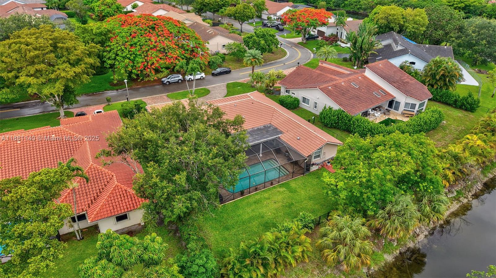 This stunning 4-bedroom, 2.5-bath pool home on a picturesque waterfront lot features a 2022 permitted fence, lush landscaping creating a private oasis, updated lighting throughout the main living areas, a saltwater bridge and Auto Dolphin Robot for the pool, a new sprinkler motor, 2024 washer, refrigerator, and dishwasher, a brand-new guest bathroom (May 2025), upgraded California closets including his-and-hers walk-ins in the master suite, modern master bath lighting with night mode, fresh roof and exterior pressure washing (May 2025), and full hurricane protection with accordion shutters and panels.