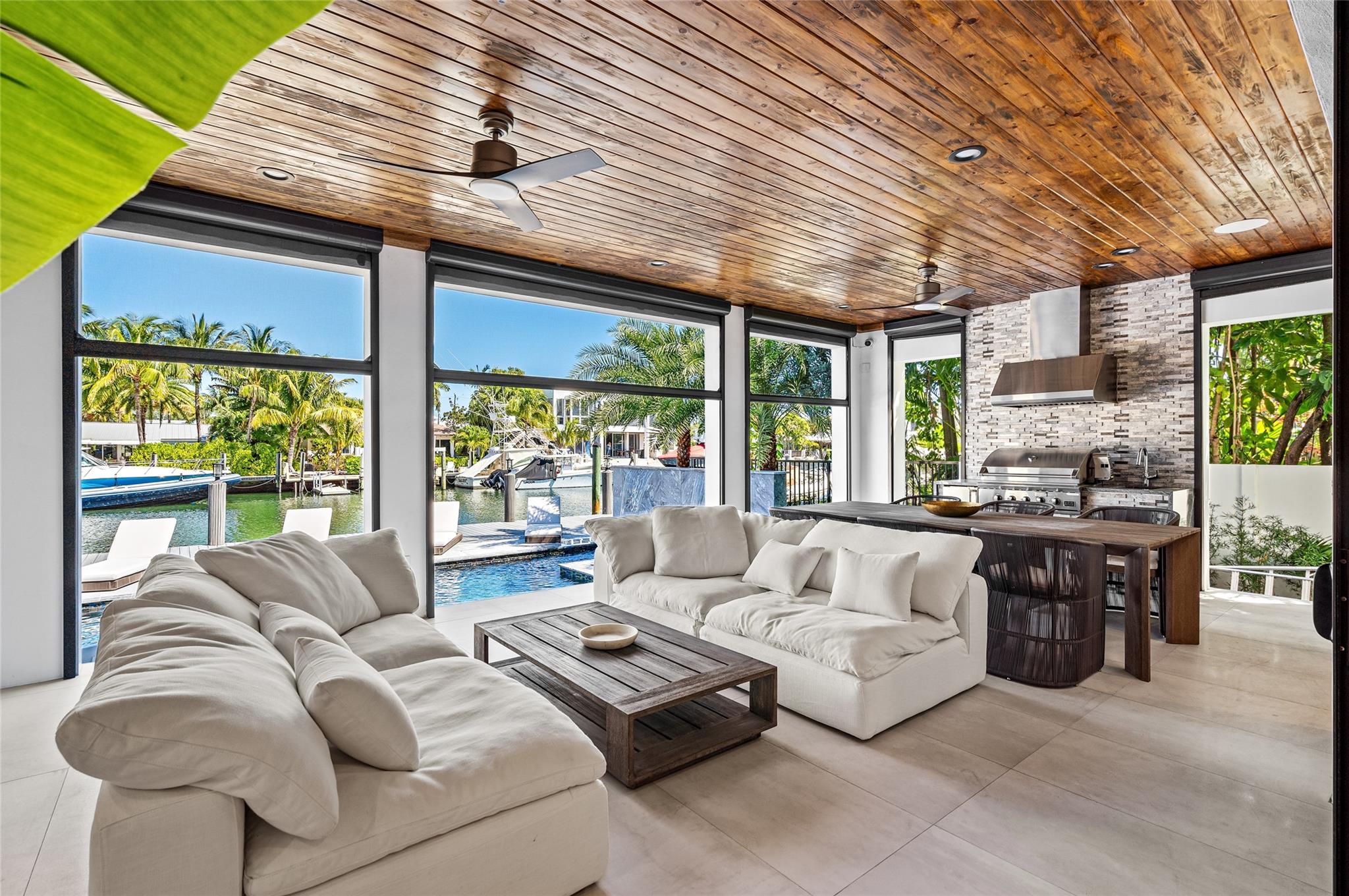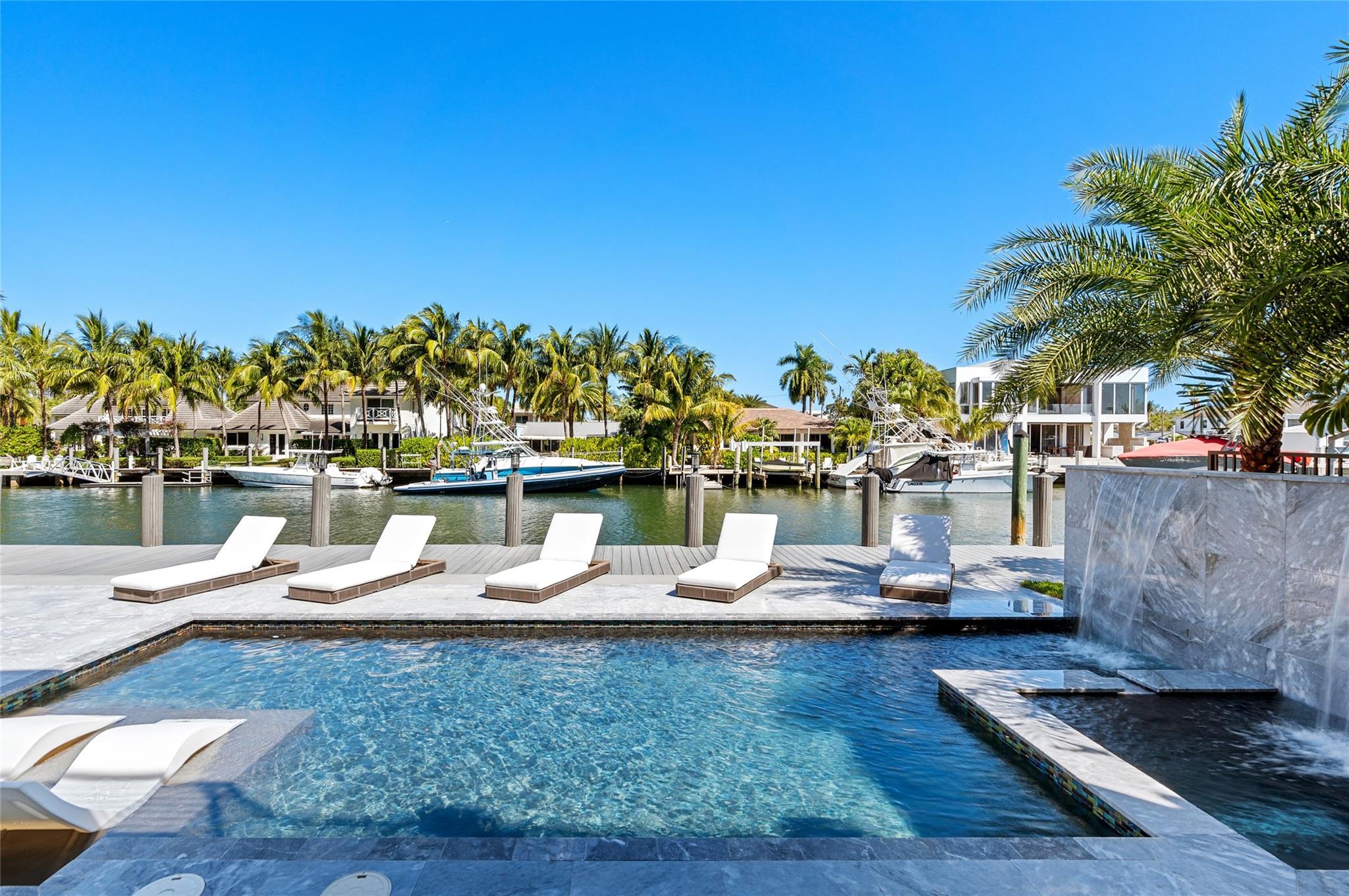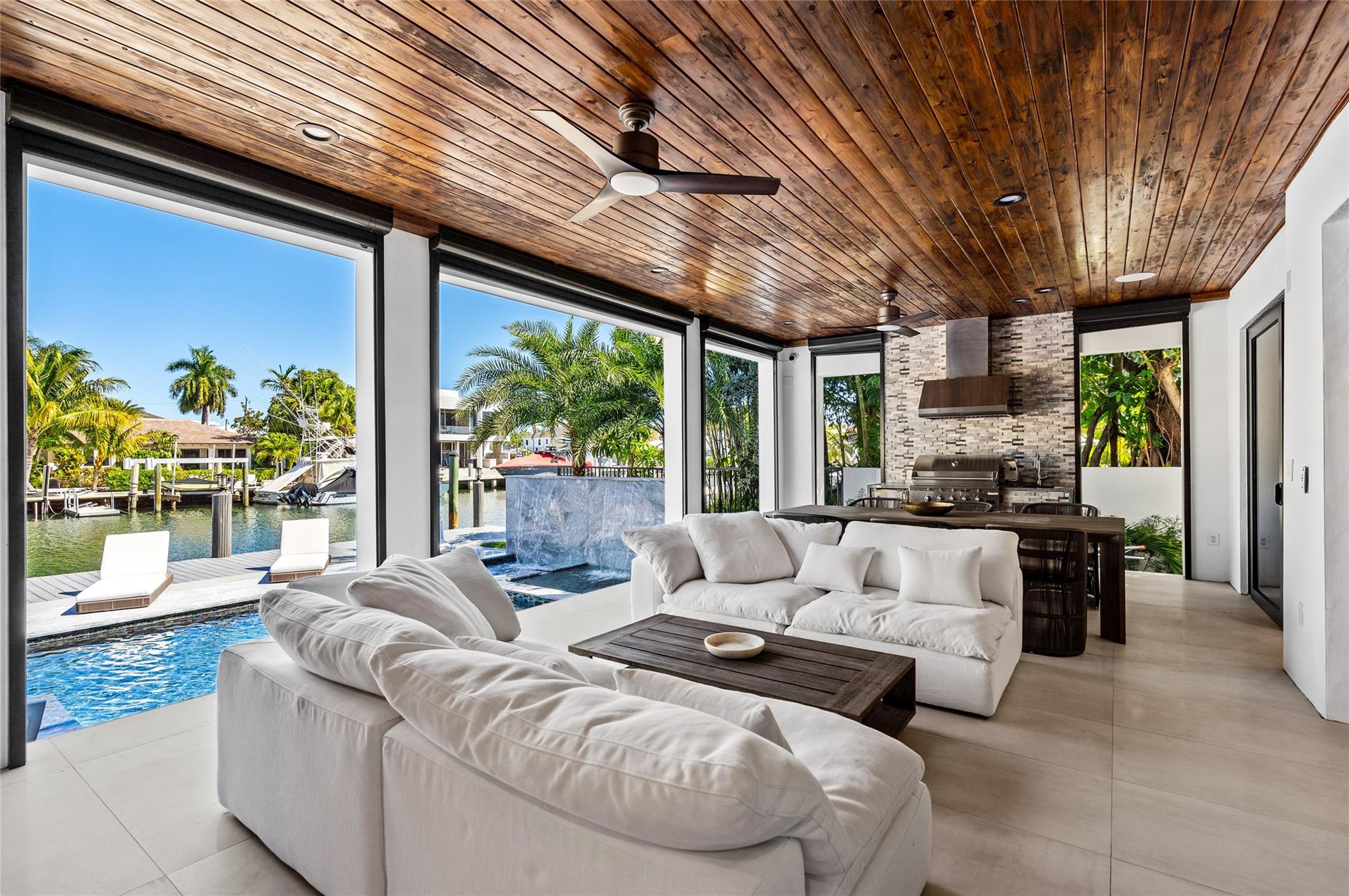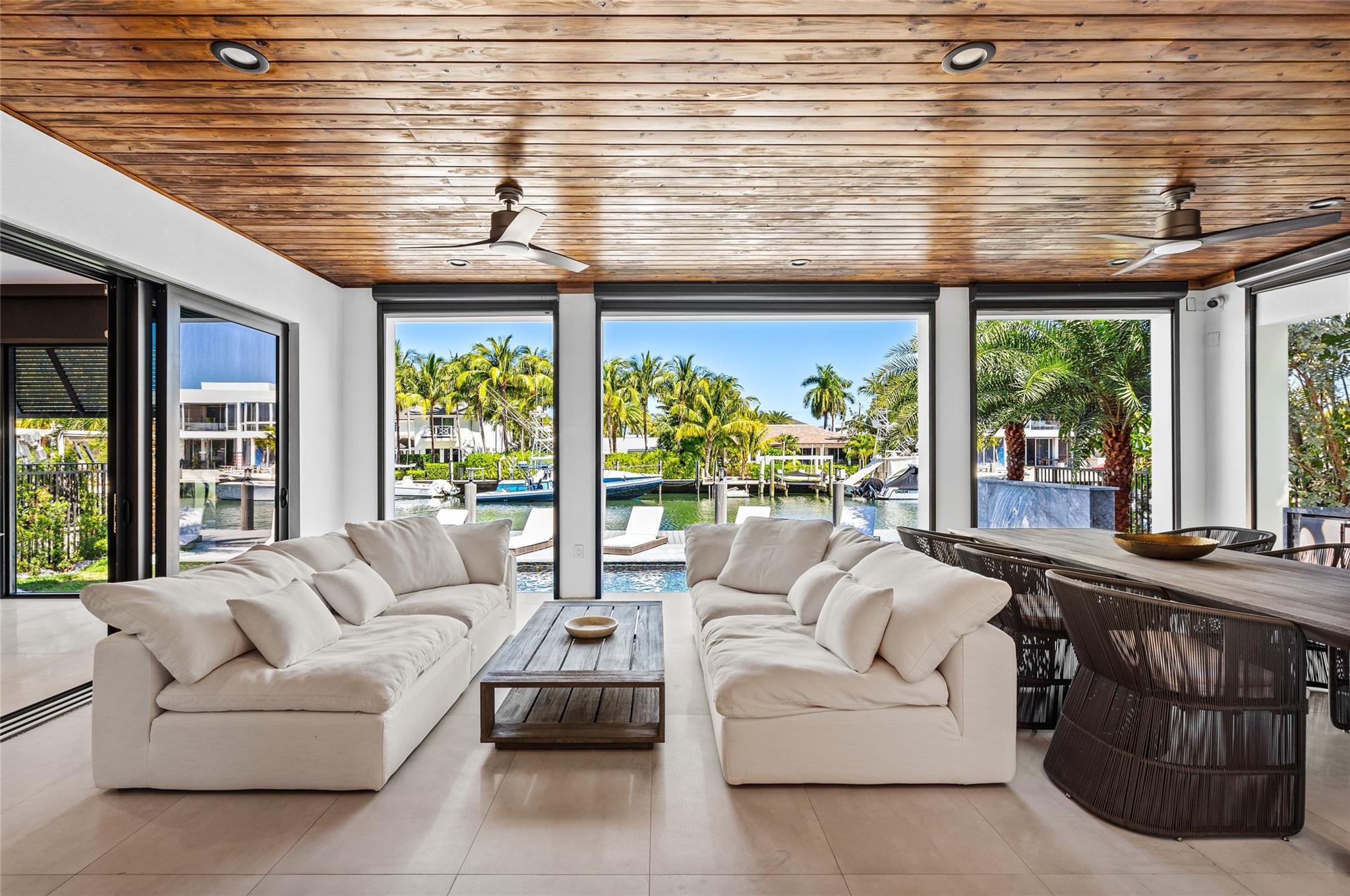 Available Seasonal or Annual. Turn-Key RH Styled & Furnished New Construction Estate sited on 65' of deepwater in Rio Vista. This 5 bed/5.5 bath gated residence has 5,122 total sqft of seamless indoor-outdoor living. Chefs kitchen, 6 burner Viking gas stove/griddle, Viking double refrigerator/freezer, 2 Viking dishwashers, Bosch built-in coffee/espresso maker, European cabinetry, & 24" Thermador wine column & ice maker. Smart-house tech: electronic shades, double-sided linear electric fireplace, & hot steam shower! Enhanced closet design & expansive covered summer kitchen/loggia with gas grill, refrigeration, & impressive electric phantom screens. A heated salt-water pool/spa with cascading waterfall features, set within marble decking, leads to the new composite dock & raised seawall
