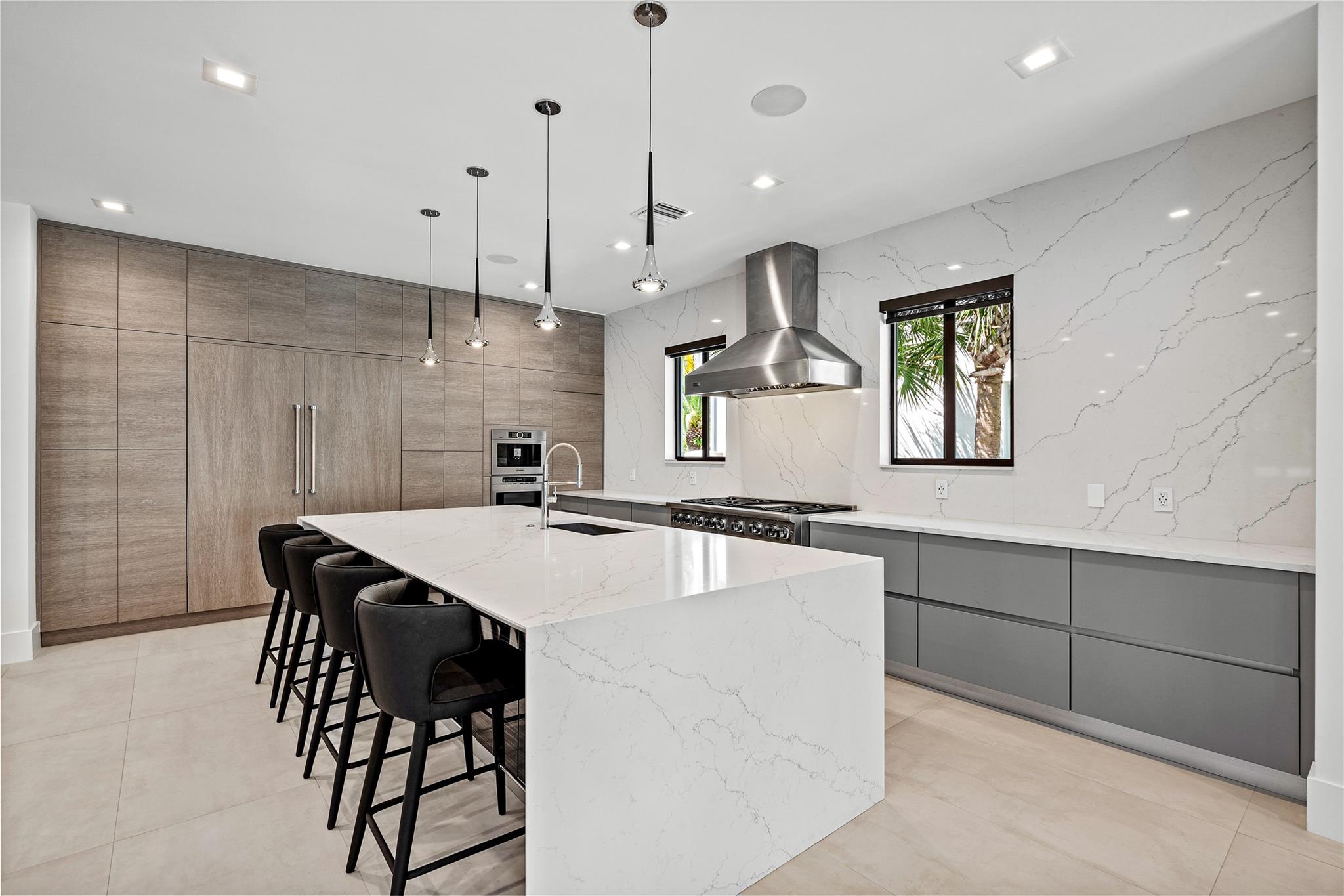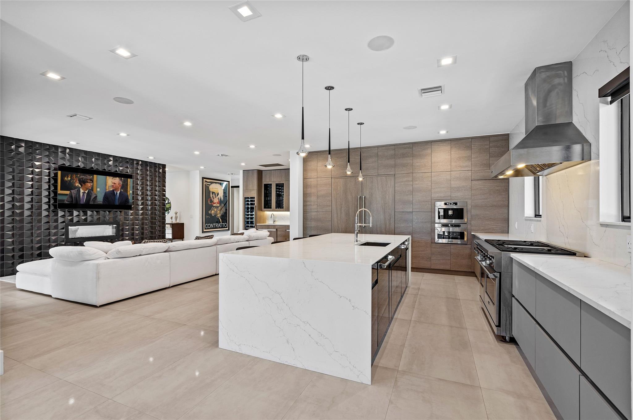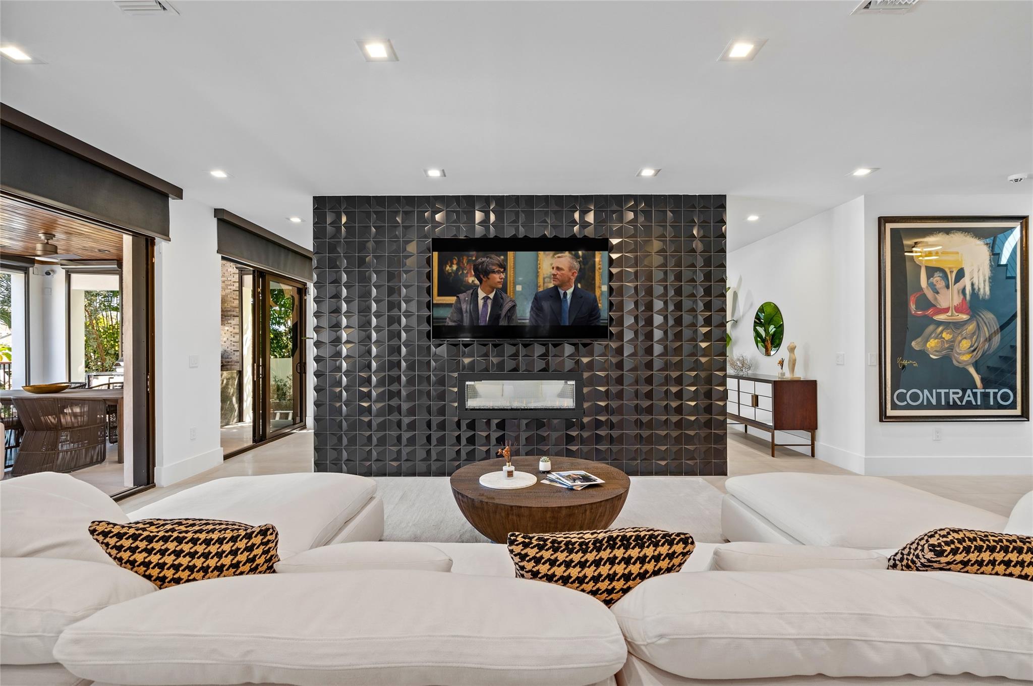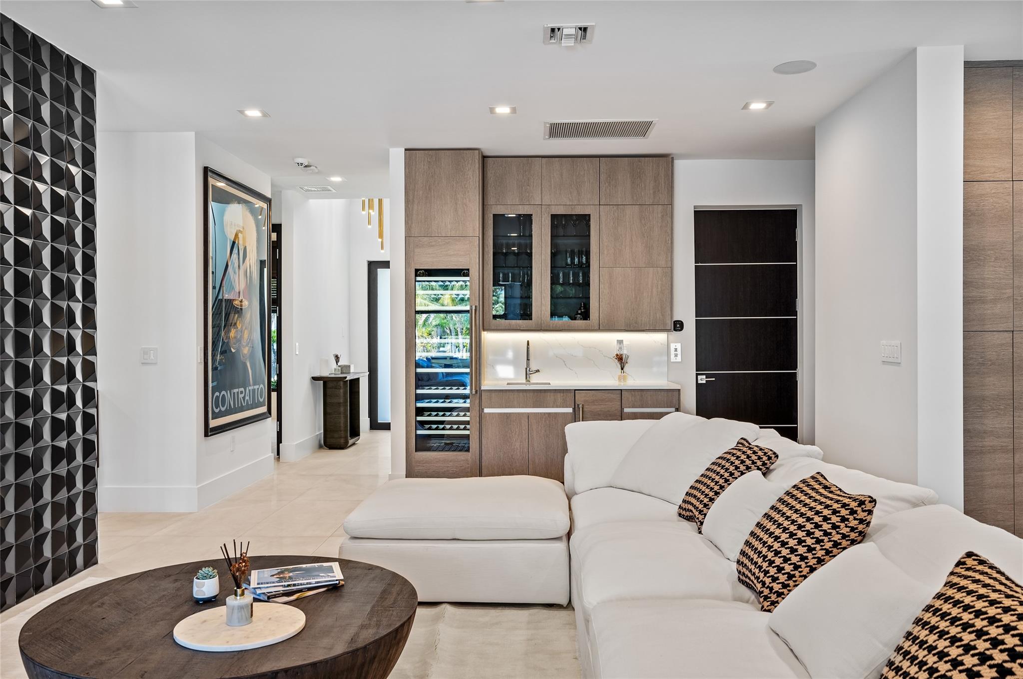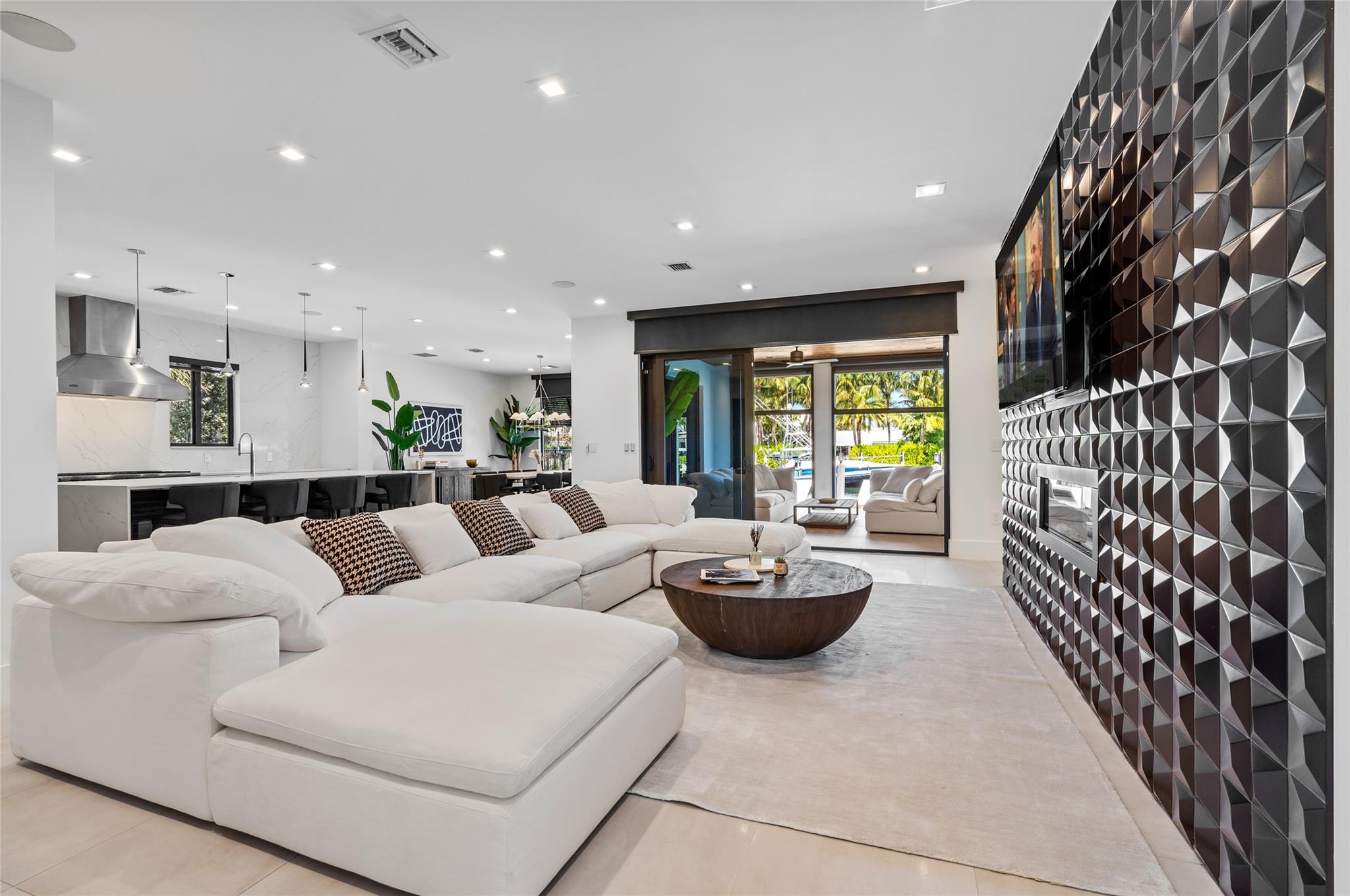 Available Seasonal or Annual. Turn-Key RH Styled & Furnished New Construction Estate sited on 65' of deepwater in Rio Vista. This 5 bed/5.5 bath gated residence has 5,122 total sqft of seamless indoor-outdoor living. Chefs kitchen, 6 burner Viking gas stove/griddle, Viking double refrigerator/freezer, 2 Viking dishwashers, Bosch built-in coffee/espresso maker, European cabinetry, & 24" Thermador wine column & ice maker. Smart-house tech: electronic shades, double-sided linear electric fireplace, & hot steam shower! Enhanced closet design & expansive covered summer kitchen/loggia with gas grill, refrigeration, & impressive electric phantom screens. A heated salt-water pool/spa with cascading waterfall features, set within marble decking, leads to the new composite dock & raised seawall