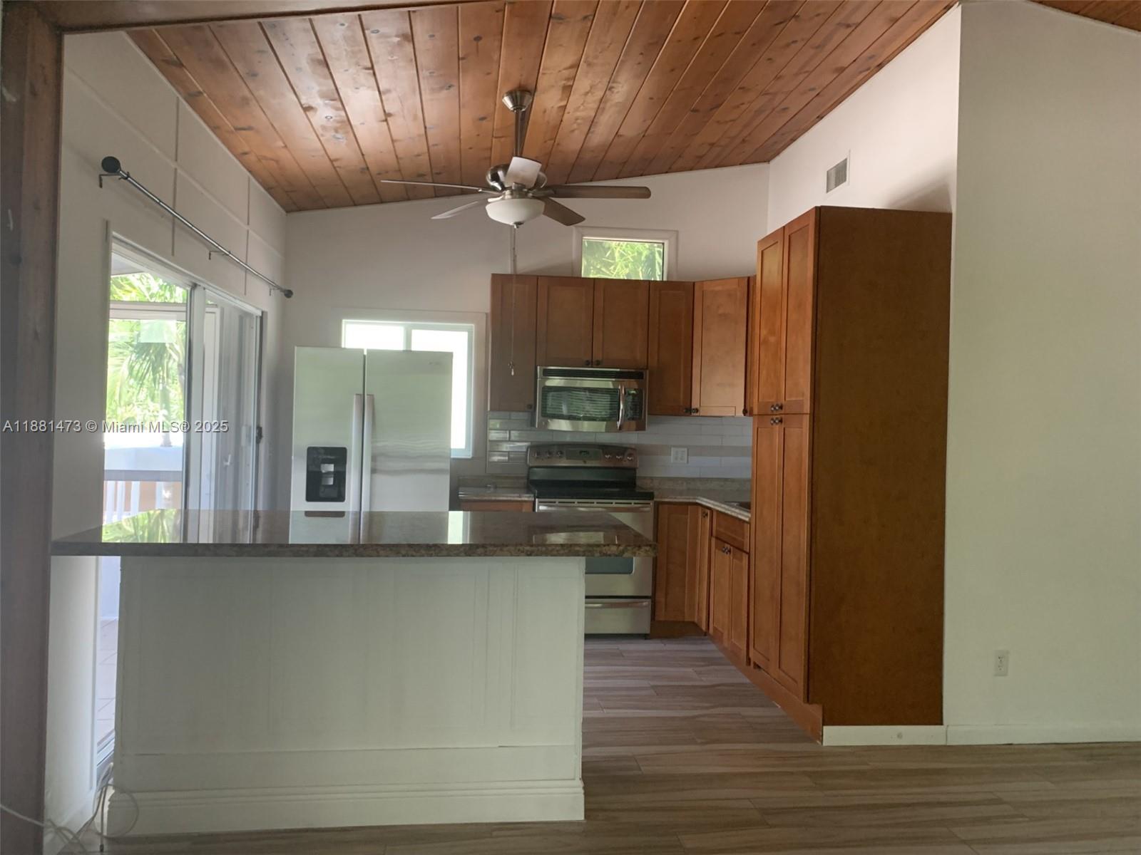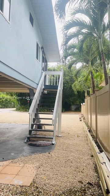 Beautiful 2/1 home, located on a corner lot in the heart of Key Largo, MM 102.5. Renting the whole second floor, private entrance and a large screened balcony, overlooking large corner lot perfect for relaxing in a desirable neighborhood. There is an open floor plan with dining and living area combined, kitchen has plenty of cabinets complete with an island, ceilings fans and wood cathedral ceiling. Washer and Dryer. A Small Pet is welcome.