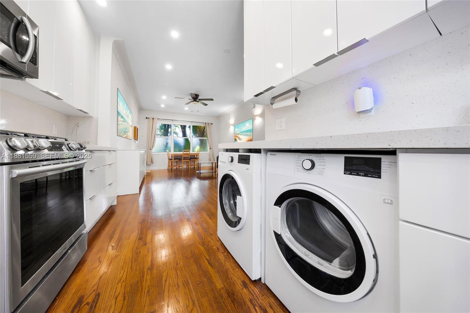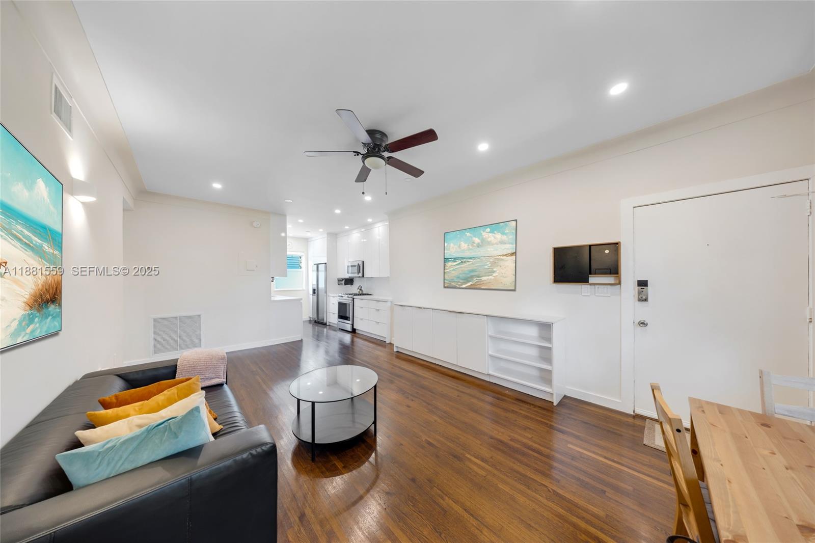 Seasonal Rental Available!! Step into this Tropical 2 bed 2 bath condo at the very well maintained building! Very Boutique, only 8 units! Unit features High Ceilings, recess LED lighting throughout, beautiful galley kitchen w quartz counter tops + white lacquer cabinets fit to ceiling, central AC, HARD WOOD floors, custom built-ins,Washer & Dryer IN the unit, gas range, dishwasher, refrigerator with Ice Maker. Located at the most tranquil location of South Beach. Life in "secret garden",surrounded with single family homes, very close to all favorite destinations on SoBe, Minutes to Lincoln rd! Parking is easy with exclusive Zone 3 residential parking available right in front of the building with a city permit. Contact today for seasonal pricing (subject to increase)! Can be offered furnished or unfurnished at $2700 FOR 1 YEAR LEASE, (built - in furniture stays in the unit).