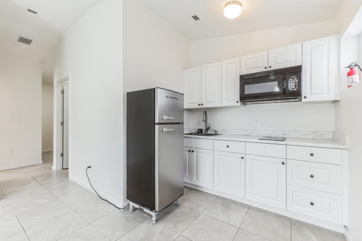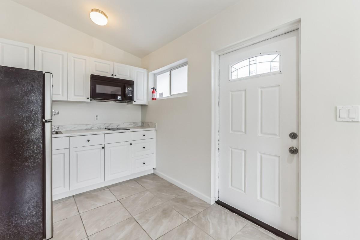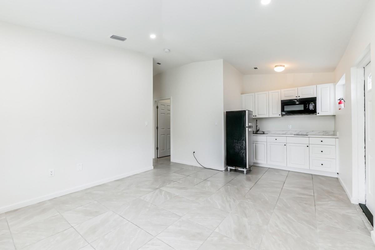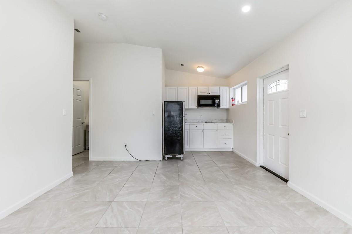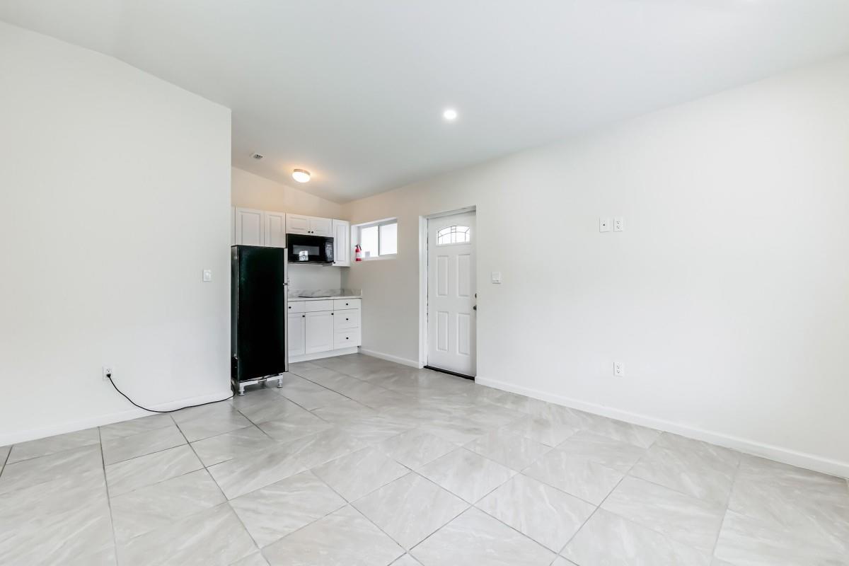 ALL UTILITIES INCLUDED! This spacious and modern efficiency offers high ceilings, a private entrance, and two dedicated parking spaces. Built just 3 years ago, the unit features a separate bedroom, bathroom, living room, and a full counter kitchen with all appliances. Enjoy the convenience of your own washer and dryer, recessed lighting, waterproof flooring, and upgraded finishes throughout. The kitchen is fully equipped, and the home also includes impact windows and a private impact door for added security.,