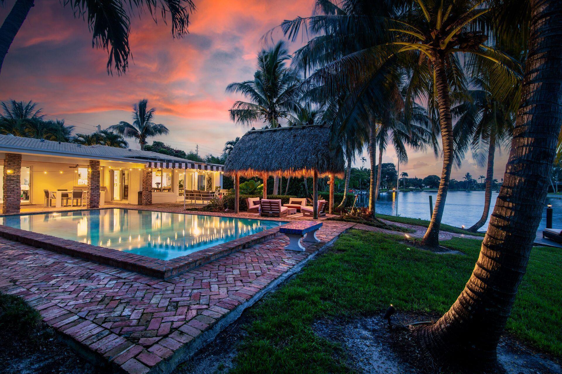 7813 PINE TREE LANE Spectacular waterfront home with a one-of-a-kind resort-style backyard! Bring your boat, jet skis or paddle board to your own piece of paradise! Ideal home for entertaining and enjoying true South Florida living. Over 120 sq ft of direct water frontage on the lake in Lake Clarke Shores. Oversized dock with a boathouse & boat lift, dock offers convenient steps down for those paddle boarders or canoers. Offered Fully furnished. Primary suite with king size bed, stunning bathroom and gigantic oversized walking closet. The guest suite has two full-sized beds and in suite bathroom. Full-sized summer kitchen with built-in grill, multiple covered dining areas including Tiki hut! Pristine vignettes. Large Tiki Hut with electricity to enjoy beautiful waterfront sunsets. The
