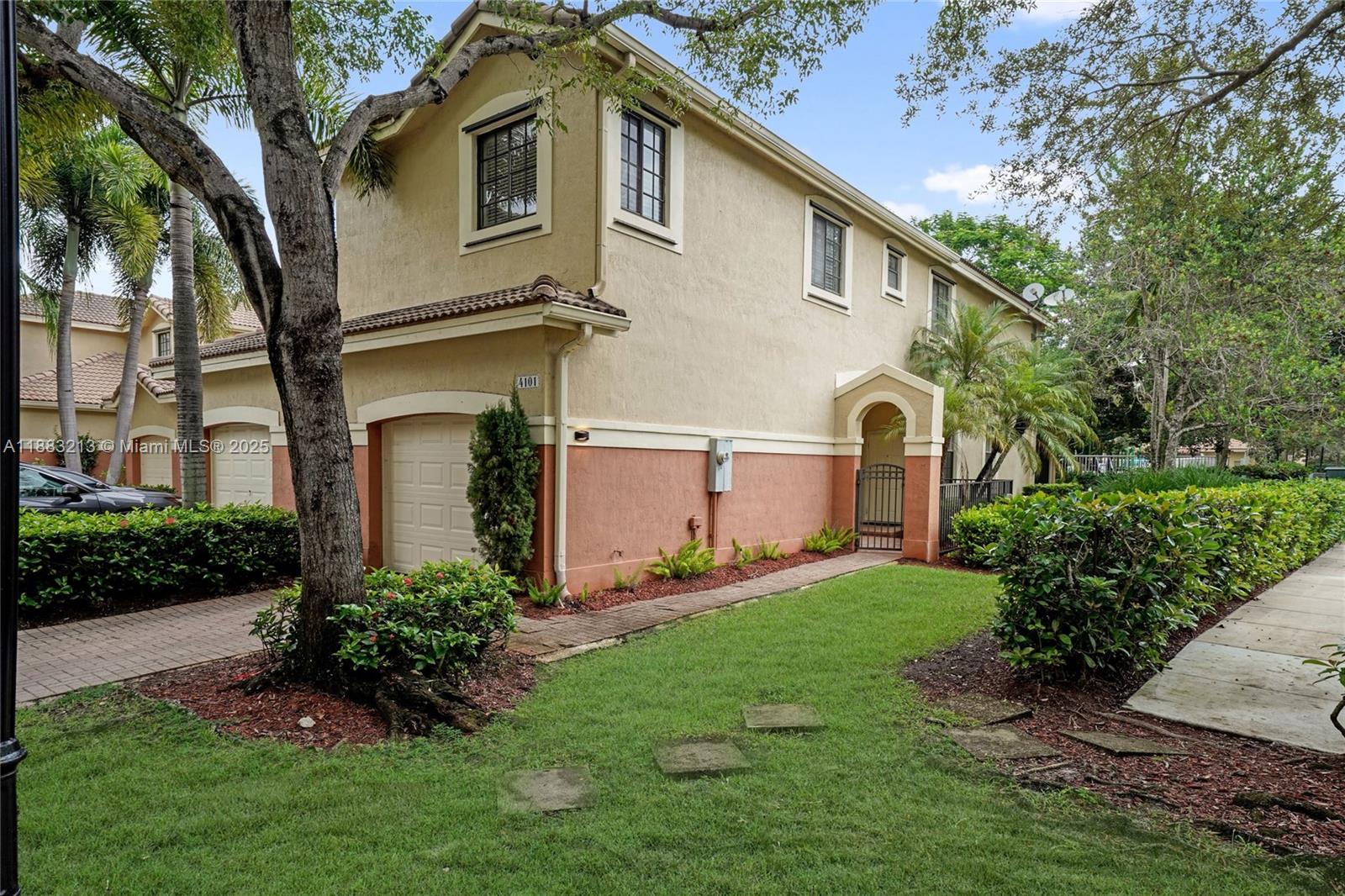 Beautiful corner unit townhouse available for rent in the gated community of Courtyard at the Grove. This spacious 4-bedroom, 2.5-bathroom home features a private courtyard entrance, screened patio, a one-car garage, and a paved driveway. new paint. Inside, you'll find tile flooring on the first floor and laminate on the second. All four bedrooms are located upstairs for added privacy. Screened-in patio that opens directly to the community pool and playground—perfect for families. Surrounded by A-1 rated schools and Weston library and Weston Public Library, this home offers unmatched convenience and a family-friendly environment. Ample guest parking and a well-maintained community.