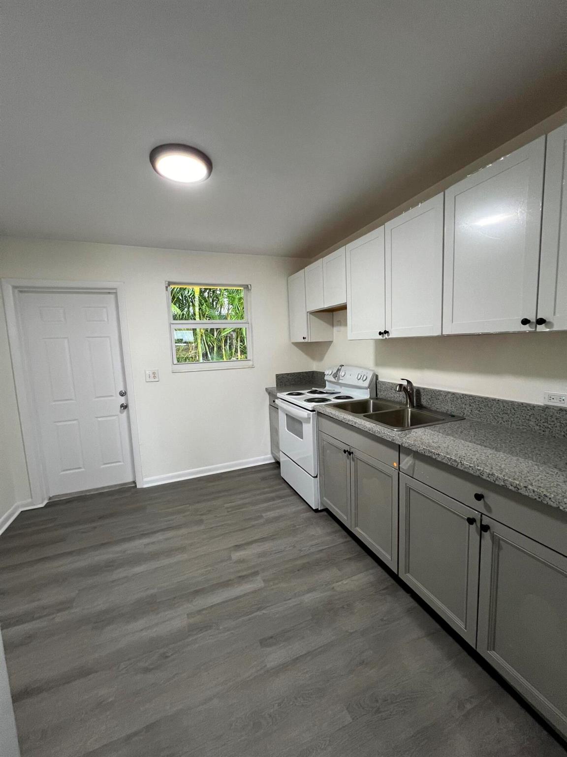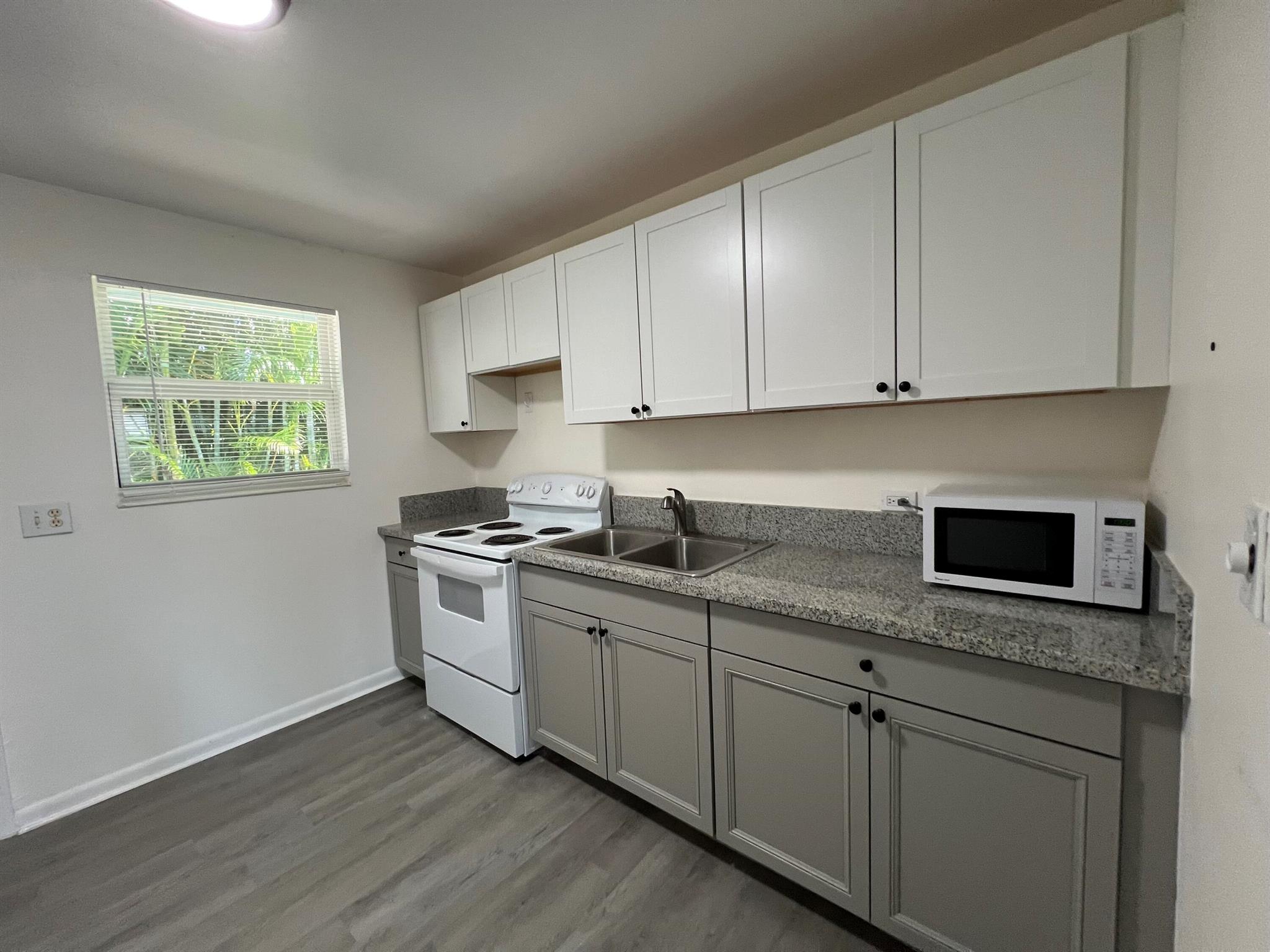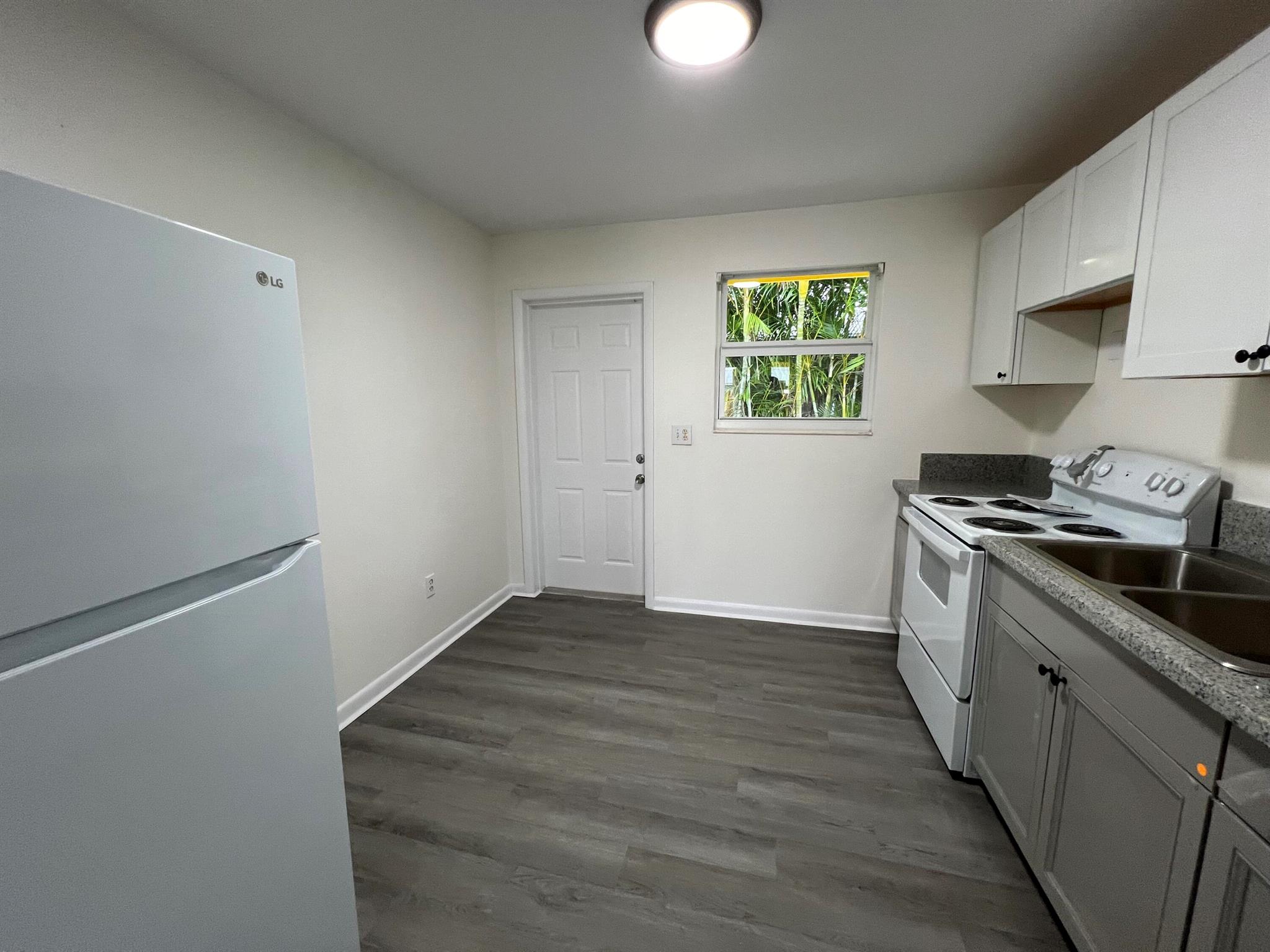 Two bedroom one bath, newly renovated apartment located at end of road. Full size appliances. Window A/C units. Washer and dryer inside apartment.Walk in closets.Tub/shower combo. Property has well water. Utilities paid by tenant. Off street parking. Small patio space in back. Located off PGA Blvd and close to beaches and shopping. First, Last and security required. Application, ID, verification of income and rental history. Credit Report and Background check required.