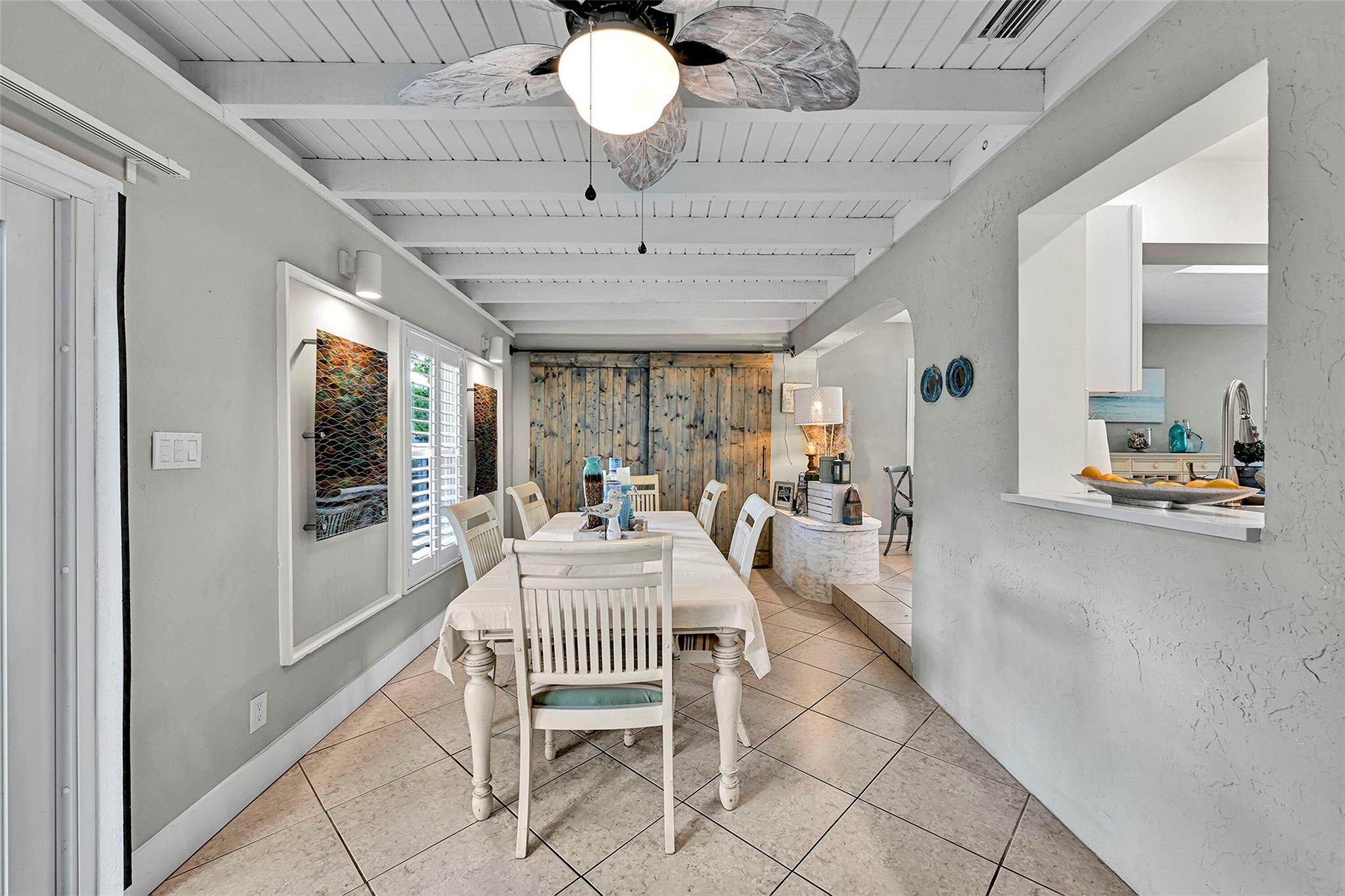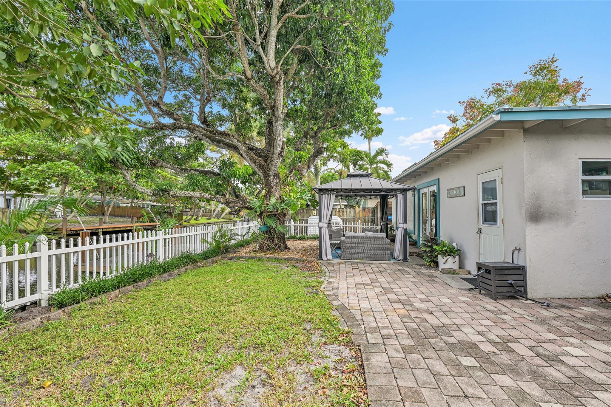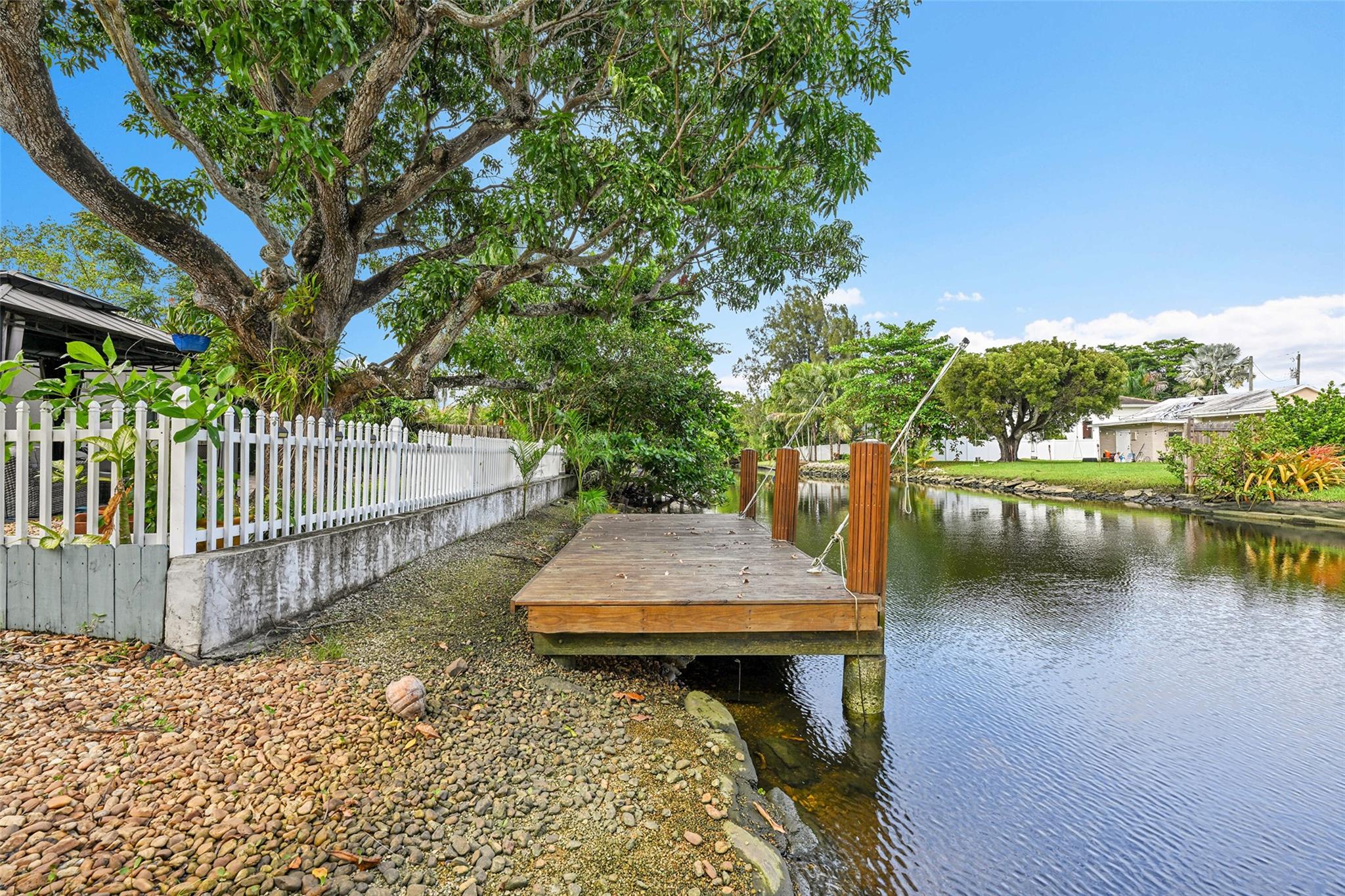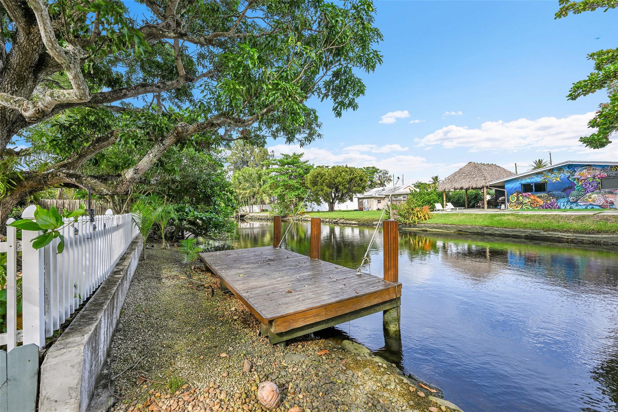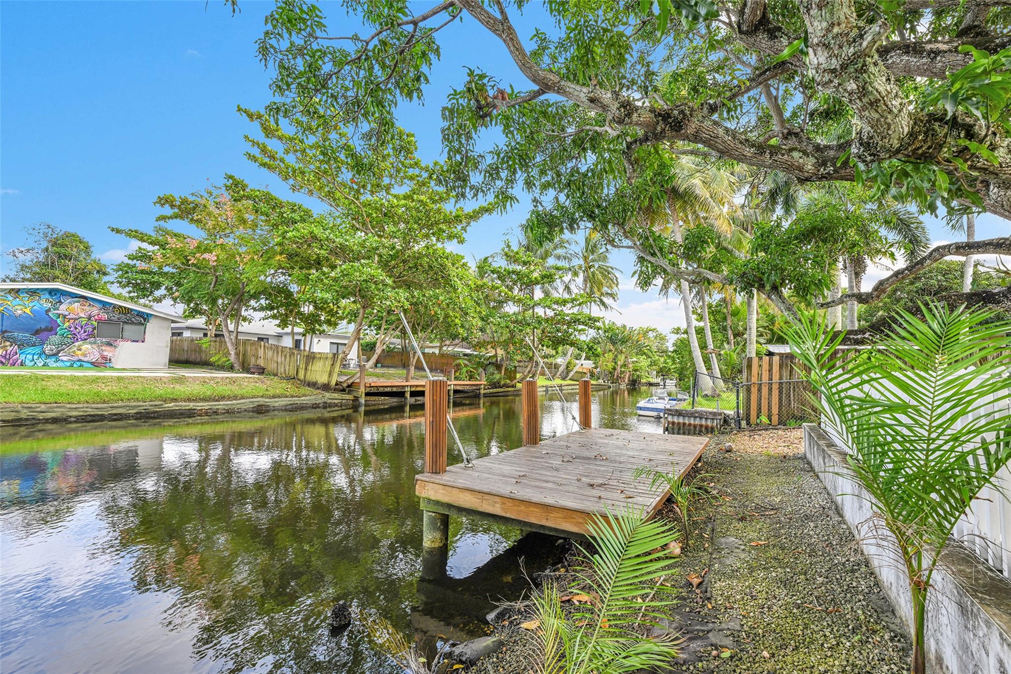Charming 3-bedroom, 2-bath home tucked away in a quaint section of Fort Lauderdale. The tropical backyard retreat features a newer dock on a waterway with one fixed bridge and direct access to the ocean—perfect for boating or fishing enthusiasts. Inside, find an inviting layout with a bright living room featuring a skylight, a versatile Florida room, and a dining area that flows seamlessly into the gourmet kitchen. The kitchen boasts quartz countertops & an elegant design ideal for cooking & entertaining. Plantation shutters throughout add warmth & style. Additional highlights include: impact windows (except 1 door), washer & dryer, and a 2 car garage. This home combines tropical tranquility with modern upgrades—a true waterfront lifestyle just minutes from all Fort Lauderdale has to offer