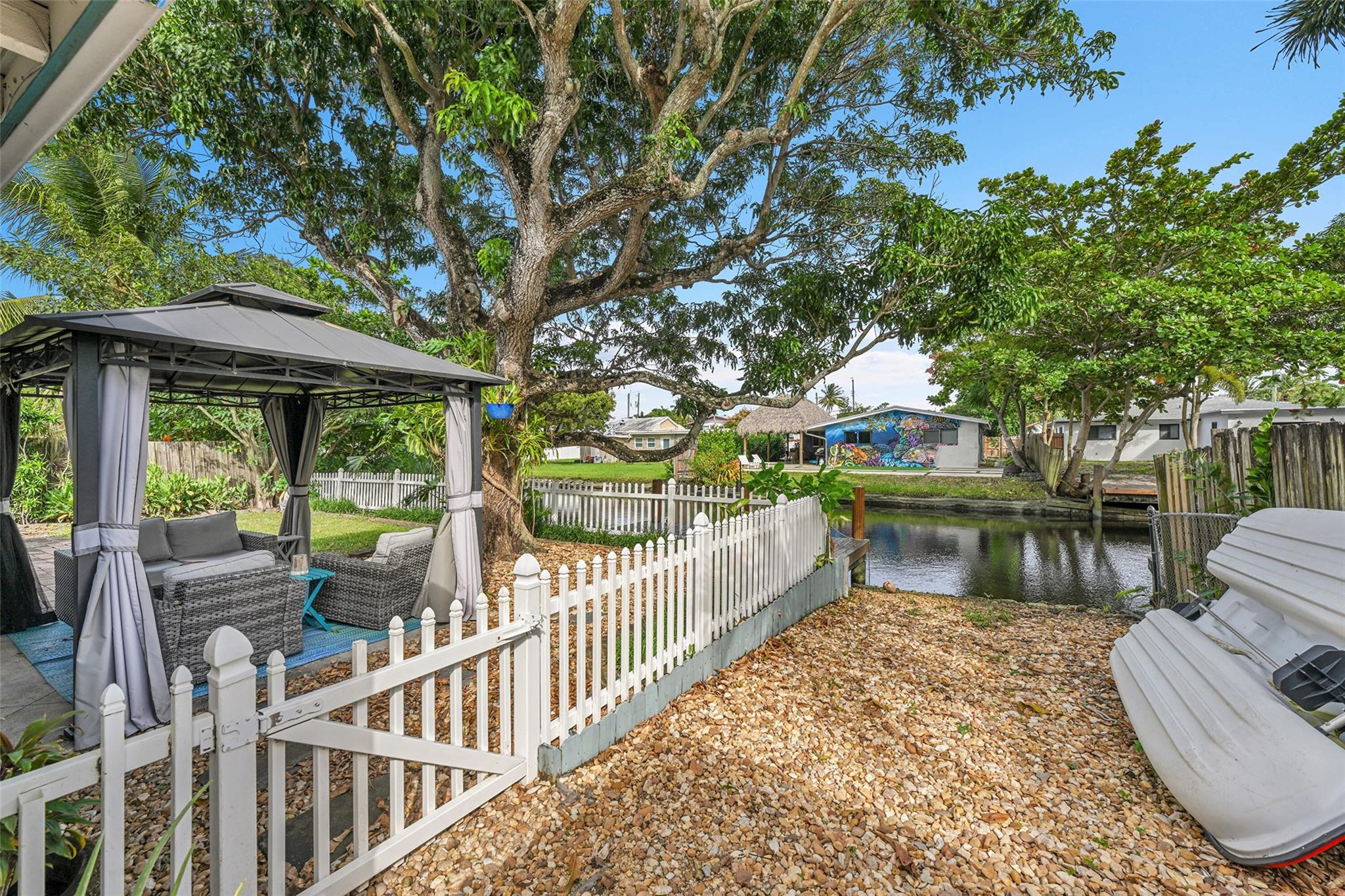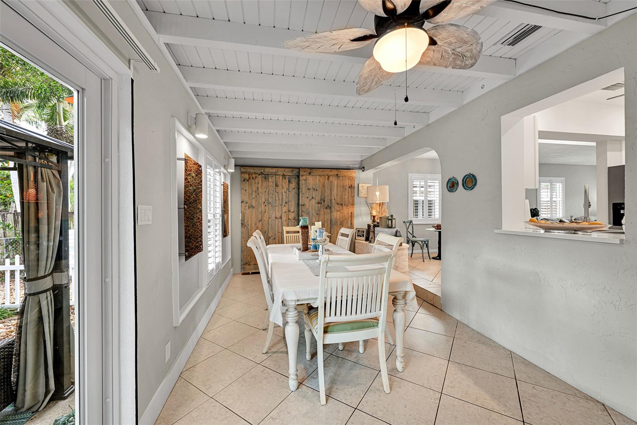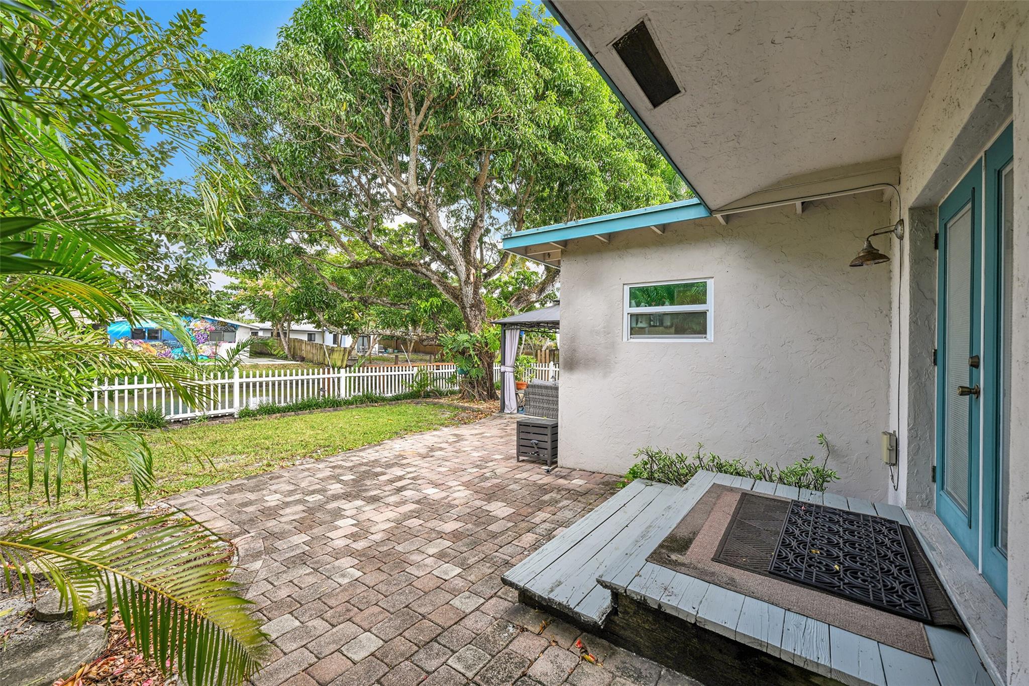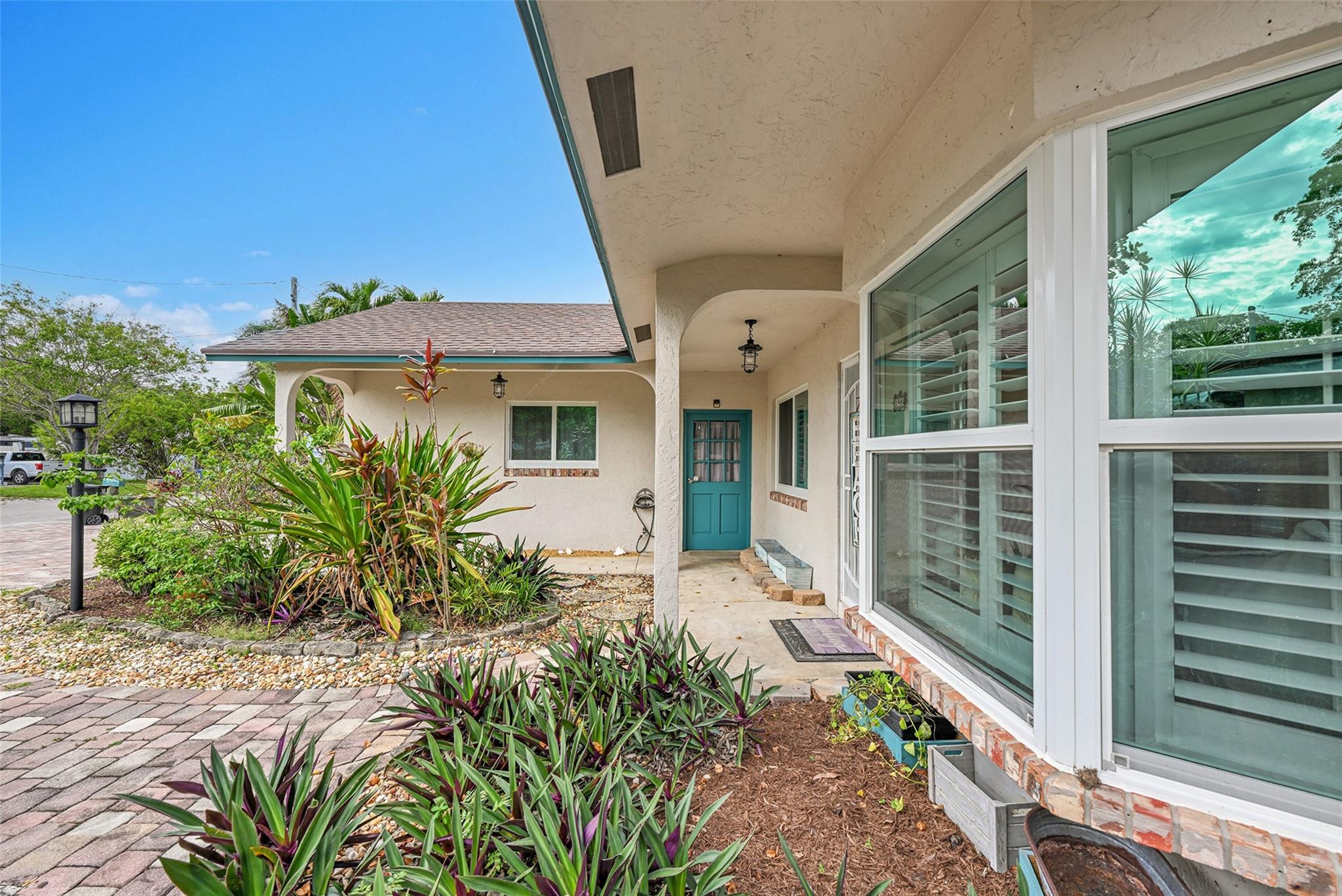 Charming 3-bedroom, 2-bath home tucked away in a quaint section of Fort Lauderdale. The tropical backyard retreat features a newer dock on a waterway with one fixed bridge and direct access to the ocean—perfect for boating or fishing enthusiasts. Inside, find an inviting layout with a bright living room featuring a skylight, a versatile Florida room, and a dining area that flows seamlessly into the gourmet kitchen. The kitchen boasts quartz countertops & an elegant design ideal for cooking & entertaining. Plantation shutters throughout add warmth & style. Additional highlights include: impact windows (except 1 door), washer & dryer, and a 2 car garage. This home combines tropical tranquility with modern upgrades—a true waterfront lifestyle just minutes from all Fort Lauderdale has to offer