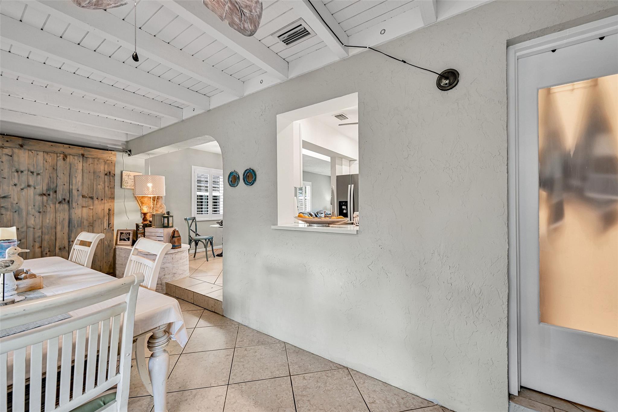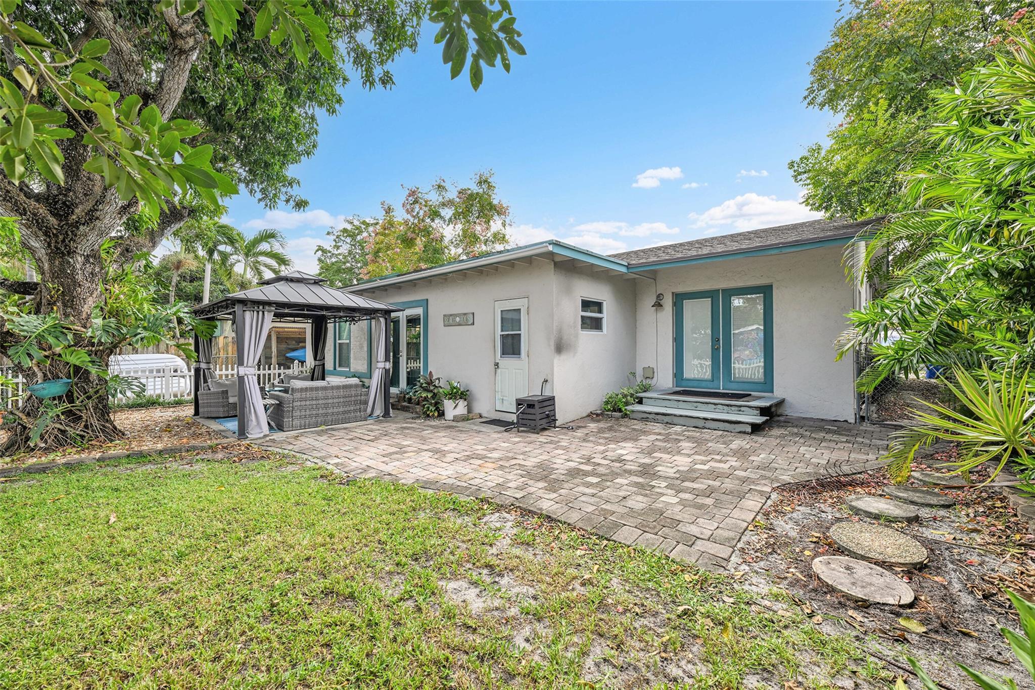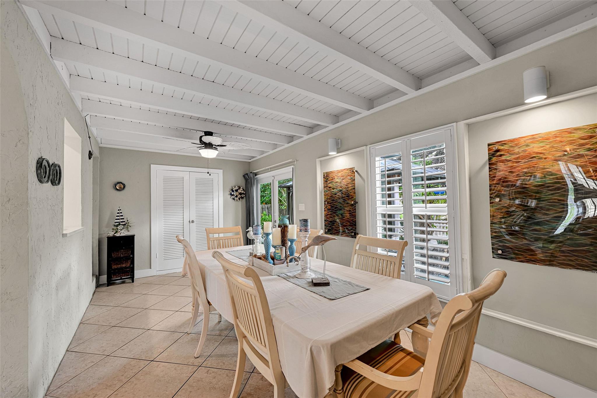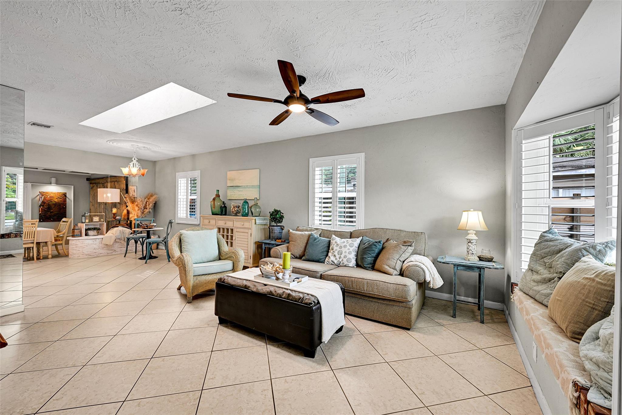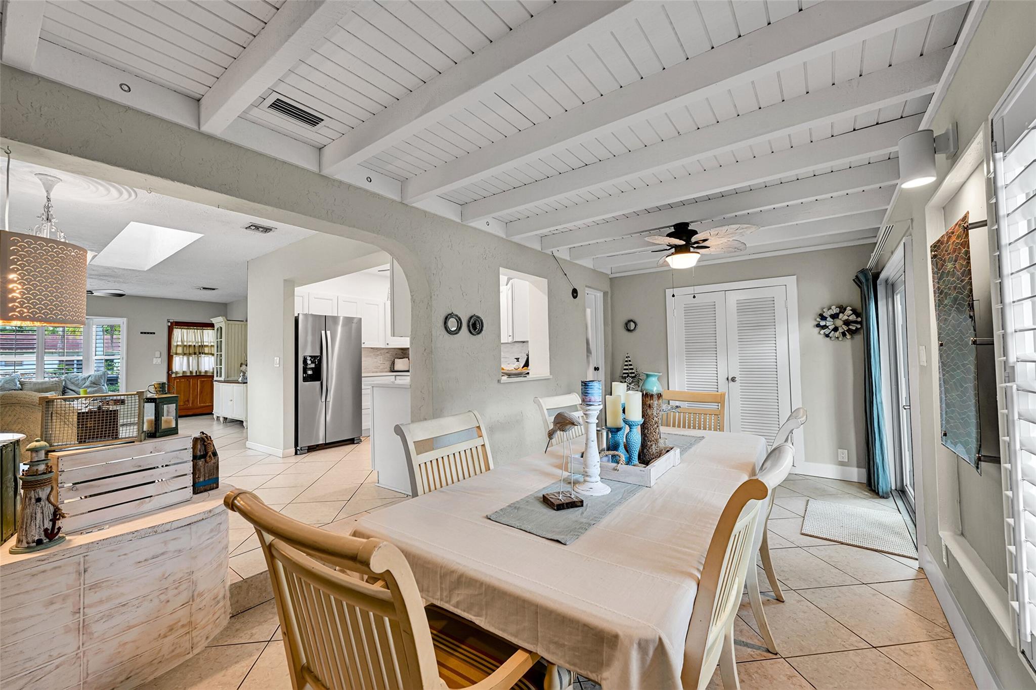 Charming 3-bedroom, 2-bath home tucked away in a quaint section of Fort Lauderdale. The tropical backyard retreat features a newer dock on a waterway with one fixed bridge and direct access to the ocean—perfect for boating or fishing enthusiasts. Inside, find an inviting layout with a bright living room featuring a skylight, a versatile Florida room, and a dining area that flows seamlessly into the gourmet kitchen. The kitchen boasts quartz countertops & an elegant design ideal for cooking & entertaining. Plantation shutters throughout add warmth & style. Additional highlights include: impact windows (except 1 door), washer & dryer, and a 2 car garage. This home combines tropical tranquility with modern upgrades—a true waterfront lifestyle just minutes from all Fort Lauderdale has to offer