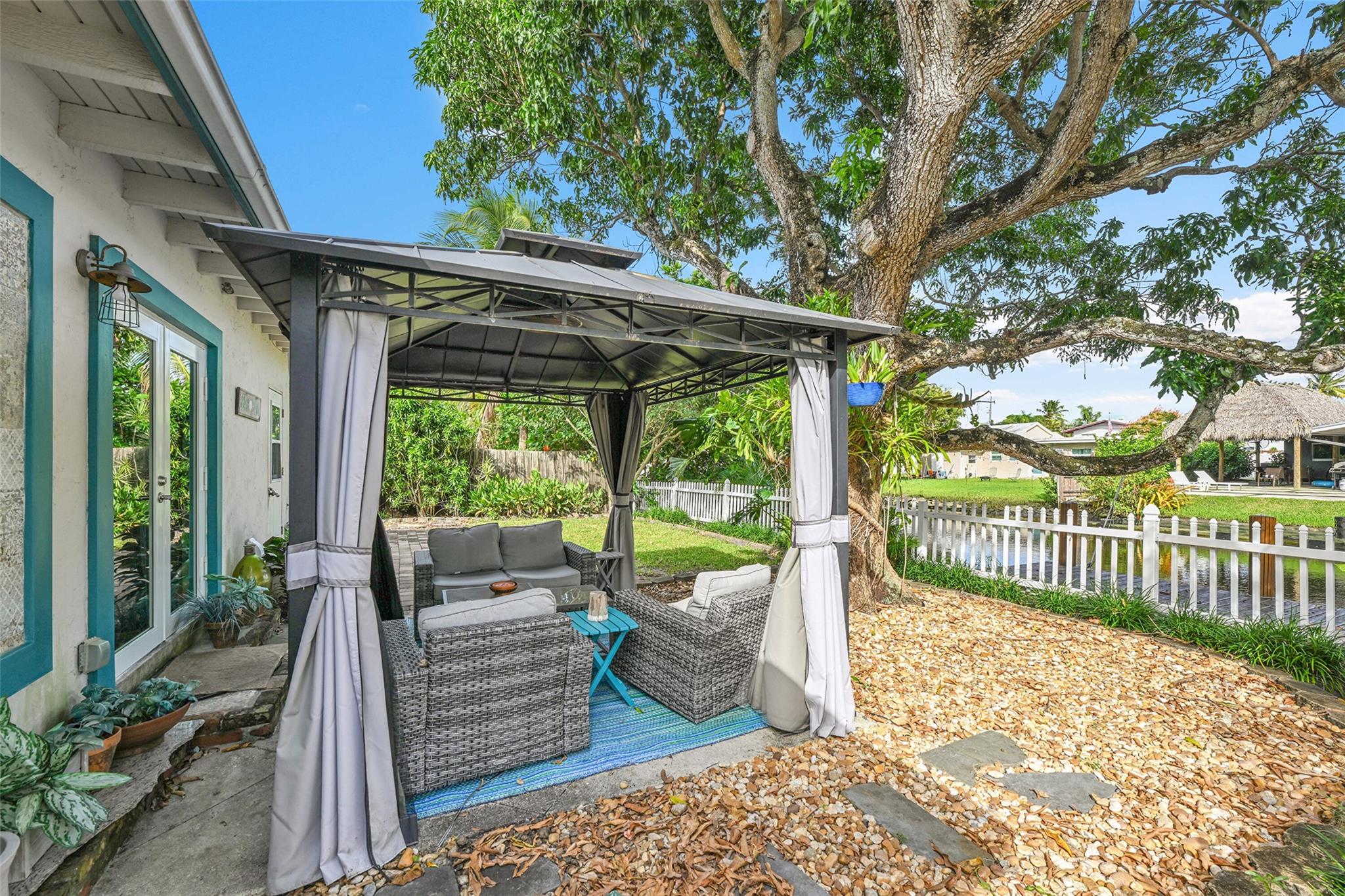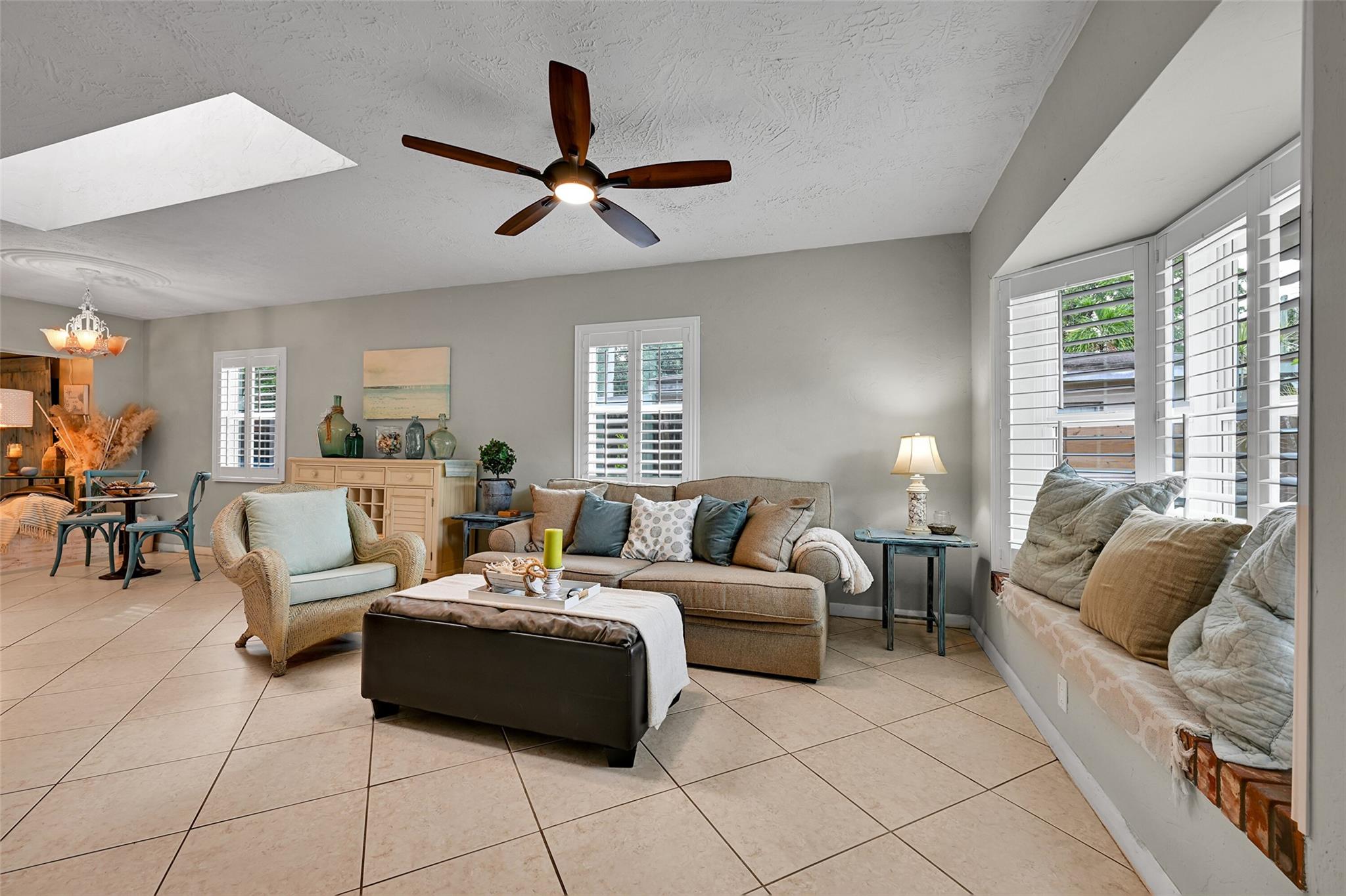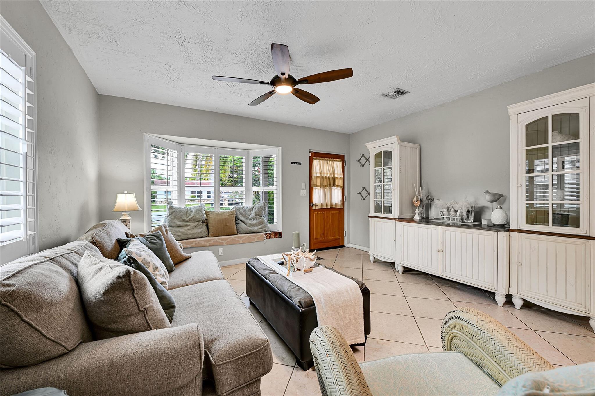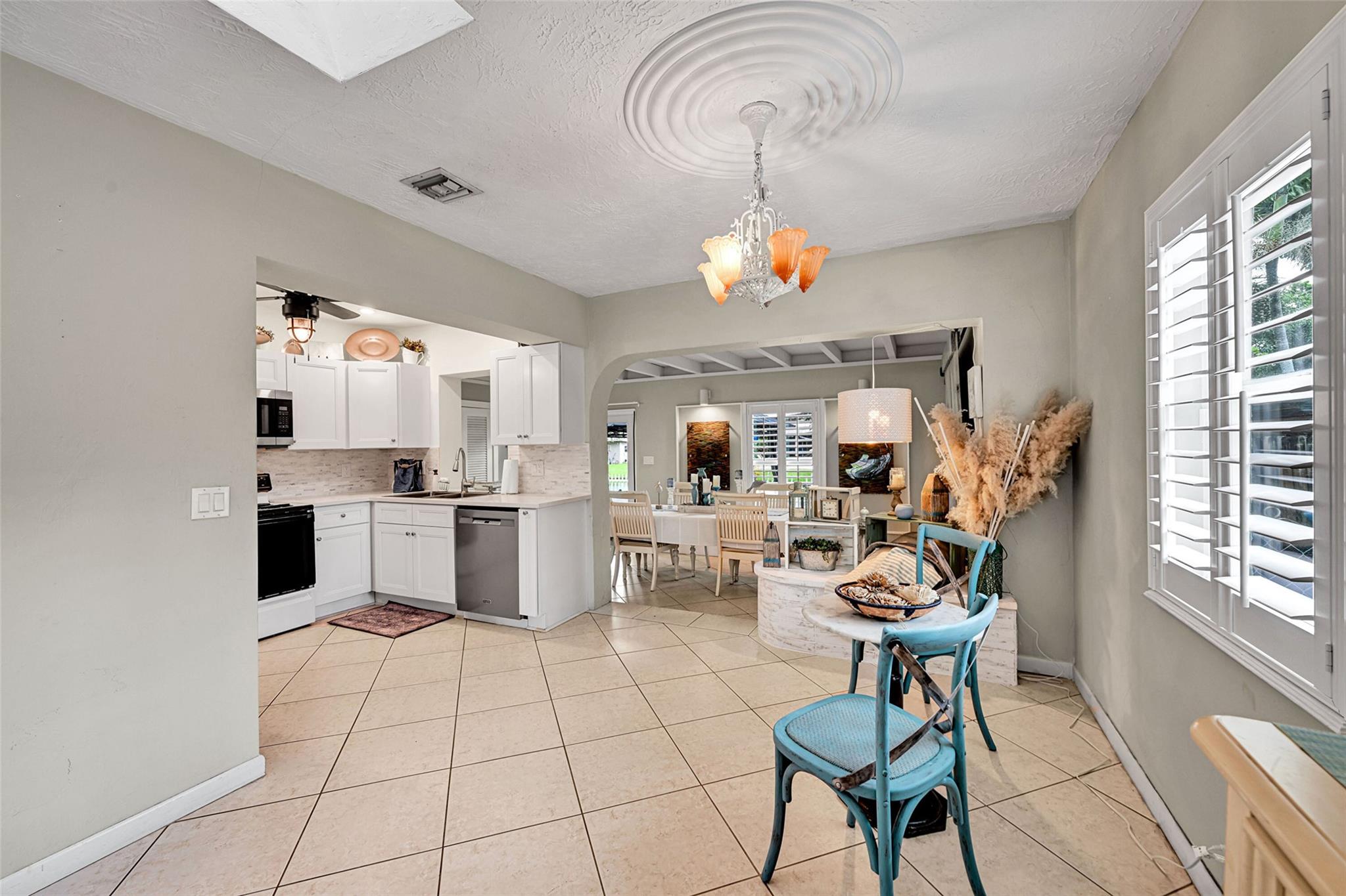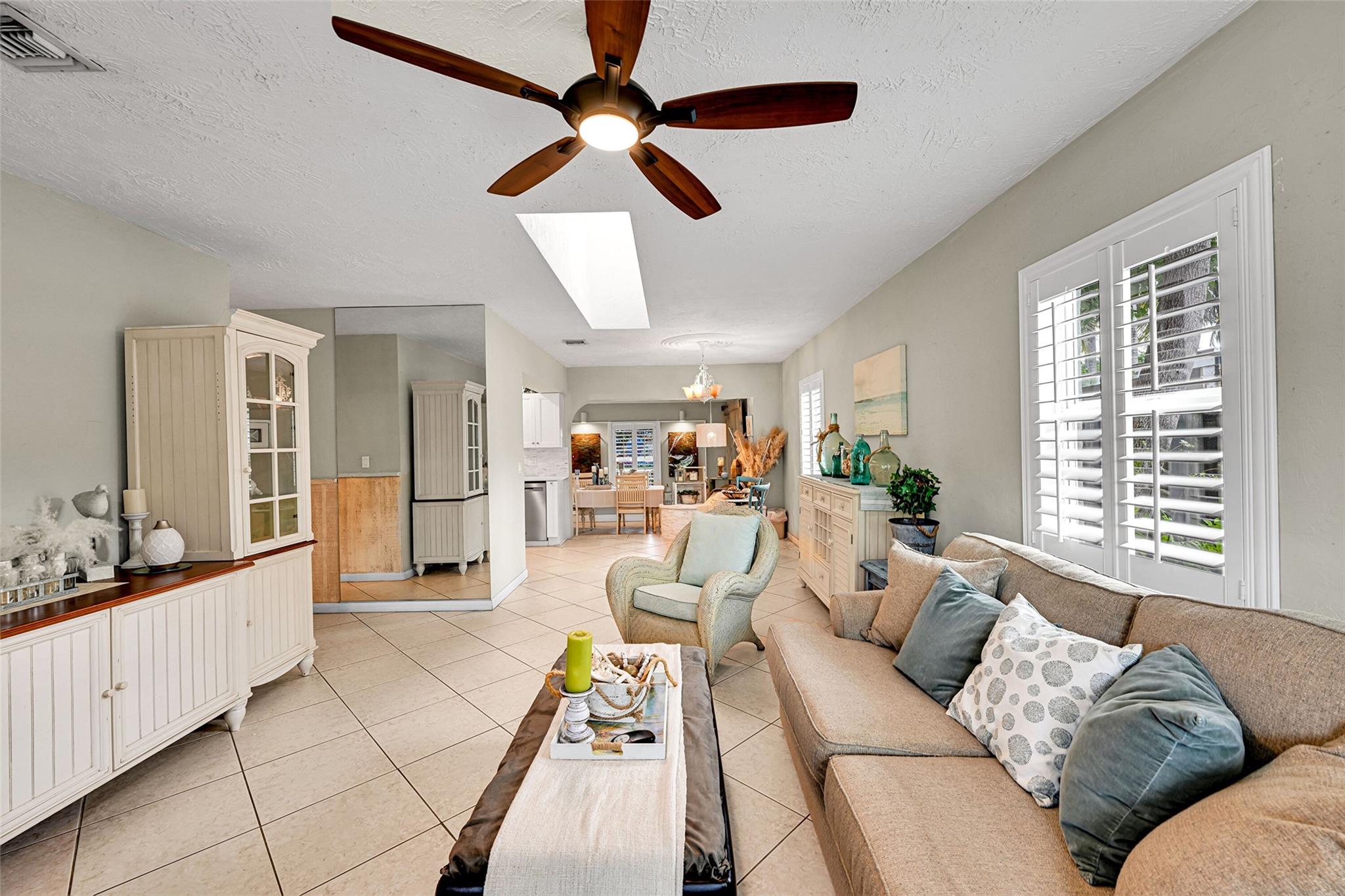 Charming 3-bedroom, 2-bath home tucked away in a quaint section of Fort Lauderdale. The tropical backyard retreat features a newer dock on a waterway with one fixed bridge and direct access to the ocean—perfect for boating or fishing enthusiasts. Inside, find an inviting layout with a bright living room featuring a skylight, a versatile Florida room, and a dining area that flows seamlessly into the gourmet kitchen. The kitchen boasts quartz countertops & an elegant design ideal for cooking & entertaining. Plantation shutters throughout add warmth & style. Additional highlights include: impact windows (except 1 door), washer & dryer, and a 2 car garage. This home combines tropical tranquility with modern upgrades—a true waterfront lifestyle just minutes from all Fort Lauderdale has to offer