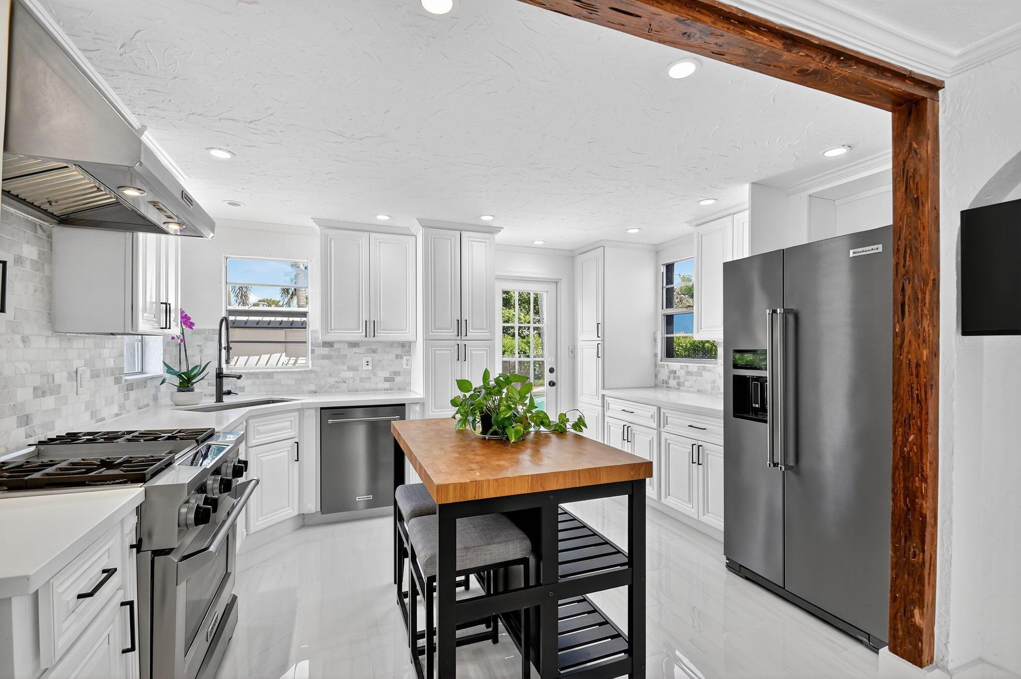 Mediteranean/Spanish 4 bedroom, two story home with free form pool located in College Park HIstoric area of Lake Worth Beach. Restored wooden floors, and ceramic tile in Eat-in Kitchen with Dining Room, Den and Bathroom on the First Floor. Gas Range and Oven, All Stainless Steel appliance package with washer and dryer located in kitchen. Wood burning fireplace in Living room. large brick outdoor area with covered patio and covered eating area. Primary bedroom features walk in closet and a balcony facing the front yard. Close to the Beach, Palm Beach, shops and next to West Palm Beach. Dogs welcome!