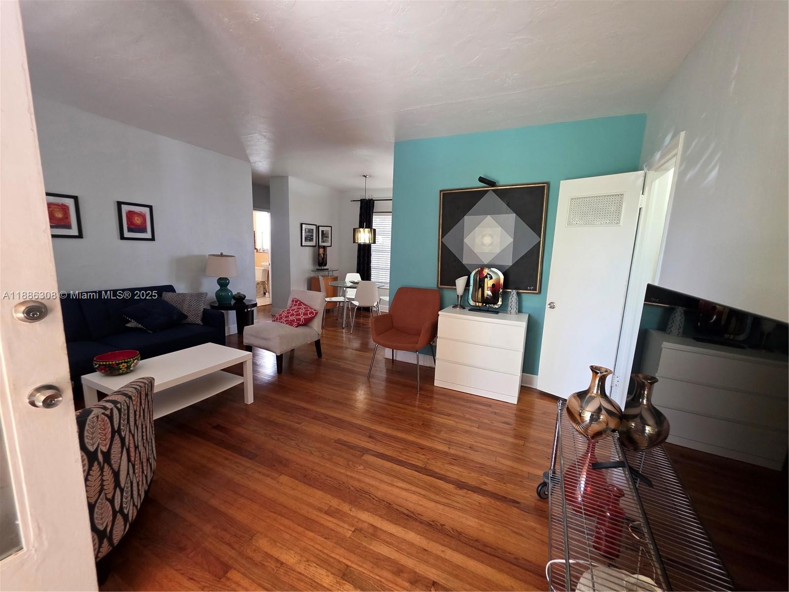 Beautiful and fully furnished 1/1 apartment in a traditional Miami building. Enjoy the balmy weather from your garden side terrace. One block away from great park and beach. Minutes from Aventura Mall, Bal Harbour Shops, Normandy Isle, and famous South Beach. Bedroom has a queen size bed, and a queen-size sofa in the living room. Flat screen TV in the bedroom and living room. Dining area can sit four guests. Fully equipped kitchen. Laundry facilities in the building at no cost. Utility included. Park in the street. No pet. Can be be rented for less than a year.