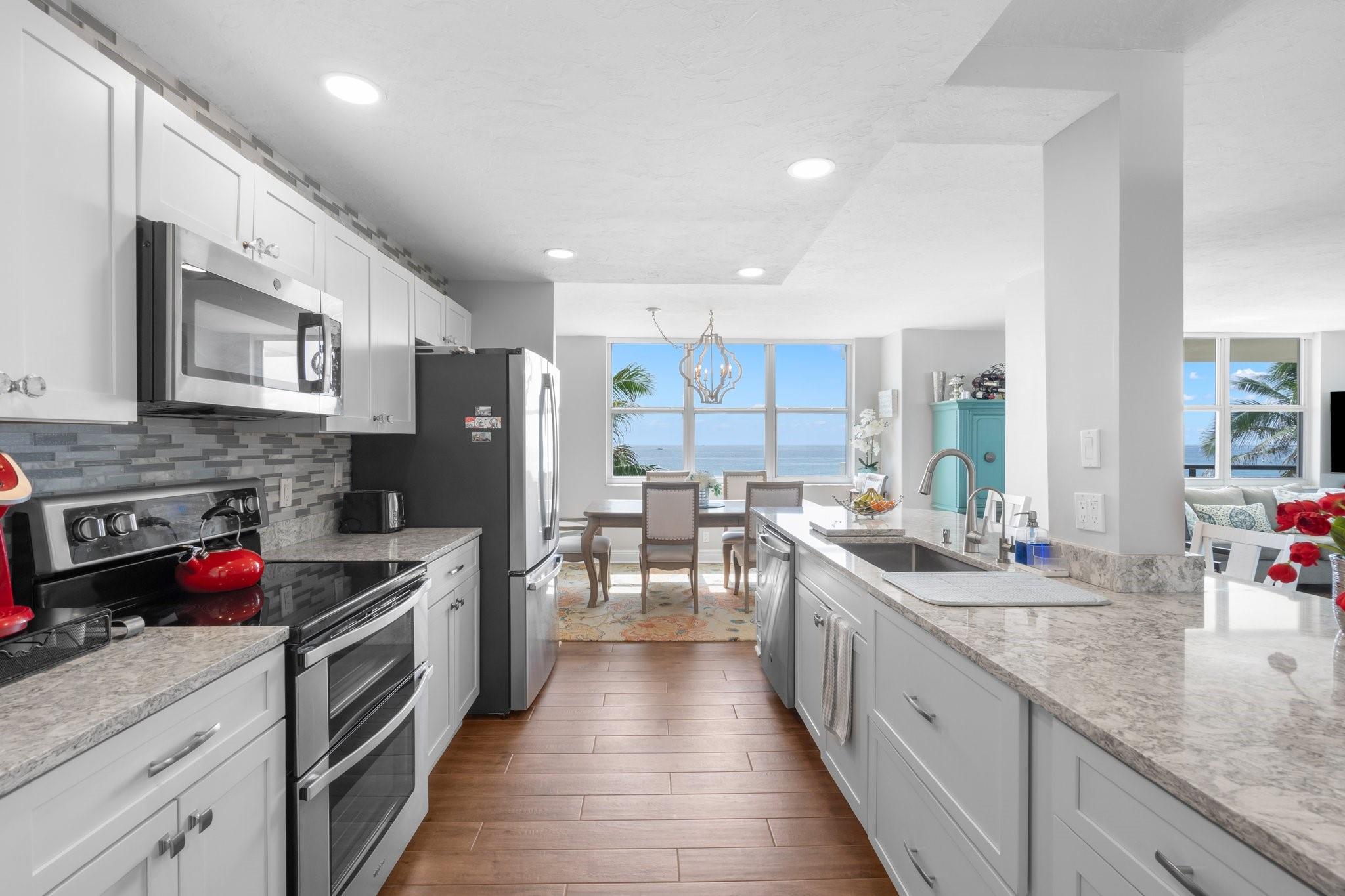 Enjoy breathtaking ocean views in this beautifully remodeled 1300 sq ft condo! This unit offers a huge wraparound balcony. Unobstructed panoramic views from your living room, kitchen, and dining space. Modern open concept with high end finishes throughout. W/D in unit. Whether your looking for a peaceful retreat or a vibrant coastal lifestyle, this condo delivers it all! Included with your rent is access to all the amenities including private beach access, 24H Lobby security, Heated Pool with ocean views, Renovated Fitness Center/Gym, 4 grills and deck overlooking ocean, Garage parking, Water, trash, sewer, Internet!