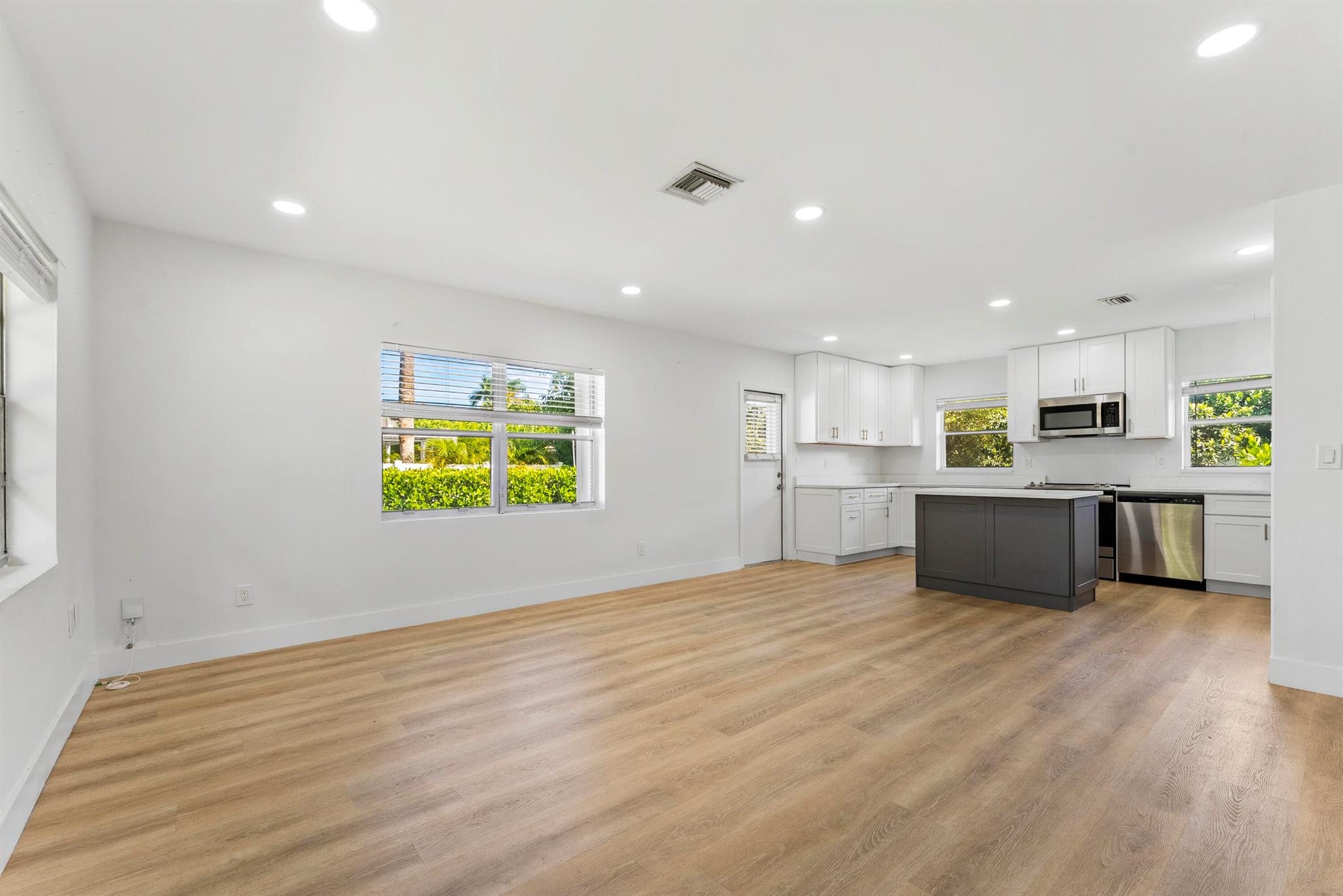 Beautifully remodeled 2-bedroom, 1-bathroom apartment in East Delray Beach, just minutes from Atlantic Avenue. This move-in-ready gem features a large kitchen with quartz counter top with ample storage. Sleek vinyl flooring throughout, large private yard perfect for relaxation. Washer and Dryer in the unit and plenty of parking. Enjoy a fast and hassle-free approval process. Don't miss out and schedule your showing today, Offering yearly lease or short-term rental.