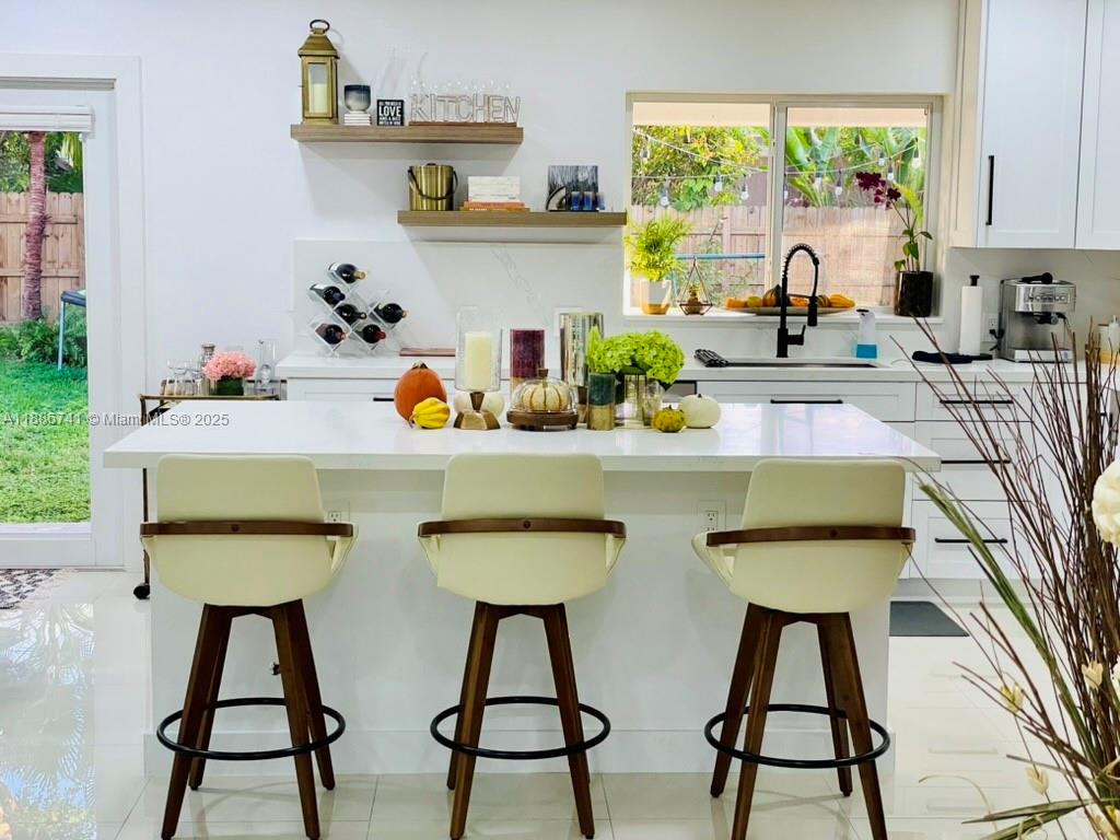 Welcome home! This renovated residence features a large open floor plan and open kitchen with custom cabinets and a large island for entertaining. Oversized master bedroom with its private bathroom, double vanity and glass shower enclosure. All closets are custom built. Covered patio and outdoor space to enjoy & relax, fenced backyard and shade trees. The property is meticulously maintained. Nestled in the family-friendly Saga Bay community in Cutler Bay, you will enjoy tennis courts, baseball field, outdoor fitness routines along the walking path, children’s playground and two sandy lakefront beaches among many other amenities. Conveniently located close to top-rated schools, shopping, dining & other entertainments. Minutes from FL. Turnpike, close to MIA airport and FL Keys.