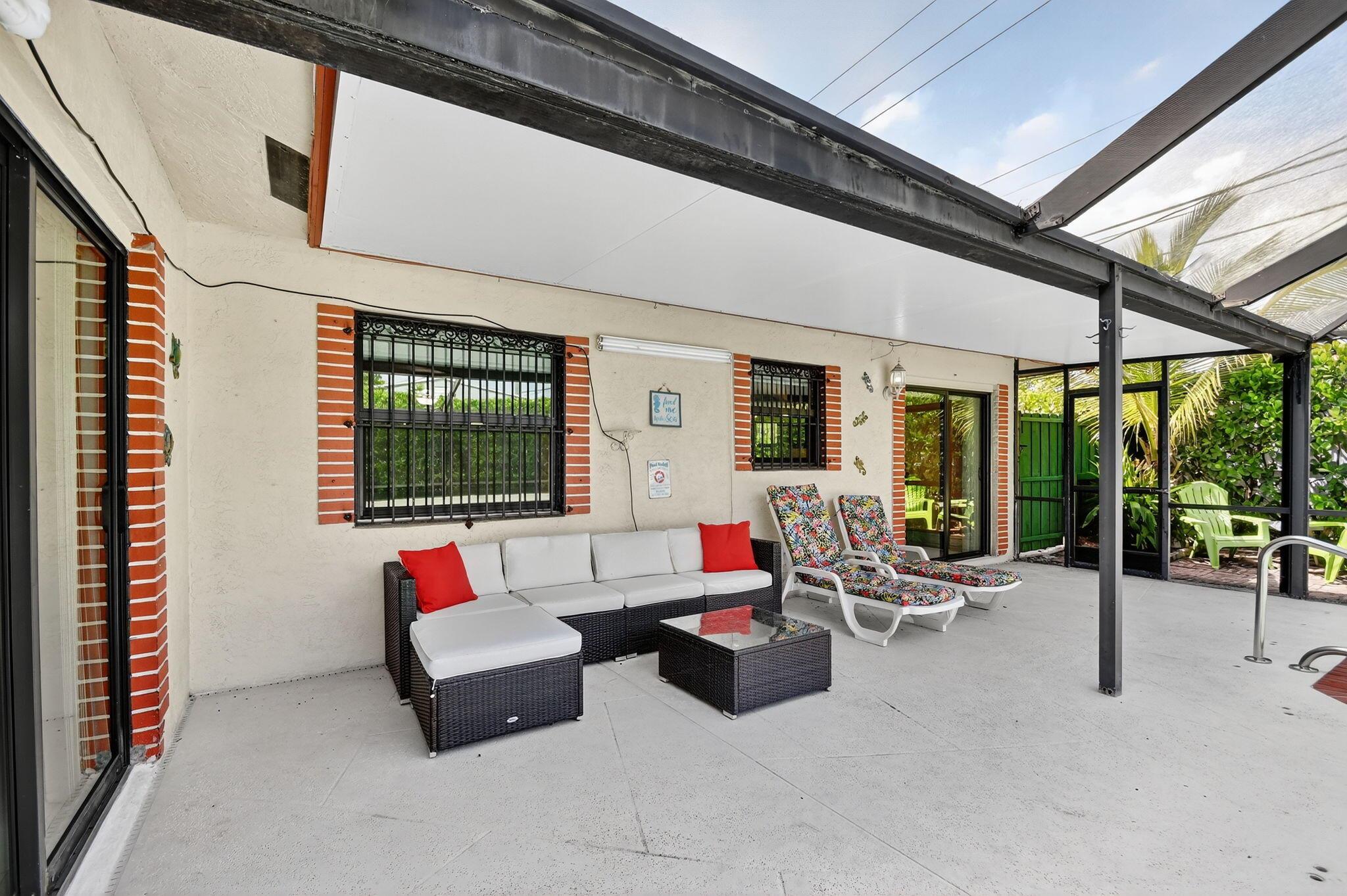 Turnkey furnished rental at the end of a quiet cul-de-sac, directly next to Dreher Park--home to the Palm Beach Zoo and the Cox Science Museum & Aquarium. Just minutes to downtown West Palm Beach, the Norton Museum, dining, shopping, and nightlife on Clematis Street and The Square. The beach is only a short drive away, offering the best of Florida living. This bright, open home features impact windows throughout, a spacious island kitchen with granite counters and stainless appliances, and a split-bedroom layout for privacy. The master suite includes a walk-in closet and large bath. Sliding impact doors lead to the screened, heated pool with seating, waterfall, and a fenced yard surrounded by lush clusia hedges. Fully furnished and equipped--ready for your next stay