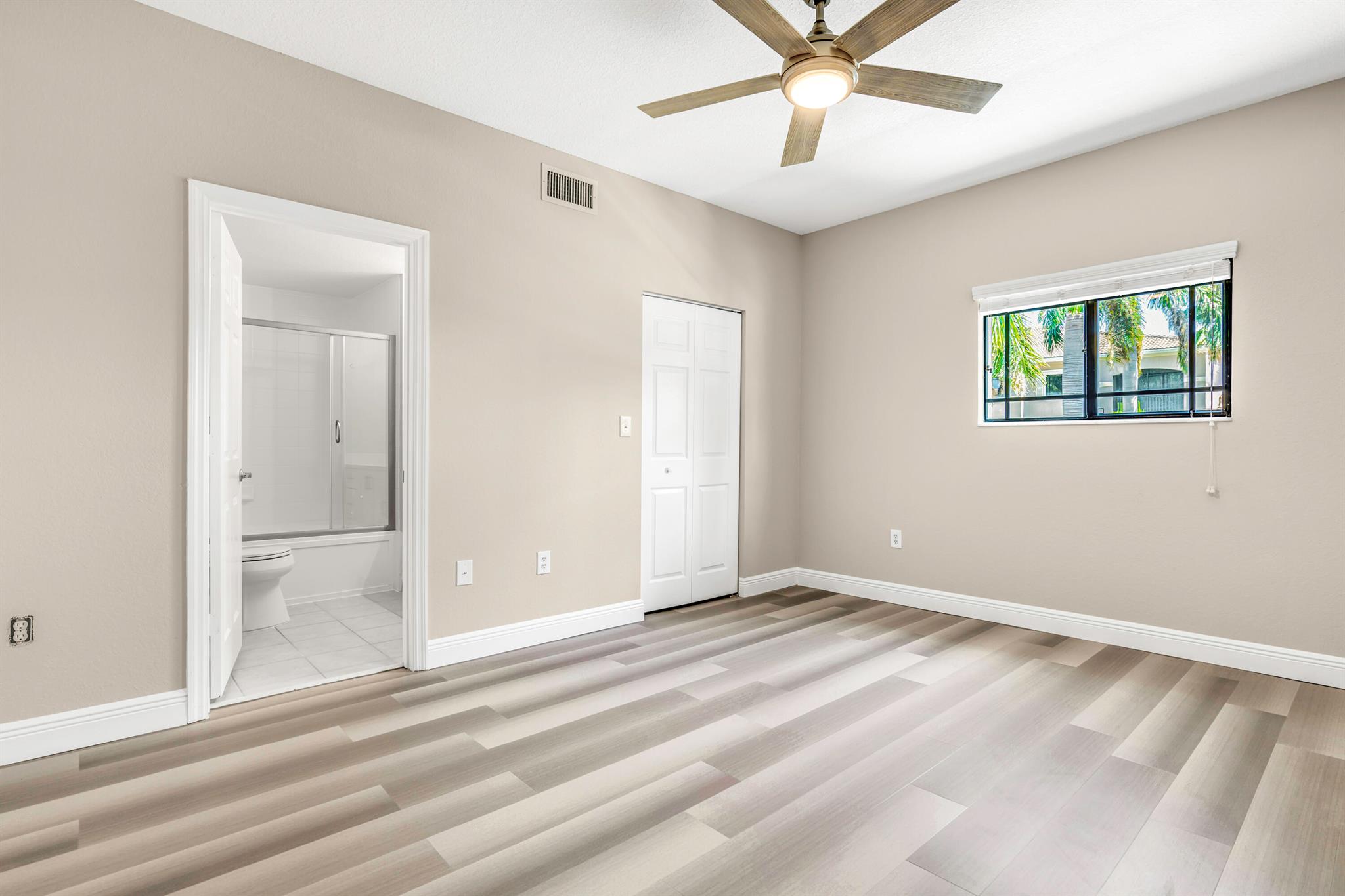 Welcome to resort-style living in the heart of Palm Beach Gardens! This beautifully updated 3-bedroom, 3-bathroom condo with 1 car garage and screened patio in the highly desirable gated community of San Matera offers the perfect blend of comfort, space, and modern convenience. Boasting a rare two-story layout with a versatile loft, this home is ideal for those who value both functionality and style. Each bedroom features its own updated en-suite bathroom, providing a private retreat for family, guests, or roommates. One bedroom and full bathroom are located on the first floor-perfect for added convenience or multigenerational living. Enjoy the open-concept floor plan where the spacious living and dining areas flow effortlessly into the upgraded kitchen, complete with granite countertops