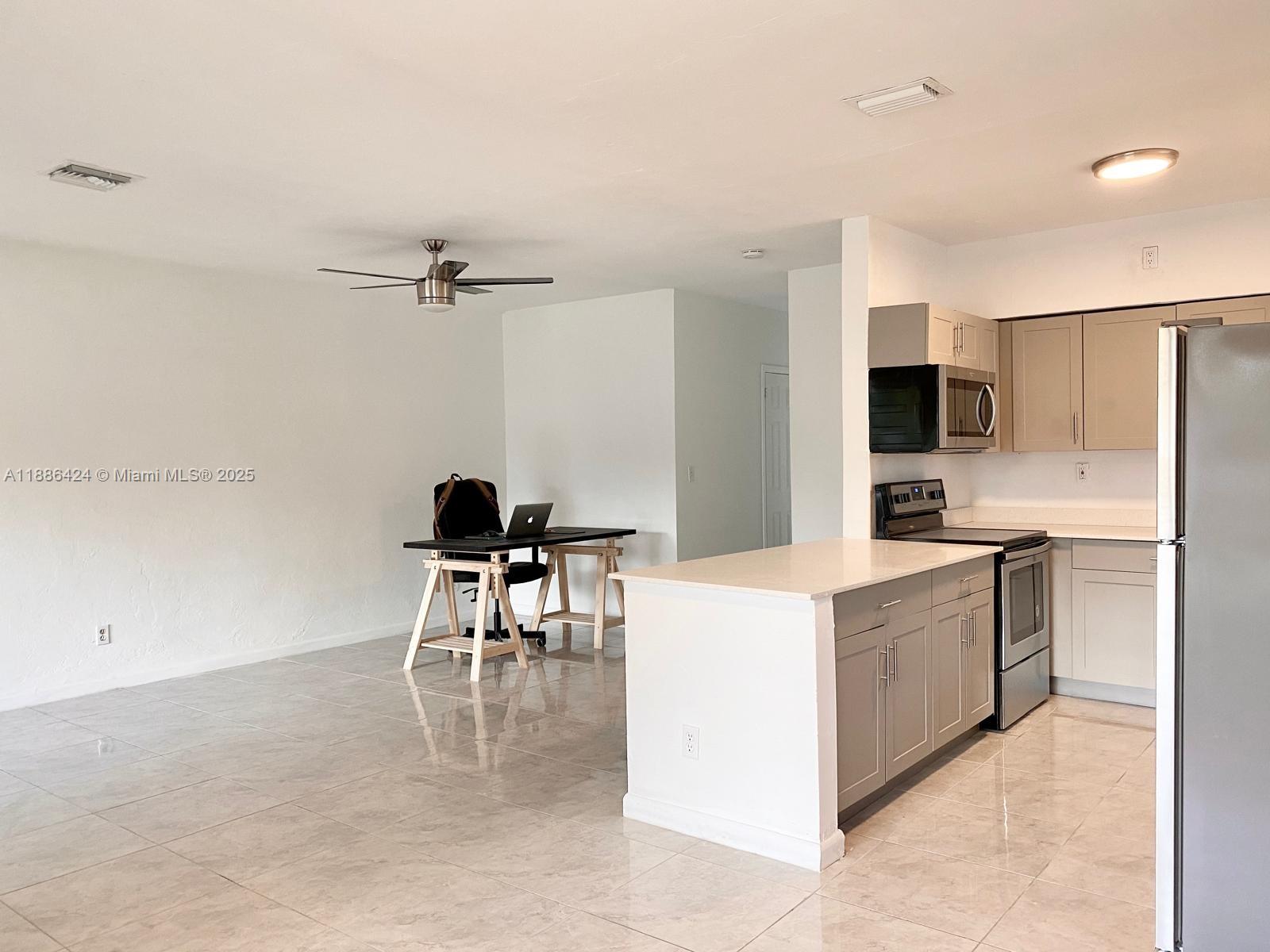 Remodeled, large 3 bed 2 bath duplex unit located two blocks from Biscayne and less than 10 minutes from Bal Harbor, Midtown and Wynwood with private backyard and laundry. Located right off of Biscayne Park, the unit includes newer kitchen cabinets and appliances (including dishwasher), newer bathrooms, impact windows. It also features a large, private, fenced in yard and two parking spots; as well as a private storage room/laundry with its own washer and dryer. Water and trash disposal are included in the rent. Lawn care is also included in the rent. Tenant has to pay for their electricity and fumigation. 620 credit score minimum. Background and credit check.