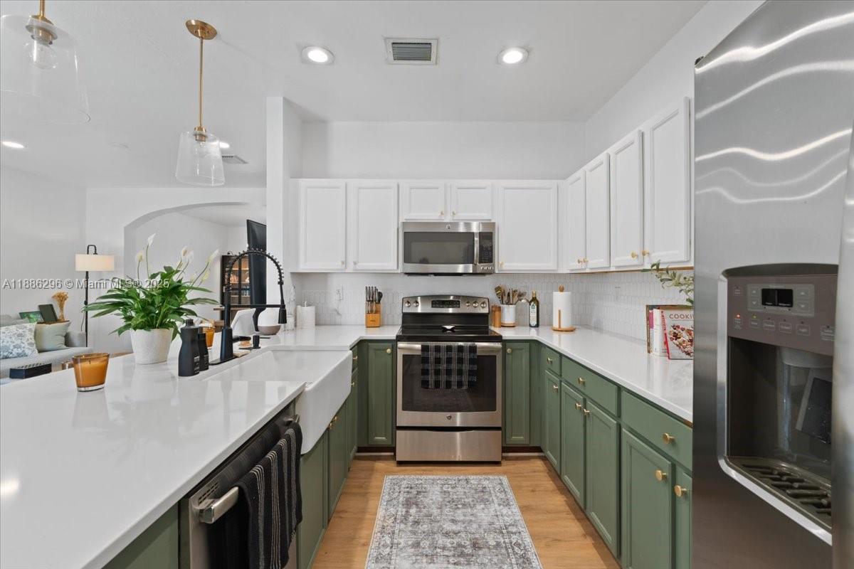 Beautifully updated 3 bed, 2.5 bath townhouse in the sought-after Kendall Commons community. Features a stylish, fully updated kitchen with stainless steel appliances, and modern finishes, flowing into a bright open living area with laminate wood flooring throughout. The primary suite includes a walk-in closet and double vanity. Convenient second-floor laundry. One-car garage plus private driveway with space for four additional vehicles. Enjoy access to a resort-style clubhouse with pool, fitness center, kids' playroom, and more. Close to top-rated schools, shopping, and dining.