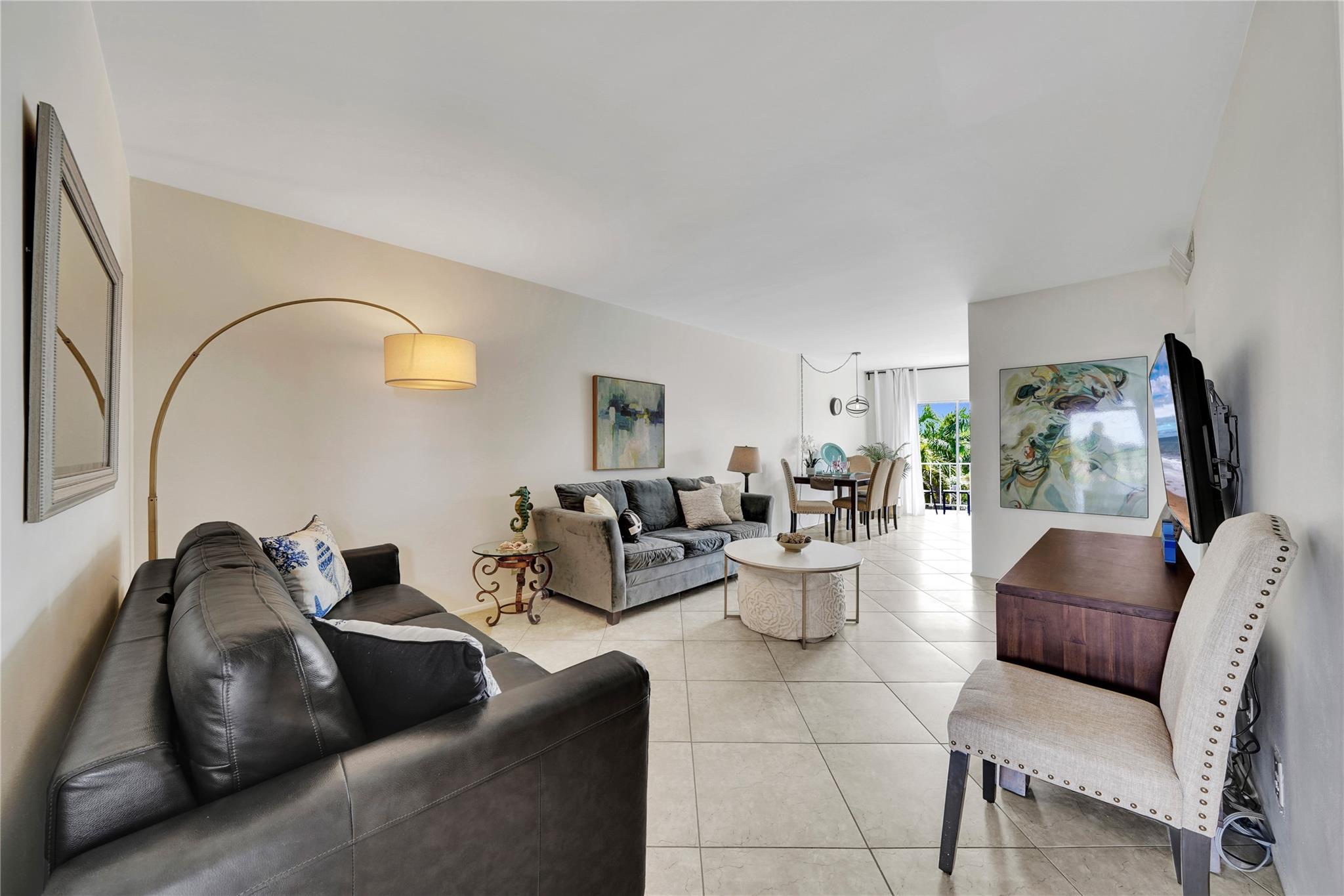 FULLY FURNISHED: Cutest Condo 4 minute walk to BEACH! Make your dream to live by the sea a reality. No need to spend another winter in the COLD! Enjoy the tropical setting and view right outside your window & bask in the sunshine. Conveniently located near elevator & stairs, your parking spot #22, is just steps from elevator. Tile throughout, updated bathroom and kitchen, 3 closets, top floor unit, 1 sofas is a pull out bed. Many upgrades including light fixtures & recessed lighting. NEW IMPACT SLIDING GLASS DOORS AND WINDOW! Walk to the best spots in Lauderdale by the Sea & Pompano Beach Pier. Rent includes maintenance for building exterior, Insurance, Water, Fitness Center, Community Room, Pool, Security Cameras & Laundry. You're going to LOVE IT Here!