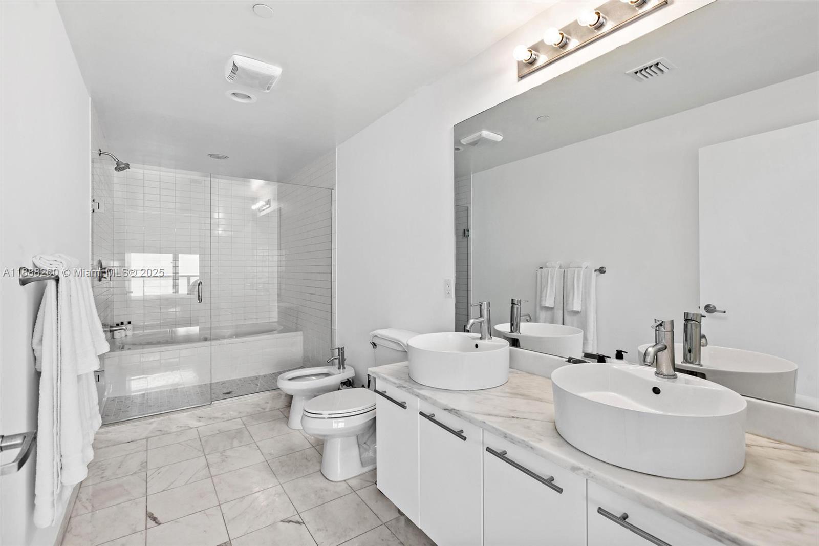 Enjoy breathtaking views of Biscayne Bay and downtown Miami's skyline from the 40th floor of this beautiful 1/1 plus half bath at Marina Blue. Wood floors throughout. Large walk in closet. 1 storage locker included in rent. Bldg features: sunrise & sunset pools, hot tub & plunge pool, 24-hour security & concierge, valet, business center, gym, yoga/aerobics room, BBQ grills & outdoor dining area, club room, 5-hole putting green & Wi-Fi Internet access throughout the common areas. Walking distance to the AAArena, the Shops at Bayside, Arsht Center, PAMM, Frost Museum, tons of restaurants & metro mover conveniently located behind the building. One time $150 cleaning fee to be paid upfront.