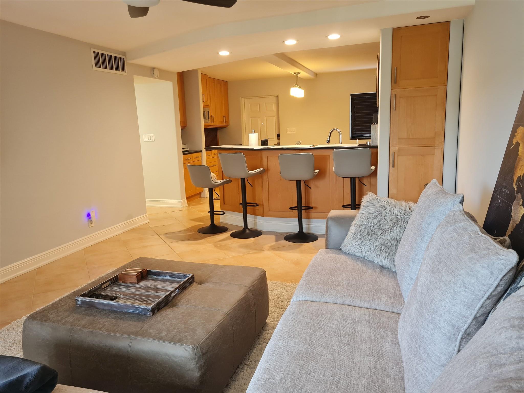 Beatifully Furnished First-Floor Condo with Poolside Access. The fully equipped, open-concept kitchen is a dream for cooking and entertaining. Featuring ample storage space, sleek countertops, and modern appliances. Bosch dishwasher and stove, pull out- self closing drawers. Parking spot just a few steps away from the unit. Located just 1.3 miles from the sun-drenched sands of popular Hillsboro Beach, you'll be steps away from a vibrant array of restaurants and charming shops. Plus, you're only a few minutes' drive from the dynamic Downtown Boca Raton. Unwind in your screened-in private patio boasting tranquil garden and pool views. It's the perfect spot for your morning coffee, or just relaxing in the evening breeze.