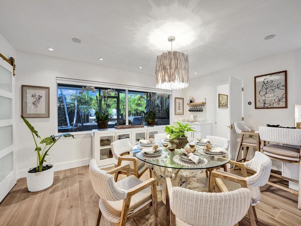 Step into this exquisite, meticulously designed, and fully renovated 3-bedroom, 3-bathroom sanctuary crafted by the esteemed interior designer, Jeanne Michelle Design of Palm Beach Florida. Embrace Coastal living at its finest, adorned with tasteful textured wallpaper in bedrooms themed with a fresh and clean design, complemented by high-quality furnishings, fine antiques and nature-inspired accessories that effortlessly evoke seaside elegance. This Turnkey Gem is presented fully furnished, leaving no detail overlooked, ensuring a seamless move-in experience