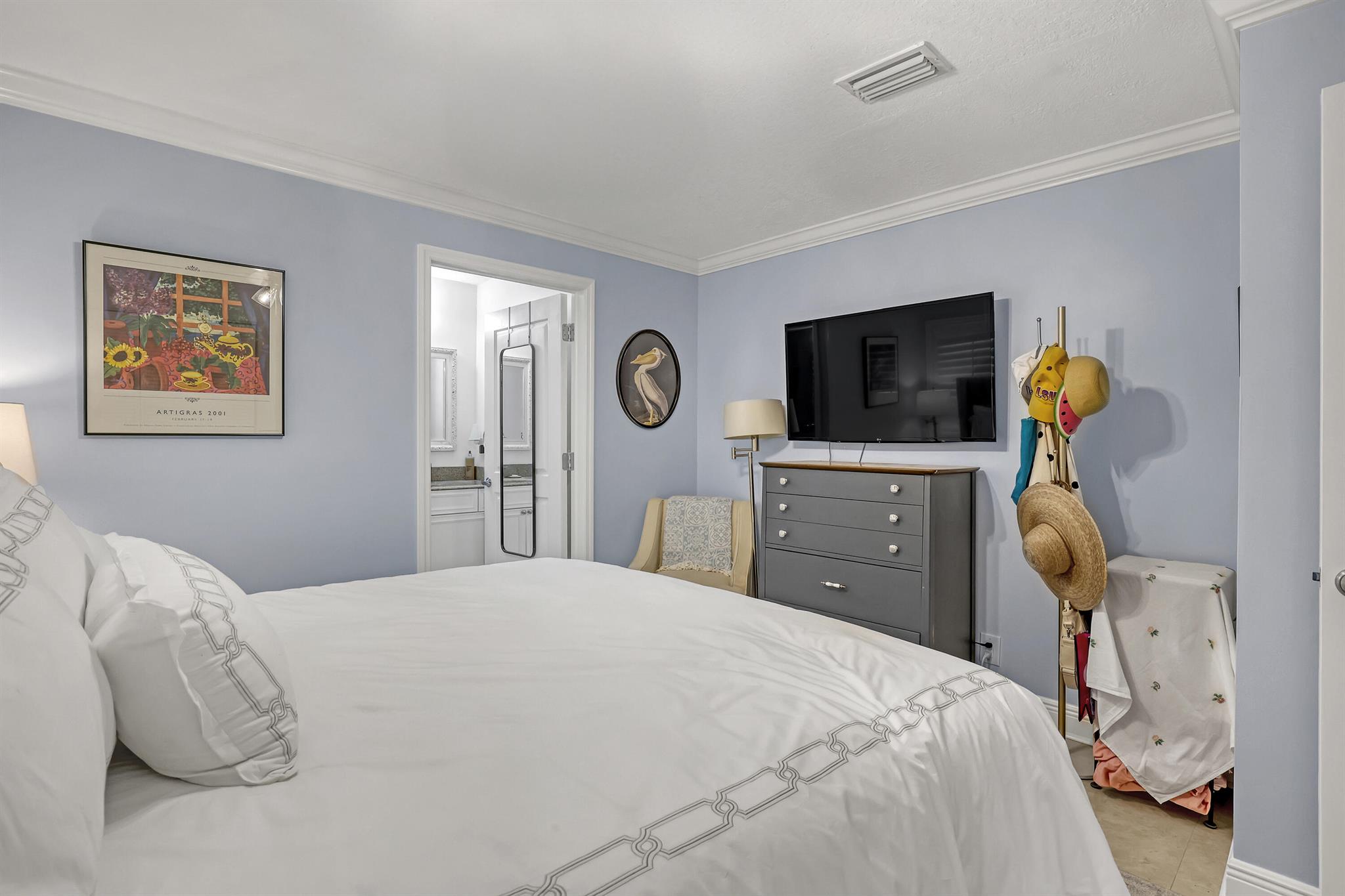 You will fall in love with this charming and private Mediterranean community consisting of only 12 three-story townhomes, all located behind the manned gates of the Lands of the Presidents. This immaculate residence offers a thoughtful floor plan: the first level includes a garage and an ensuite third bedroom, ideal for guests or a private office. The second floor features beautiful hardwood flooring, a cozy fireplace, open kitchen with stainless steel appliances, half bath, and a balcony where you can enjoy morning coffee or evening sunsets. The third floor offers a second ensuite bedroom along with the primary suite, complete with a walk-in closet, soaking tub, and separate shower.