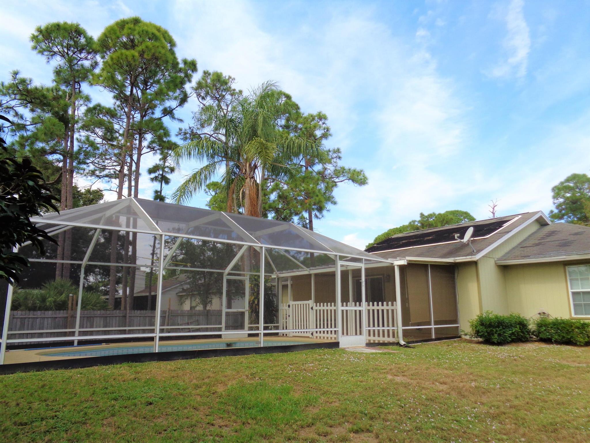 Annual unfurnished rental. This lovely pool home in Vero Beach Highlands will be available for new tenants on 11/10/2025. 3 beds, 2 baths, 2 car garage, split floor plan. Comfortable home, great for entertainment. Cathedral ceilings. Living, dining rooms & kitchen combo. Sliding doors lead from living room to a screen enclosed pool and patio area. Kitchen with breakfast bar and pantry. Tile flooring in living areas, carpet in bedrooms. Large, fenced yard. Landscaping, pest control & pool maintenance are included in the monthly rent. Great location. Just minutes away from the beaches, shopping, restaurants, medical, parks, theatre. Pets per owners' approval only. What a place to live! Here are community amenities available in Vero Beach Highlands, but this home is not in HOA.