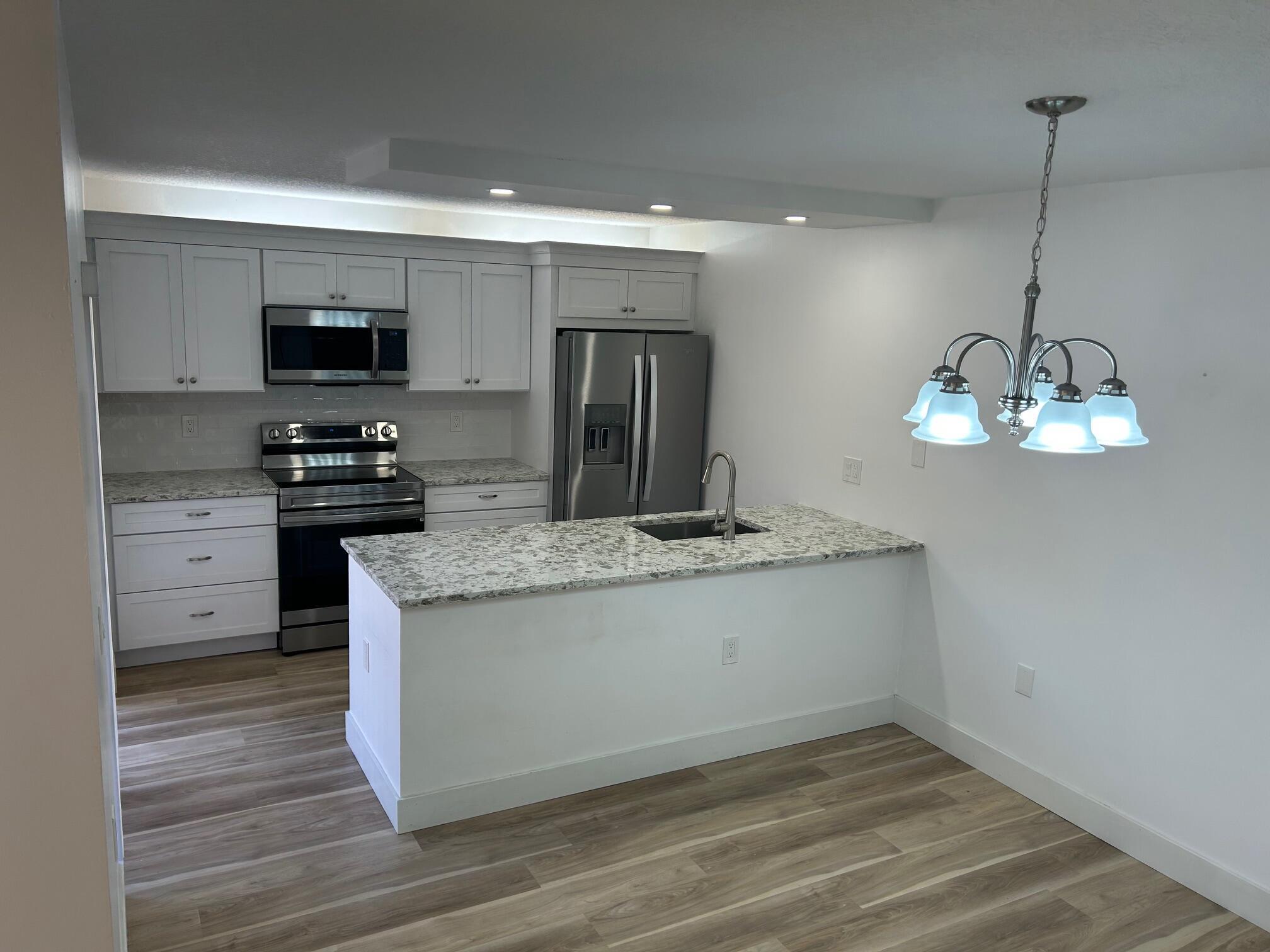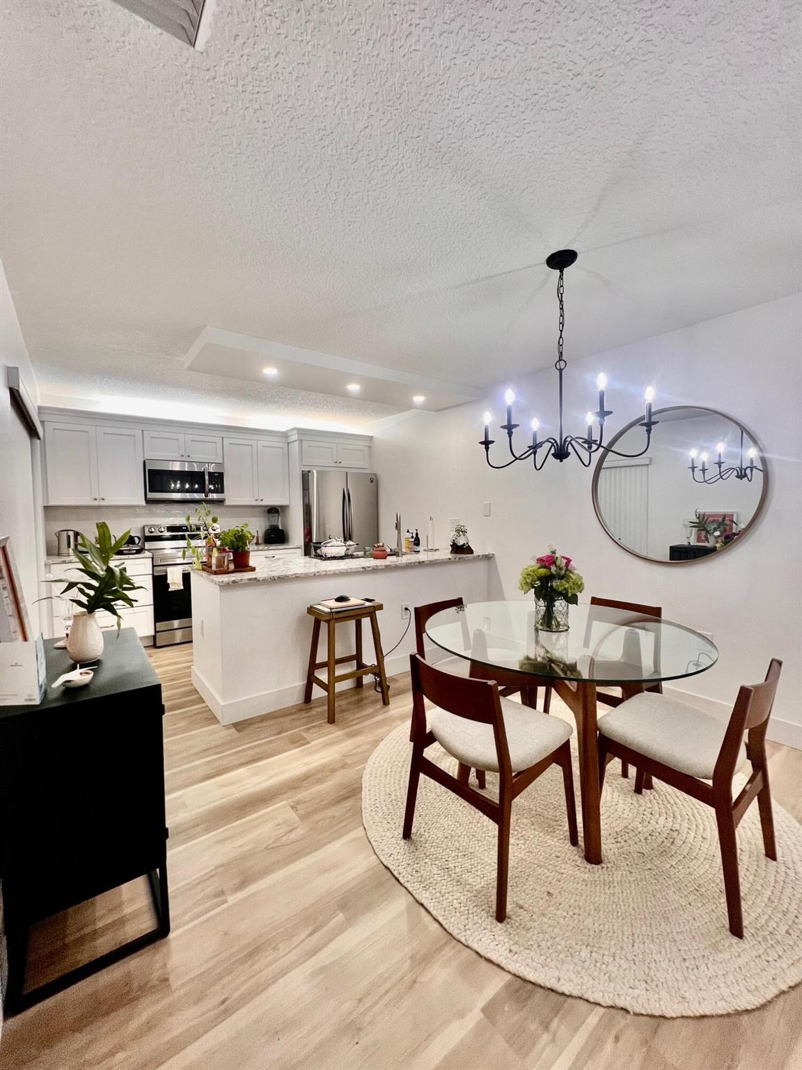 Offered Unfurnished. Stunning renovated Townhouse in River North at the Bluffs. Offered as an Annual unfurnished - available 12/1/25. New Kitchen & Bathrooms. Luxury vinyl plank floors thru-out. No popcorn ceilings here. Private fenced Courtyard. Close to Community Pool & Tennis. $100 JLR Compliance Fee. $40 per Adult for credit chk - JLR to run soft report, Furniture & decor shown in pictures belong to current Tenant. Tenant pays Electric, Water, Sewer, Wifi. Basic cable included but Tenant to pick up own cable boxes/Modem. 2 designated parking spaces.
