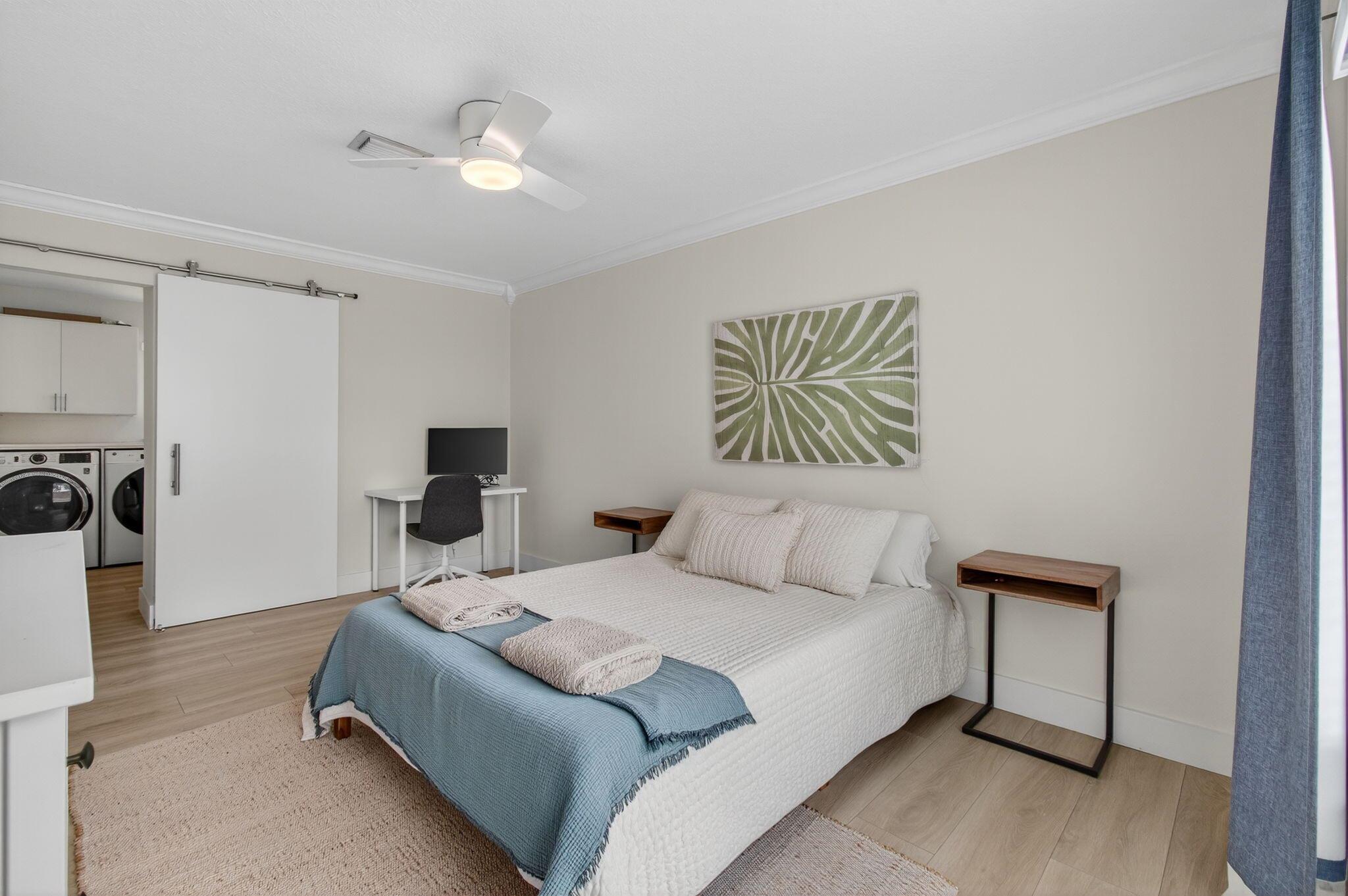 Welcome to 802 Mallard Drive, a seasonal rental in Delray's Tropic Palms designed for the ultimate vacation-at-home experience. This stylish 2BR/2BA pool home is thoughtfully furnished with pieces from Maiden Home, West Elm, and Restoration Hardware. Enjoy a chef's kitchen with Bosch appliances, quartz counters, Wi-Fi oven, pot filler, and wine fridge. Relax in luxury with plush towels, robes, and even an inflatable paddleboard for your beach days. The spacious owner's suite includes a walk-in closet with washer/dryer. Outside, discover your private oasis with a saltwater pool, jacuzzi, covered seating, lush landscaping, and smart irrigation. Just minutes from the beach, Atlantic Ave, and the Delray Tennis Center--this seasonal retreat brings together comfort, style, and