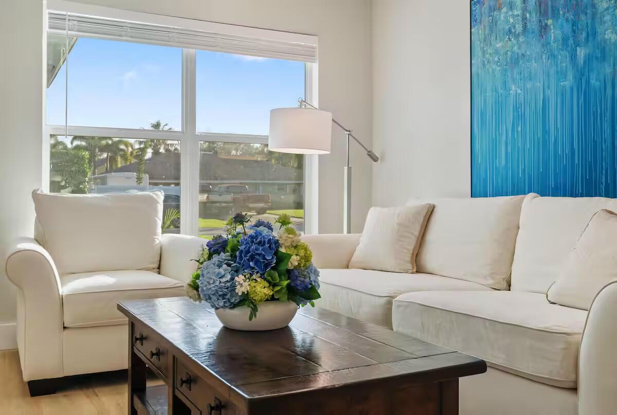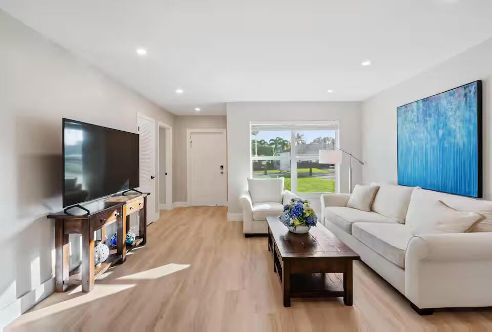 Stunning 4-Bed, 2-Bath Saltwater Pool Home w/ fenced yard in East Delray Beach - Available furnished/unfurnished for Short/Long-Term Rental. Welcome to this beautifully renovated single-family home offering comfort, style, & a true South Florida lifestyle. This spacious 4/2 property is in perfect condition & designed w/ both relaxation & entertainment in mind. Internet up to 300 mps, pool, lawn, & pest control are included for added convenience. Interior Features: Fully renovated w/ newer flooring, countertops, kitchen cabinetry, & appliances.Master suite with king-sized bed, walk-in closet, and private bath. Washer/Dryer inside. Additional bedrooms: one queen, one full, & one full with trundle. Bright open living and dining areas, plus a sunny Florida room with a private work space.