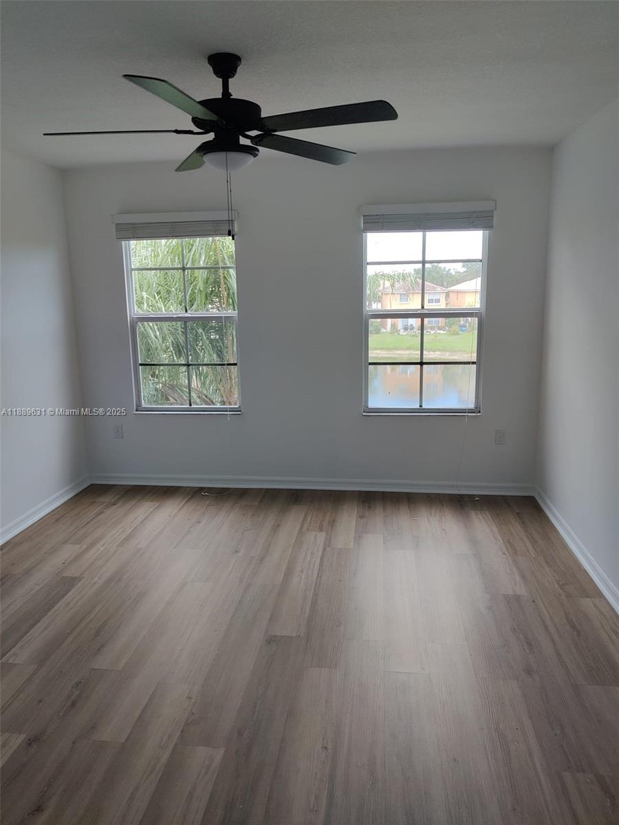 Resort-style gated community. Lake view, bright and spacious, with vaulted ceilings. 3 bedrooms and 2 baths on a 3rd-floor unit. Recently updated laminate floors and freshly painted. Split bedrooms floor plan, washer, and dryer inside, Modern Kitchen, new stainless steel appliances. Amenities include a pool, fitness center, clubhouse, basic cable, and water