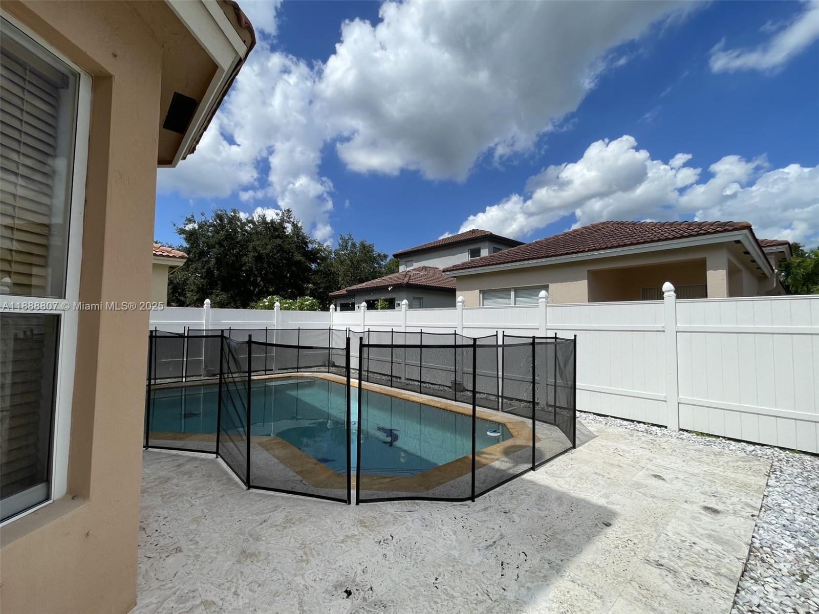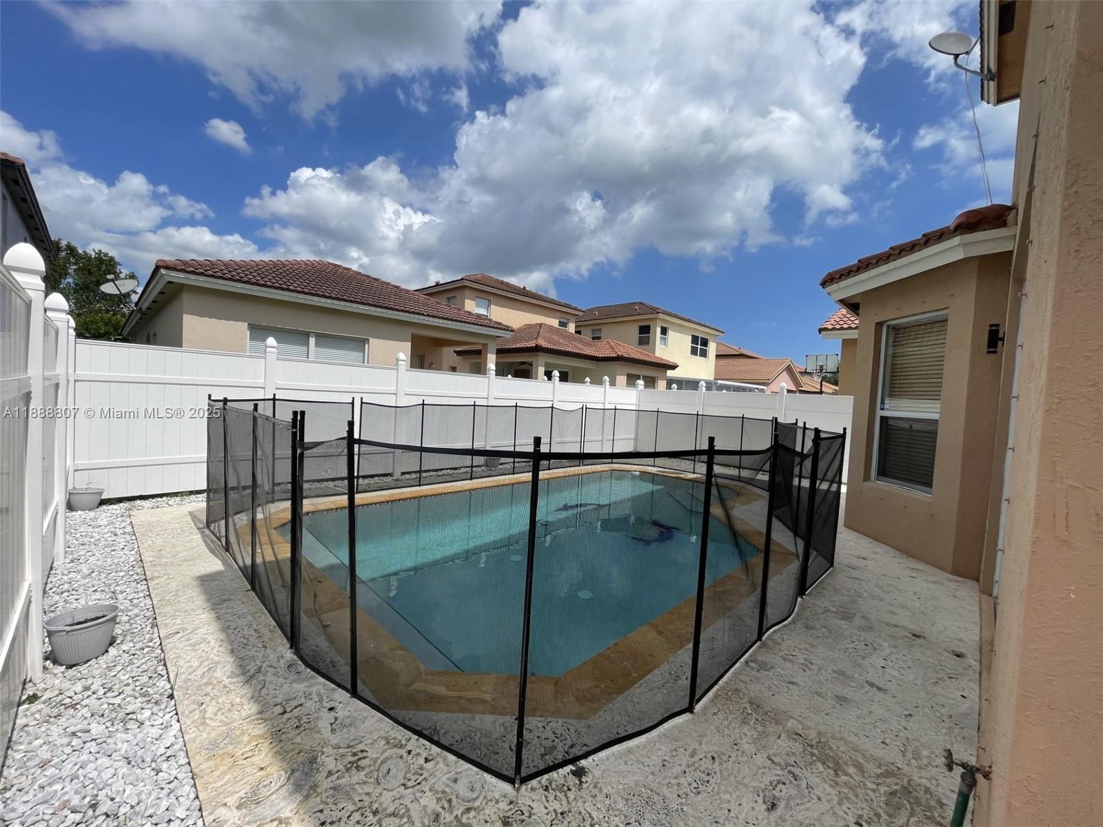 This beautiful two-story residence offers 2,146 sq ft with 4 bedrooms, 2.5 baths, a double-car garage and a private pool in a fenced backyard. The kitchen boasts wood cabinets, granite counters, and top-tier Stainless Steel appliances. Tile and laminate flooring throughout. This gated community offers a clubhouse, Olympic-style pool, gym and playground area – a true paradise. Minutes away from Baptist Hospital, the Florida Turnpike, charter schools, shopping, and entertainment. 2 months to move in and security deposit will be prorated during the first 6 months.