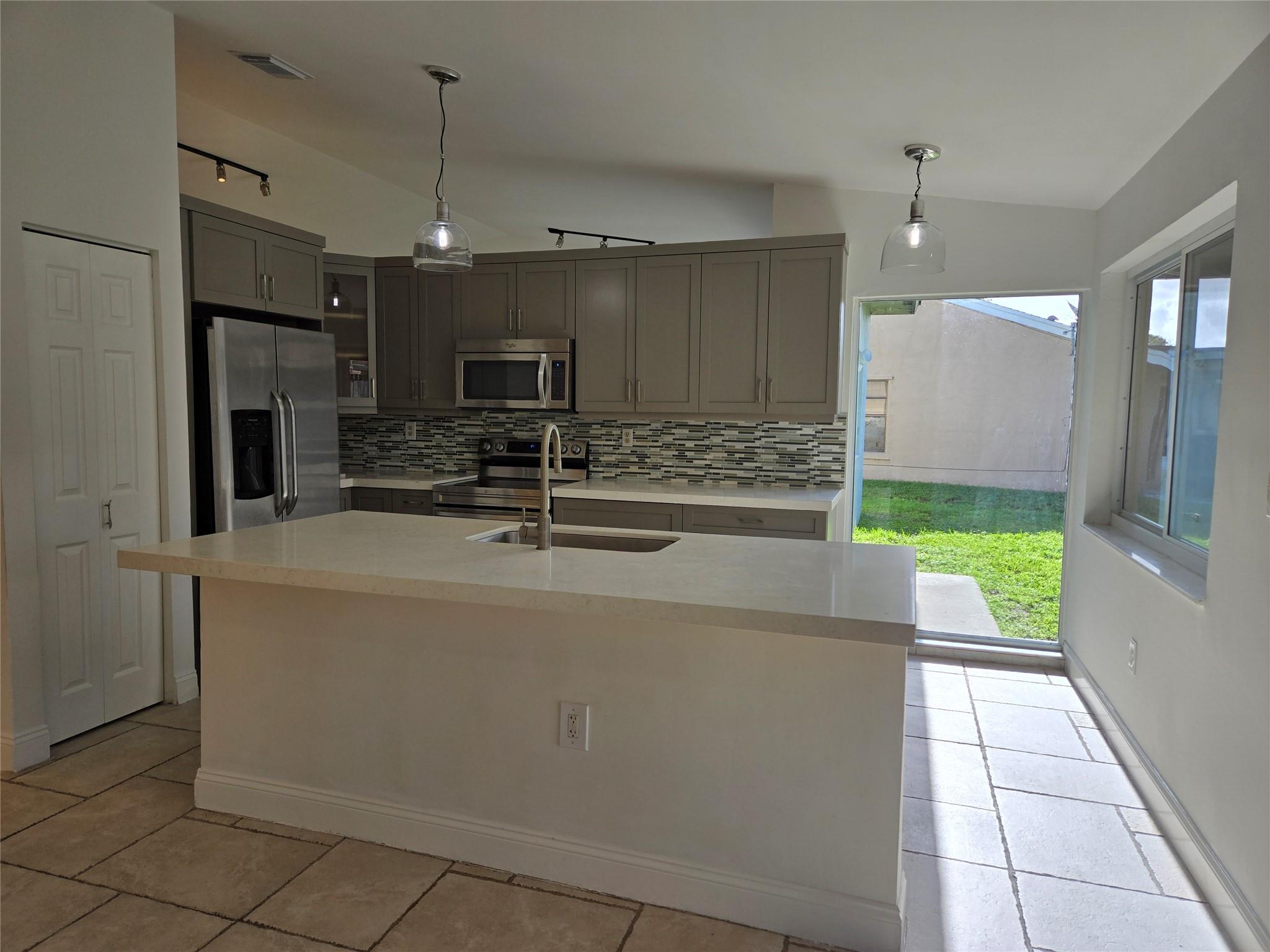 Beautifully updated 3/2 home in Shenandoah. Kitchen has granite and stainless appliances. French doors and impact windows throughout. Vaulted ceilings with great lighting. Awesome split bedroom plan. Home has a spacious front porch and also a very large screened in patio in the back. Perfect for all your entertainment needs. Located nearby Shenandoah Community park, featuring tennis, basketball, volleyball, soccer, playground area, kids splash pad, walking path and community center. Excellent school district! Minutes from shopping, dining & major highways. Close to Sawgrass, Ikea and Markham Park. Easy to show and move-in ready. Rent includes landscaping.