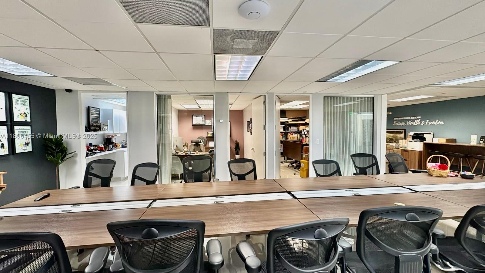 Make a statement the moment you arrive. Suite 1090 greets you with direct elevator identity and a dramatic all-glass entrance that sets the stage for an impressive workplace. Inside, a bright executive office with floor-to-ceiling windows pairs with two private offices + Conference and a sleek kitchenette with stainless steel appliances. The true showstopper is the enormous open space—currently outfitted with a 22-seat conference table—that can easily transform into a vibrant collaborative hub, stylish lounge, dynamic training area, or any configuration your business envisions. Move-in ready and easy to show, this suite is a must-see for companies looking to stand out in Coral Gables. Call Listing Agent for more Details! * Can be combined with Suite 1070 (1,650 RSF)