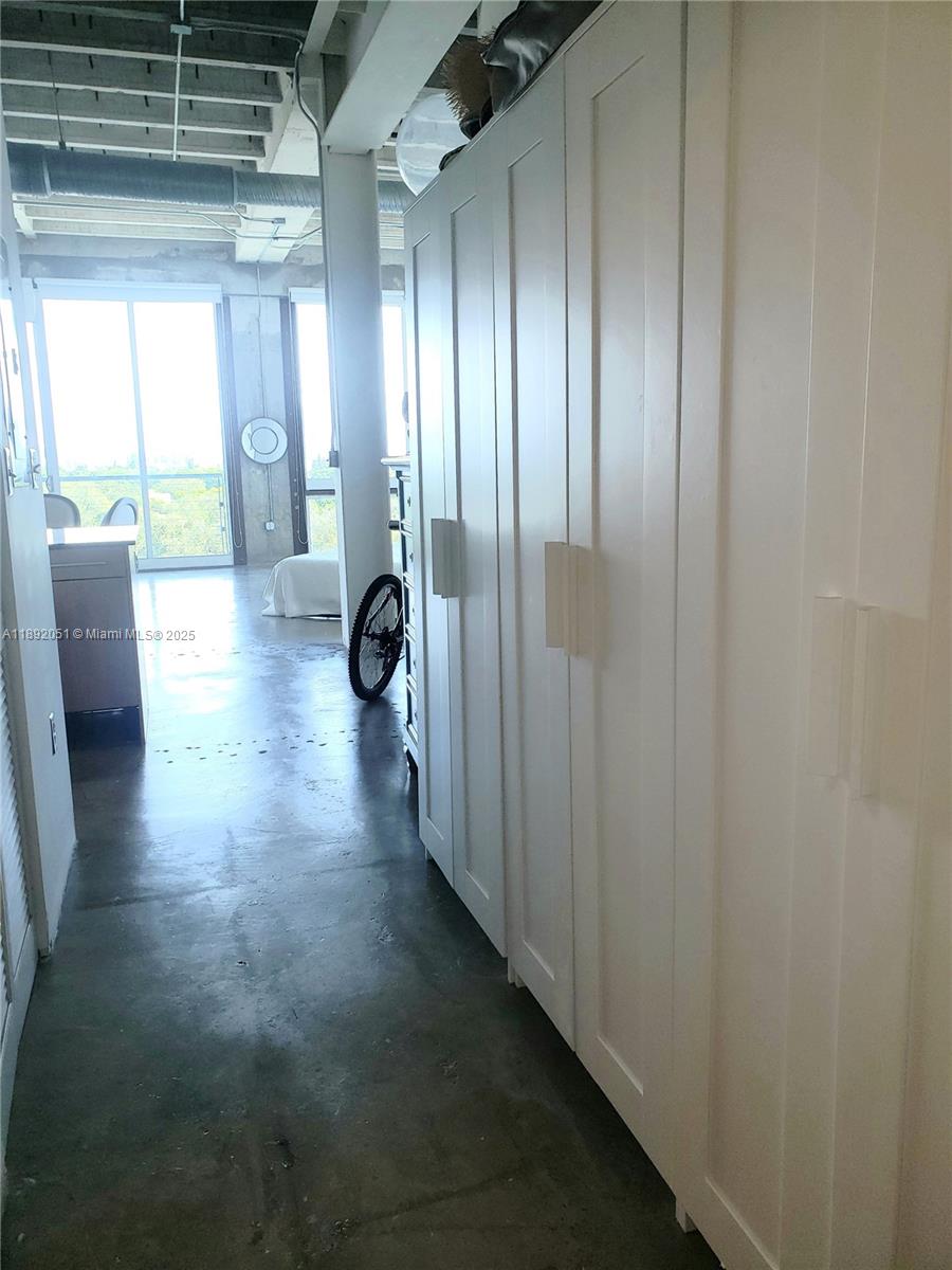 MIMO District loft. Live/work loft at the Bank Condominium. 13 ft high concrete beamed ceilings, exposed A/C ducts, concrete floors & stunning views from floor to ceiling sliding impact glass of this East facing loft. Elegant lobby with intercom access, 2 elevators, rooftop spa with views of historic Shore Crest and Biscayne Bay. Basement fitness center. Pet friendly. Secure assigned parking.