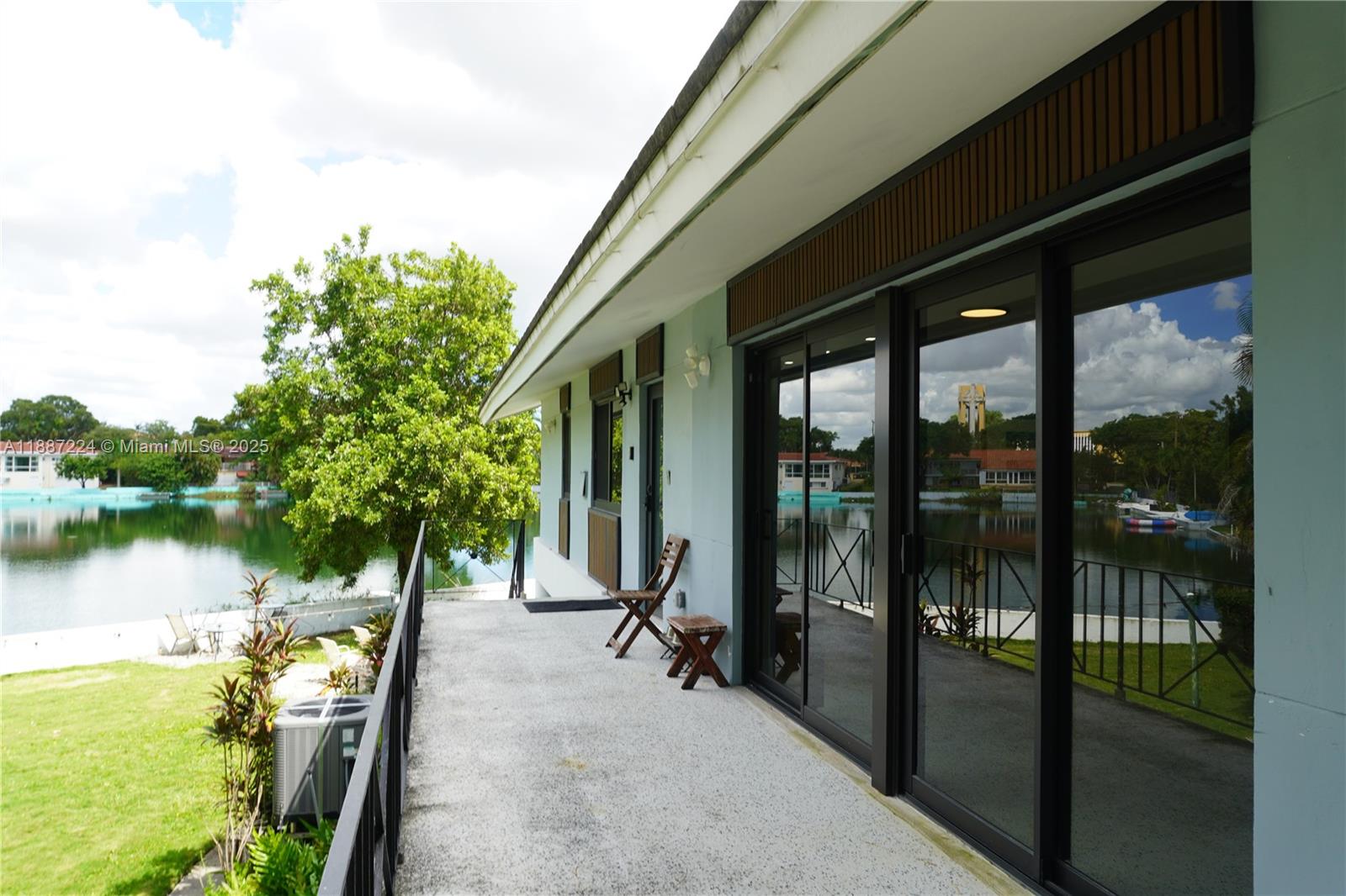 Lakefront MIMO Gem on Mirror Lake, Miami Shores! Make lasting memories in this unique 1950s MIMO-style residence featuring 3 bedrooms, 2 bathrooms, and 1,462 sq ft of living area plus a spacious covered patio overlooking the lake—perfect for entertaining or relaxing outdoors. This home showcases timeless terrazzo floors, updated kitchen and bathrooms, and storm-impact windows throughout. The primary bedroom and main living areas offer tranquil lake views, creating a bright, peaceful setting. Enjoy kayaking and paddleboarding from your own backyard and the convenience of walking to Miami Shores Country Club, top-rated schools, and the village’s vibrant downtown area. Centrally located, this property blends mid-century charm with modern comfort—an exceptional lifestyle on Mirror Lake!