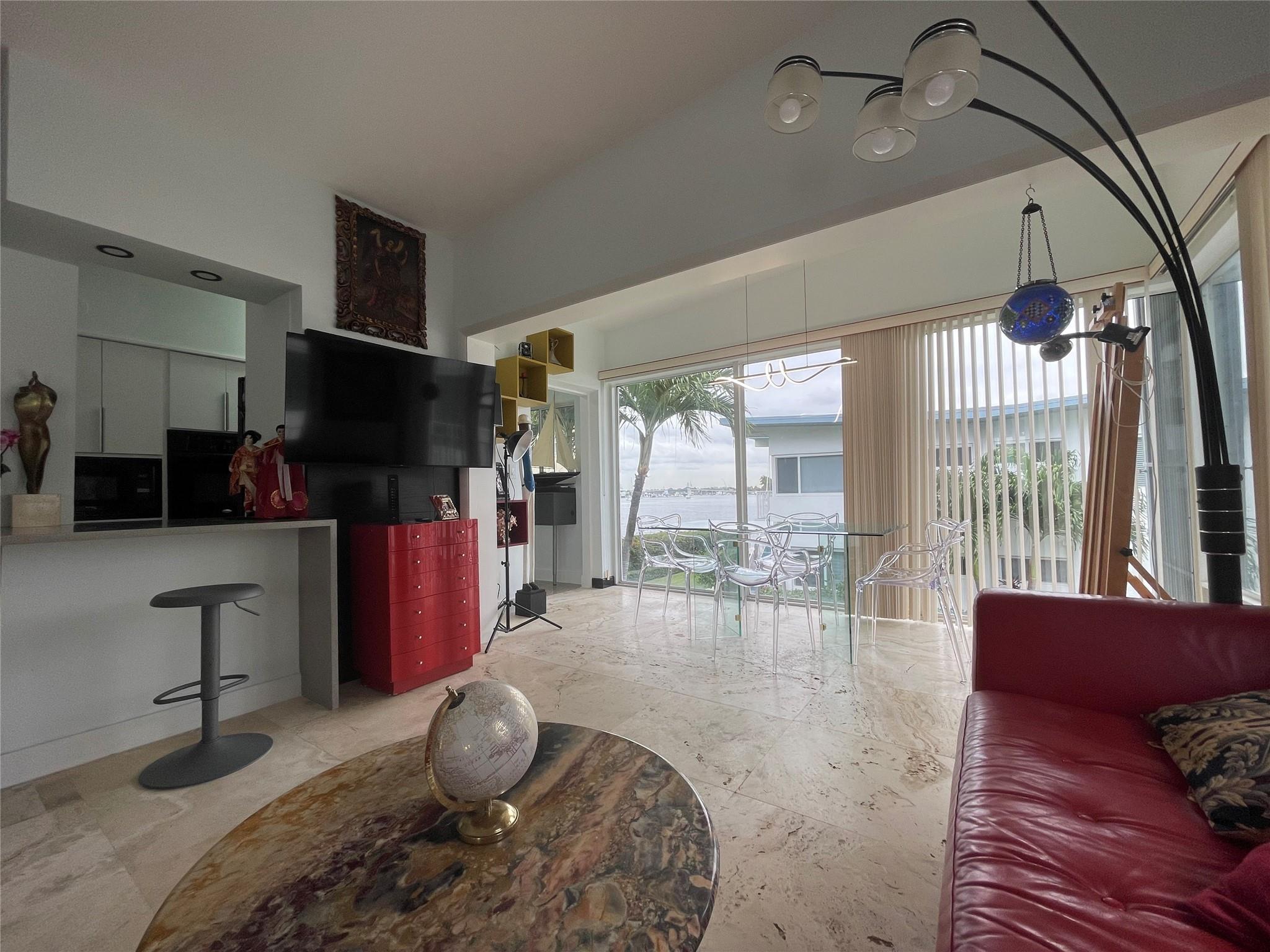 Short term seasonal rental - minimum 3 months. Sought after beach area location set in a tranquil garden on the intracoastal and just two blocks from the beach - this small boutique community in prime beach position rarely comes up for rent. Enjoy on the dock and watch the boat parade - it is especially magic at sundown. Swim in the community pool with views of the boats passing by. This one bedroom on the second story (only four units per building) has been totally renovated. Sea views from bedroom. The open spacious unit with floor to ceiling windows with garden and intracoastal views in living room and high ceilings will take your breath away. Rental for a year is available as well. Tandem parking is conveniently located steps away.