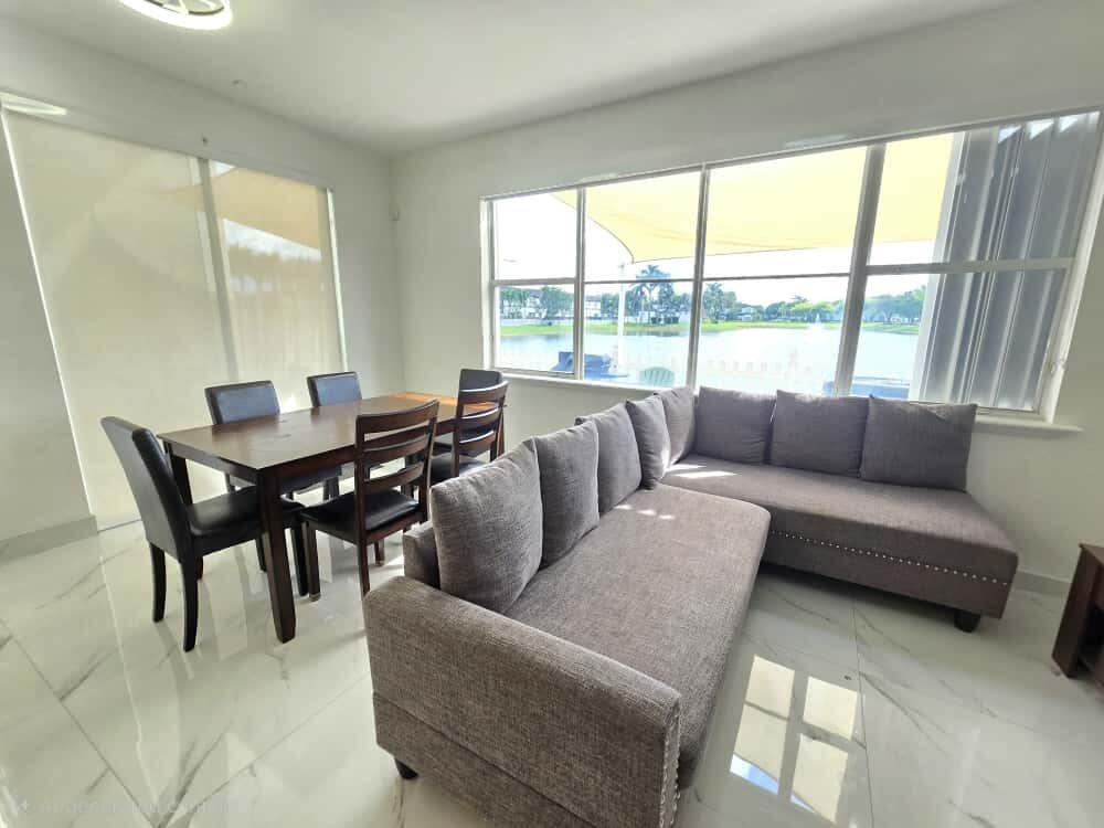 Discover this beautiful 3-bedroom, 3-bathroom home in the heart of Doral! Featuring one full bathroom conveniently located downstairs, this residence offers a spacious layout with a bright living room, formal dining area, and a separate family living and dining space -- perfect for entertaining or relaxing. The open kitchen overlooks the water, creating a serene and inviting atmosphere. Step outside to a private patio with breathtaking water views, ideal for morning coffee or evening gatherings. The home also includes a spacious garage and is currently having its exterior freshly painted. Located in a gated community close to top schools, shops, and major highways, this home combines comfort, elegance, and convenience.